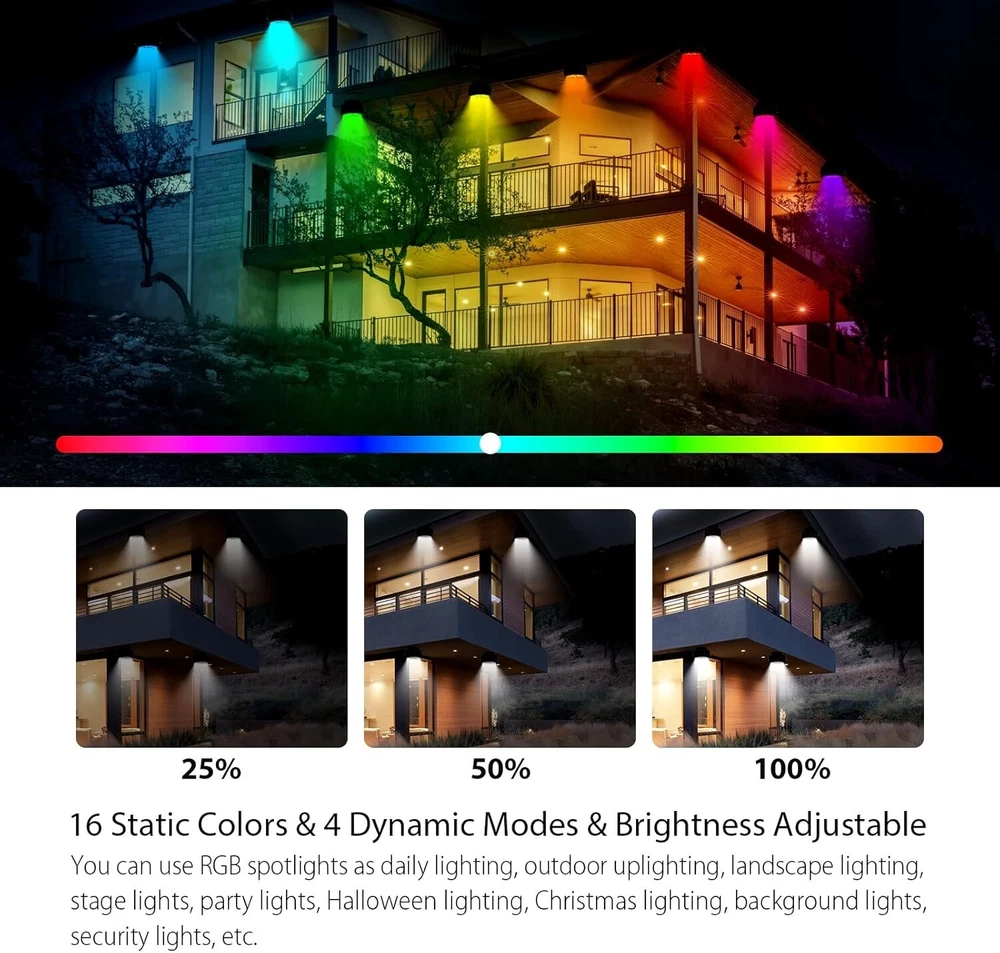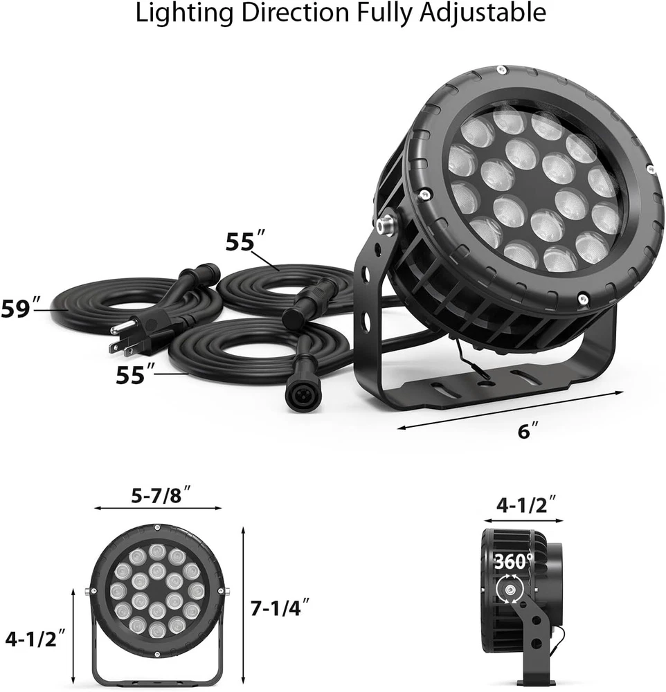 Illuminate your outdoor space with this 72W RGBW LED Wall Spotlight. Designed for outdoor use, this spotlight is made of durable aluminum and glass materials. It features a remote control for easy operation and a wall plug-in power source for convenient installation. With six different settings and an Energy Star rating of 5 stars, this spotlight is both powerful and efficient. Its waterproof design and IP65 rating make it perfect for outdoor use, while its multicolor light options add a touch of vibrancy to any area. Enjoy a well-lit and secure outdoor space with this top-of-the-line LED spotlight.
