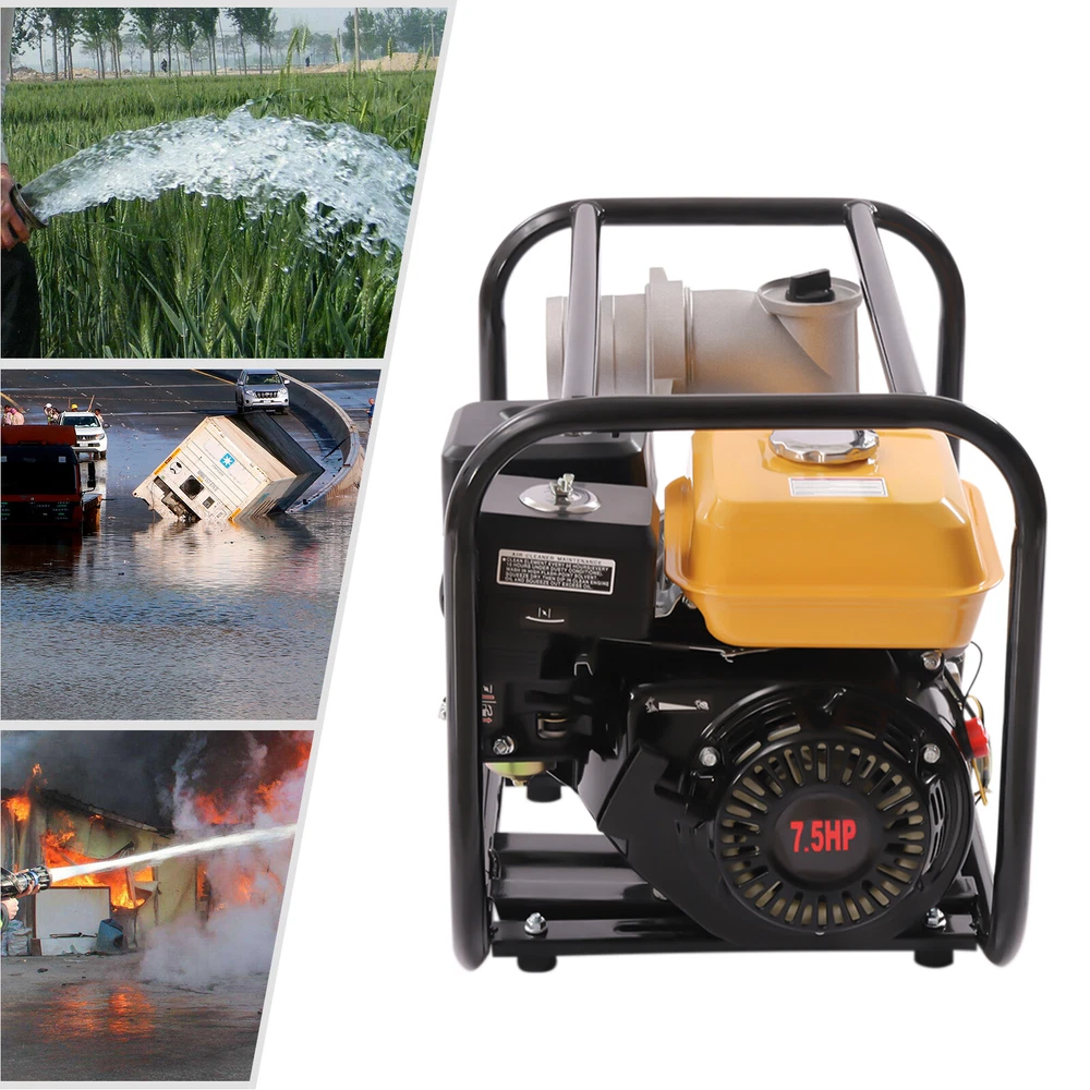 3" 4Stroke 7.5HP Gas-Power Semi-Trash Water Transfer Pump Agriculture Irrigation Description The traditional way of carrying water for irrigation is not only inefficient but also physically demanding. An efficient water pump can greatly improve your efficiency and give you more time to do other tasks. Our agricultural water pump with a 7.5HP high-efficiency motor and an inlet and outlet of up to 3inch in diameter offer a high head and a high flow rate of 60m³/h to help you get your irrigation work done more easily and quickly. Key Features High-quality Material: The water pump is made of iron and aluminum, which is sturdy and durable. It extends its service life. 7.5 HP 3 Inch Gas Power Semi-Trash Water Pump High Pressure Garden Irrigation ❤Welcome❤ 3" 7.5 HP 210CC Water Pump Agricultural Irrigation Semi-Trash Water Pump 60m³/h Description The traditional way of carrying water for irrigation is not only inefficient but also physically demanding. An efficient water pump can greatly improve your efficiency and give you more time to do other tasks. Our agricultural water pump with a 7.5HP high-efficiency motor and an inlet and outlet of up to 3inch in diameter offer a high head and a high flow rate of 60m³/h to help you get your irrigation work done more easily and quickly. Key Features High-quality Material: The water pump is made of iron and aluminum, which is sturdy and durable. It extends its service life. Powerful Engine: The engine is a 4-stroke 7.5 HP engine with a speed of up to 3600rpm. The strong power makes it possible to work fast with great time and energy savings. Stable Performance: This water pump uses a high-quality four-stroke engine with excellent performance, which is powerful, highly efficient, low-noise, durable, and more stable. Low Fuel Consumption: It comes with a high-precision carburetor that improves combustion efficiency, thus reducing fuel consumption. Large Capacity Fuel Tank: It is equipped with a 3.5L/147.94oz large-capacity fuel tank, so you do not have to refuel frequently. It is very convenient and hassle-free to fill up once for a longer period. Efficient Cooling System: The vents are designed to keep the motor cool and provide high reliability and durability. Oil Alarm Function: This water pump has a low oil warning. It alerts you to add oil so that you can avoid the engine stopping suddenly while you are working. High Flow Rate: The large outlet diameter of 3 inches and the large flow rate of 60 m³/h allows for rapid water discharge to help you work more efficiently. High Lift: The strong impulse and powerful water discharge can reach 28m/91.86ft, allowing a wide range of spraying and longer distances. Frame Design: The entire water pump is designed with a portable frame, which is not only easy to move but also protects the machine from external damage. Easy to Use: This water pump features a hand-pull start. You simply pull the engine switch to get started with great ease. When you do not need to use it, it can be stopped through the flame-out switch. Easy to Install: The water pump comes with detailed English instructions, which can help you to install step by step. In addition, the package contains the necessary accessories for installation, which you do not need to buy. Quality Service: We stand behind all our guests and look forward to assisting you with your purchase. It is our pleasure to answer your confusion and questions. So please feel free to contact us if you have any problems with the product. Details Rubber Gasket: The lower part of the tank has a rubber gasket to prevent vibration damage to the tank. Silencer: The product is equipped with a silencer to minimize noise during operation and give you a relatively quiet working environment. Air Filter Cartridge: The air filter cartridge on top of the engine purifies the air and its high air filtration performance helps to reduce the wear and tear on the engine and prolong its life. Water Inlet Screen: The water inlet screen in the package filters out some of the larger impurities in the water supply to ensure the stable operation of the machine. Application It is very suitable for irrigation in agricultural greenhouses, farmland irrigation, garden irrigation, tunnel drainage, etc. Specification Model: WP-30X gasoline Engine Model: 170F Color: Yellow Material: Iron, Aluminium Type: Water Pump Engine Max. Power: 4 Stroke, 7.5HP Displacement: 210cc Fuel Tank Capacity: 3.5L/147.94oz Speed: 3600rpm/min Flow Rate: 60 m³/h Inlet and Outlet Diameter: 80mm/ 3inch Matching Motor Power: 4.6 KW Motor Max. Power: 5KW Rated Self-suction Height: 8m /26.25ft Pump Lift: 28m/91.86ft Gross Weight: 24kg/52.91lbs Product Size: 49*36*41cm/19.29*14.17*16.14inch Package Size: 51.5*38.3*41.5cm/20.28*15.08*16.34inch Package Included 1* Agricultural Water Pump 1* English Manual Other Accessories for Use Notes Please read the operating manual completely before use. And pay particular attention to the safety instructions included. Please allow the slight color difference caused by the shooting light and 1-3 cm error due to manual measurement, and make sure you do not mind before ordering. *Description* Online shopping no longer requires confusion. ?? Beyond your expectations, let's work together to create a perfect shopping experience! ↓↓↓↓ HAVE A NICE DAY ! Payment Delivery details Terms of sales About us Contact us Payment We accept ebay payment 。 Fees such as import duties, taxes are not included in the item price or shipping costs. These charges are the buyer's responsibility. Delivery details Shipping: 2-9 working days to: USA Terms of sales We maintain high standards of excellence and strive for hundred percent customer satisfaction. Feedback is very important to us. We hope that you contact us immediately before you give neutral or negative feedback, so that we can address your concerns. It is impossible to address issues if we do not know about them! About us Your satis faction is our ultimate