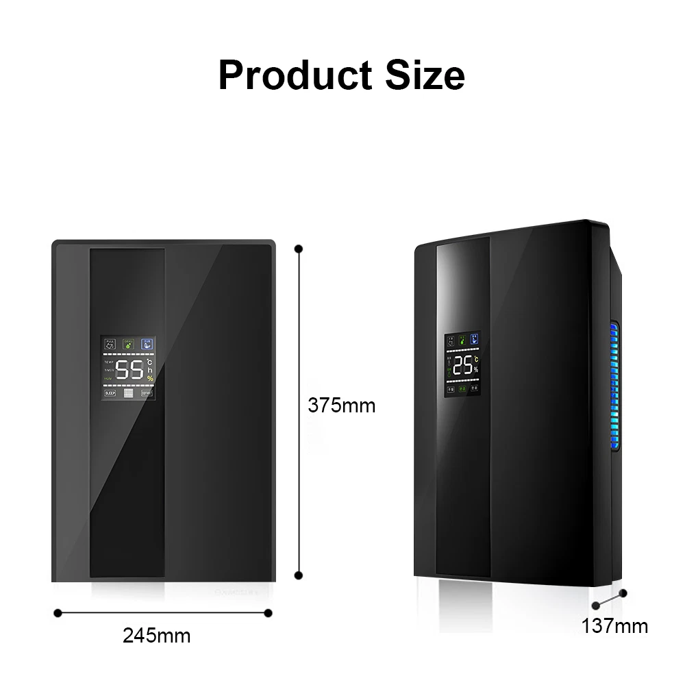 Dehumidifier Energy Star Rated for Medium Home Bedroom with Drain Hose, Black About This Item LCD Display - Multi functional at a glance, with constant humidity setting, intelligent timing, LED display, photocatalyst purification, sleep mode, defrost mode Left and right air vents - Large air duct design with built-in filter screen, allowing you to enjoy both quietness and health. Removable water tank - When the water is full, the machine will automatically stop working due to the presence of the water level controller. You can remove the water tank from the machine. Real time drainage outlet - The drainage pipe at the outlet of the drainage pipe can achieve continuous drainage without frequent pouring, and can work continuously. Features - Quiet and lightweight : using Peltier Technolog's semiconductor dehumidifier, the noise level is 25db. Ideal for small spaces. - Large water tank : The 2.2-liter water tank will automatically close when it is full, and it is equipped with a drain hose, which can be used continuously to drain water from the sink. - Digital LED display : The digital LED screen displays the current humidity level and temperature in the room. - Remote control : Allows you to control 3 dehumidification modes, including air purification mode, automatic defrosting and sleep only - Automatic humidity sensor : The built-in humidity sensor allows you to set the desired room humidity between 40% and 70%. After reaching this level, the device will shut down to save energy - 24-hour timer : The built-in timer allows you to schedule the dehumidifier to be turned on or off during the day, and has a convenient "sleep display" function to ensure a peaceful night without interference Spectification: Material: ABS Size: 9.64"x 5.4" x 14.76" / 24.5 x 13.7 x 37.5cm Dehumidification voltage: household 110v Water box capacity: 2200ML Dehumidification capacity: about 1080 ML Rated frequency: 50 Hz Humidity setting function: Yes Sleep mode function: Yes Automated frost function: Yes Product power: 90w Package Included: *Dehumidifier X1 *Remote control X1 *Drain pipe X1 Payment Delivery details Return Contact us Feedback Payment We only accept the paypal payment methods. All major credit cards are accepted through secure payment processor PayPal.(* If you use e-check on PayPal, delivery may take longer, as we will hold your order until your e-check clear) Delivery details Item will be shipped within 2 business day after confirmed payment. (Not including weekend or public holidays) Please verify your address during checkout. We are not responsible for any wrong or undeliverable addresses. All items will be checked strictly before shipping and it will be shipped to your PayPal address. Estimated delivery time is 1-5 working days (Not including weekend or public holidays) Delivery times may vary particularly during peak periods or unexpected weather conditions. In event of a very unlikely slight delay, your patience would be highly appreciated. We do not provide pick up or local collection service so far. Return We accpet return within 30 Days of dispatch. For exchange buyer MUST return the defective item for 1 to 1 exchange, return cost due to buyer. For free shipping means we paid the shipping fee on your behalf, that fee will be deducted. In case return cause by wrong buy, return postage will be at buyer side also. Please contact us immediately about any your return before shipping back the Once the item has shipped the regular return policy applies. Notifying us ahead of time will help us to ensure that your return is dealt with promptly upon arrival. Contact us We guarantee 100% Buyer Satisfaction. We are increasingly expanding international markets based on high quality products, excellent service, reasonable priceboas and timely delivery. Please contact us at any time for more information.We work hard to make sure EVERY CUSTOMER 100% approvingly. Feedback Very appreciated for your support. I hope you are happy with your purchase. We maintain high standards of excellence and strive for 100% customer satisfaction! Feedback is very important to us. We request that you contact us immediately BEFORE you give us or feedback, so that we can satisfactorily address your concerns. If you have any problem, please feel free to contact us via ebay message, we will reply your email within 24 hours (except weekends and holidays). We will do our best to solve your problem as soon as possible. We appreciate your continued patience and willingness to work with us. Thank you for choosing us and have a great day! Timer Control 24 hrs Color Black Brand JOYHUT Type Tabletop Tank Capacity 2.2L Unit Type ft Voltage 100-240V Model H1 Features Automatic Shut Off, Digital Display, Timer, Visible Water Level, Water Level Indicator Application Whole Room Room Any Room, Basement, Bathroom, Bedroom, Closet, Conservatory, Dining Room, Garage, Guestroom, Hallway, Home Office/Study, Kid's Bedroom, Kitchen, Living Room, Lounge, Marine, Patio, Porch, Teen's Bedroom, Utility/Laundry Room Power 100-240V Item Weight 2.13 lbs Recommended Room Size Medium
