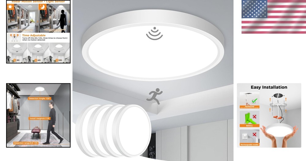 7-Inch Adjustable Motion Sensor Ceiling Lights - Perfect for Hallways & Closets ‹ › ‹ › ‹ › ‹ › ‹ › ‹ › ‹ › ‹ › ‹ › ‹ › Transform Your Space with the 7-Inch Adjustable Motion Sensor Ceiling Lights Perfect for Hallways & Closets Key Features: Highly Sensitive Radar Motion Sensor: With an impressive detection angle of up to 120° and a range of 9.8-13 ft, ensure efficient motion activation. Please note that due to ultra-high sensitivity, it's recommended to install away from frequently accessed doors and windows. Smart Lighting Technology: Automatically adapts to ambient light conditions, ensuring that the fixture will only activate in darkness (below 35 lux), keeping your home illuminated when you need it most. Customizable Timer Duration: Choose from three timer settings - 30S, 60S, or 120S - to suit your needs and habits, allowing for flexible lighting that saves energy while providing illumination exactly when you need it. Energy Efficient Design: This hardwired 15W ceiling light delivers an astonishing 1500 lumens of ultra-bright light, boasting a lifespan of over 25,000 hours while saving you up to 85% on energy costs. Hassle-Free Installation: Enjoy the convenience of two installation options, whether on the ceiling or the wall. No electrician needed - we provide easy installation instructions for a one-person setup! Exceptional Customer Service: Our dedicated support team is ready to assist you with any questions or issues within 24 hours, ensuring you have a seamless experience from purchase to installation. Why Choose Our 7-Inch Motion Sensor Ceiling Light? Elevate your living experience with sophisticated, hands-free lighting solutions. Imagine sauntering down the hallway or rifling through your closet, only to be greeted by bright, effective illumination that turns on just as you need it. No more fumbling for switches or stubbing your toes in the dark! Say hello to convenience and energy efficiency with our unparalleled ceiling light. This is not just a lighting solution; it’s a lifestyle upgrade. Make the smart choice today – illuminate your home with elegance and ease!” Shipping Free & Fast Shipping - We offer free shipping to most of the USA with a normal delivery time of 3-7 days. However, due to the current situation, additional delivery time (up to 3 weeks) may be required for some items. Alternative Carriers - We may use alternative carriers (e.g. USPS, FedEx, UPS, etc.) to ensure your package arrives safely and on time. Due to the use of multiple carriers, we are unable to provide a tracking number automatically. Handling Time - Orders are processed and shipped within 1-2 business days of receiving cleared payment. Shipping Restrictions - Shipping to Alaska, Hawaii, Puerto Rico, Guam, and other US territories may incur shipping charges or delivery restrictions. Please contact us before ordering, or your order can be refunded/cancelled. State Restrictions - There may be restrictions based on your state of purchase. For example, certain items may not be shipped to California due to state regulations. Contact for Tracking Updates - If you require tracking updates or have any concerns about the delivery of your order, please feel free to contact us, and we will be happy to assist you. Return 30-Day Hassle-Free Returns - We want you to be completely satisfied with your purchase. If you are not, you can return the item within 30 days of receiving it for a full refund or exchange. Easy Return Process - To start a return, simply contact us and we will provide you with a prepaid return shipping label and detailed instructions. Restocking Fee - There are no restocking fees for returns. However, the buyer is responsible for return shipping costs if the return is not due to a seller's error. Refund Processing Time - Refunds will be processed within 5 business days of receiving the returned item in its original condition. Payment We accept all major credit cards, PayPal, and Apple Pay for your convenience. Your payment information is secure and encrypted to ensure a safe and seamless transaction. Please complete your payment within 3 days of purchase to avoid any delays in shipping. Feedback Your feedback is extremely important to us. We strive to provide the best products and customer service possible. If you are satisfied with your purchase, please take a moment to leave us a positive review. If you have any concerns or issues with your order, please contact us before leaving negative feedback. We are committed to resolving any problems and ensuring your satisfaction. Contact Us If you have any questions or concerns, please feel free to reach out to our customer support team. You can contact us through the eBay messaging system. We are available Monday to Friday, 9:00 am to 5:00 pm EST, and we will do our best to respond to your inquiry within 24 hours. Thank you for supporting our small family business! UPC: Not Set Lumens: 1500LM Item Height: Motion Sensor Ceiling Lights Item Length: Motion Sensor Ceiling Lights Item Weight: 2.46 pounds Item Width: Not Set Power Consumption: 15W Unit Quantity: 4 Material: Plastic Room: Storage Room,Laundry Room,Hallway Light Color: Cool White Features: Motion Sensor,Timer,Energy Efficient,Waterproof Department: Unisex Baby & Toddler,Kids,Teens,Adults Control Style: Remote Control Occasion: Casual Light Direction: Downwards Labels & Certifications: Not Set Brand: Unbranded Type: Ceiling Light Sensor Type: Motion Style: Modern Lighting Technology: LED Color: White Finish: White Number of Settings: 3 Shade Shape: Round Power Source: Corded Electric Installation Area: Indoor Energy Star: Not Set LED String/Strip Type: Not Set MPN: Not Set EC Range: Not Set Manufacturer: Not Set Item Diameter: 7 in Voltage: 110 V Year Manufactured: Not Set Number of Lights: 4 Amperage: Not Set Country/Region of Manufacture: Not Set Output Voltage: Not Set IP Rating: Not Set Era: Not Set Manufacturer Warranty: Not Set Colo