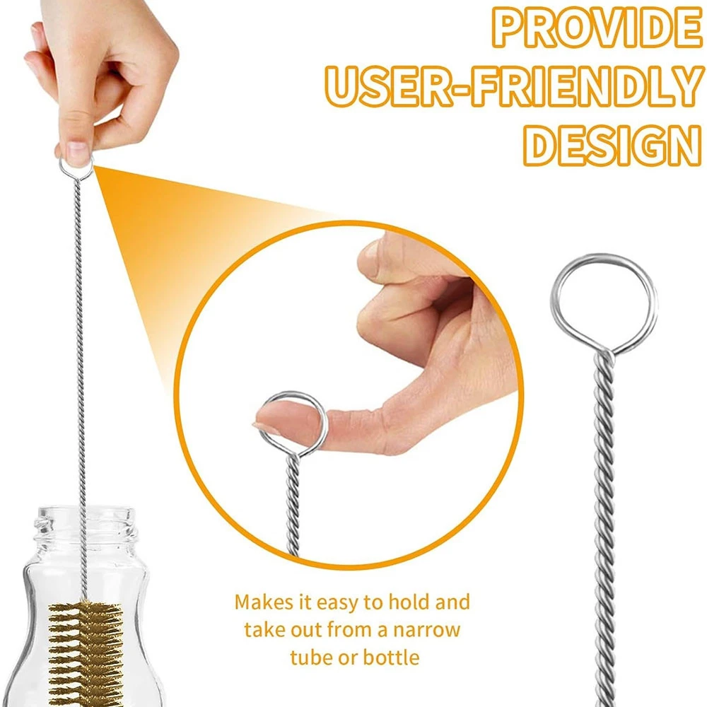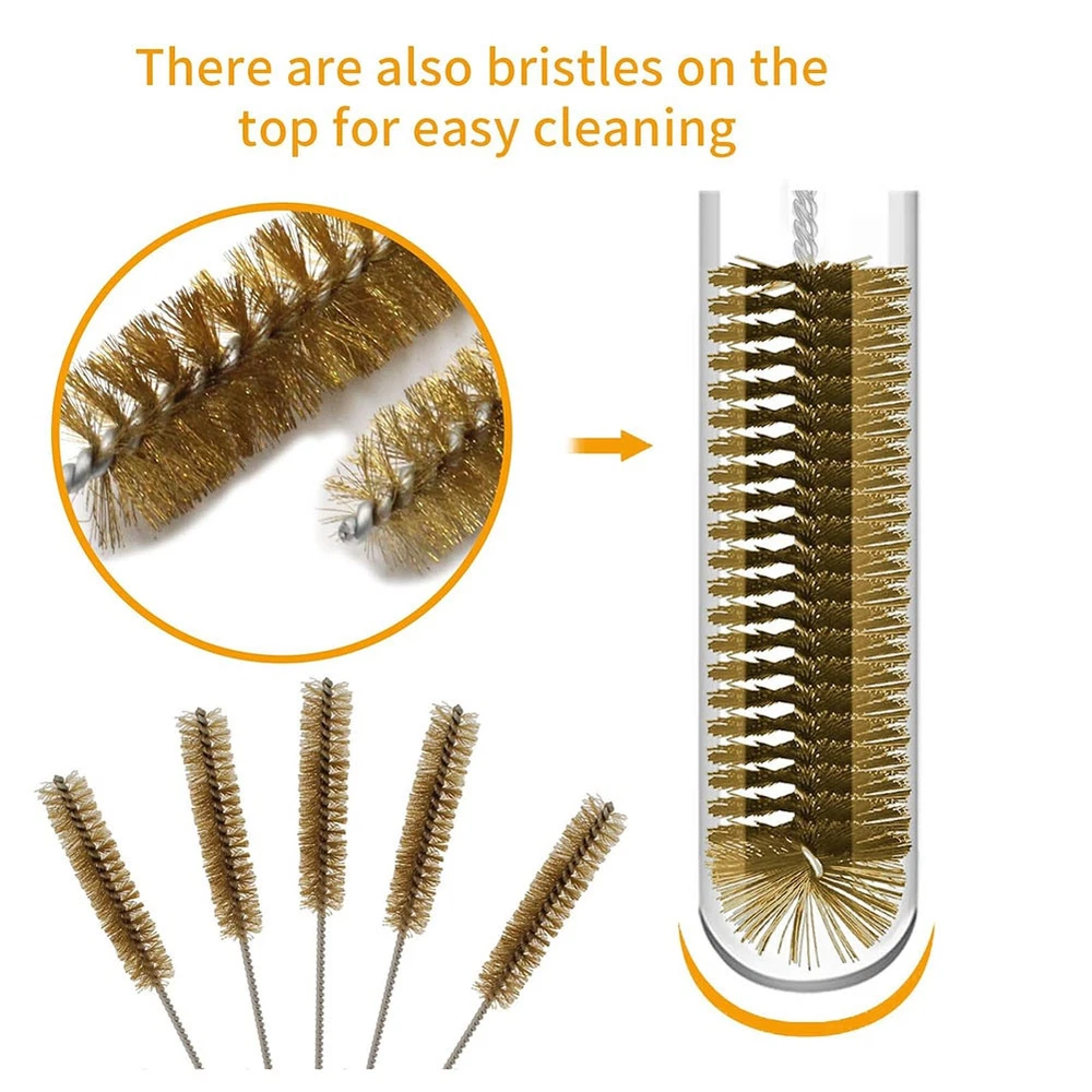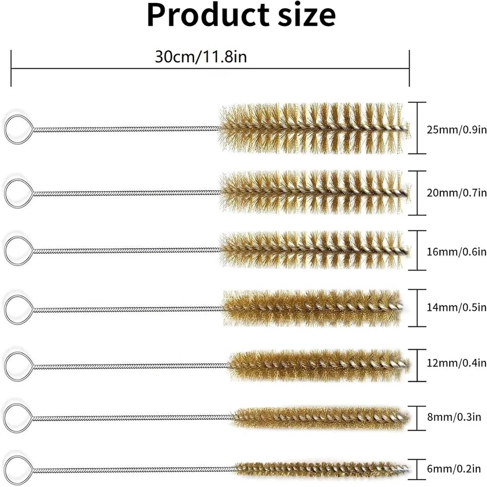 7Pcs Brass Wire Tube Brushes Bottle Brush Set,Wire Brushes for Cleaning6171 and Reusable: Crafted with high-quality brass wire, this 7-piece brush set , bendable handle perfect for reaching into tight spaces and corners. Pre-lubricated in production for immediate use, any residual be easily cleaned with paint thinner. Varied Sizes for Versatility: Complete with 7 different diameters, ranging from 6mm/0.2inch to 25mm/0.9inch, our brushes cater to a multitude of cleaning needs. The handle's hanging design ensures easy storage and drying to prevent bacterial growth in damp environments. Stiff Brass Wire for Tough Messes: These brushes are with stiff brass bristles that tackle hard-to-remove debris and stains. perfect for oil-stained surfaces, metal polishing and even delicate tasks like suede shoe cleaning when used with appropriate cleaning agents. Heat and Flexible: The brushes' robust brass wires maintain their form and functionality even under high temperatures. Commonly used in food service applications and mold cleaning, their flexibility allows for thorough, detailed cleaning sessions. Multifunctional Cleaning Tools: Not only are these brushes great for cleaning bottles and glassware, they are also perfect for computer keyboards, automobile parts, paint , coffee machines, and many more intricate cleaning needs. Please note:the physical slightly color difference or difference, does not affect the use, please do not mind, thank you! Colour:Gold Material:brass Size:Total length:about 30cm Package Contents: 7 * Wire Tube Brushe (6/8/12/14/16/20/25mm)