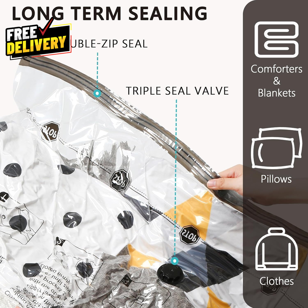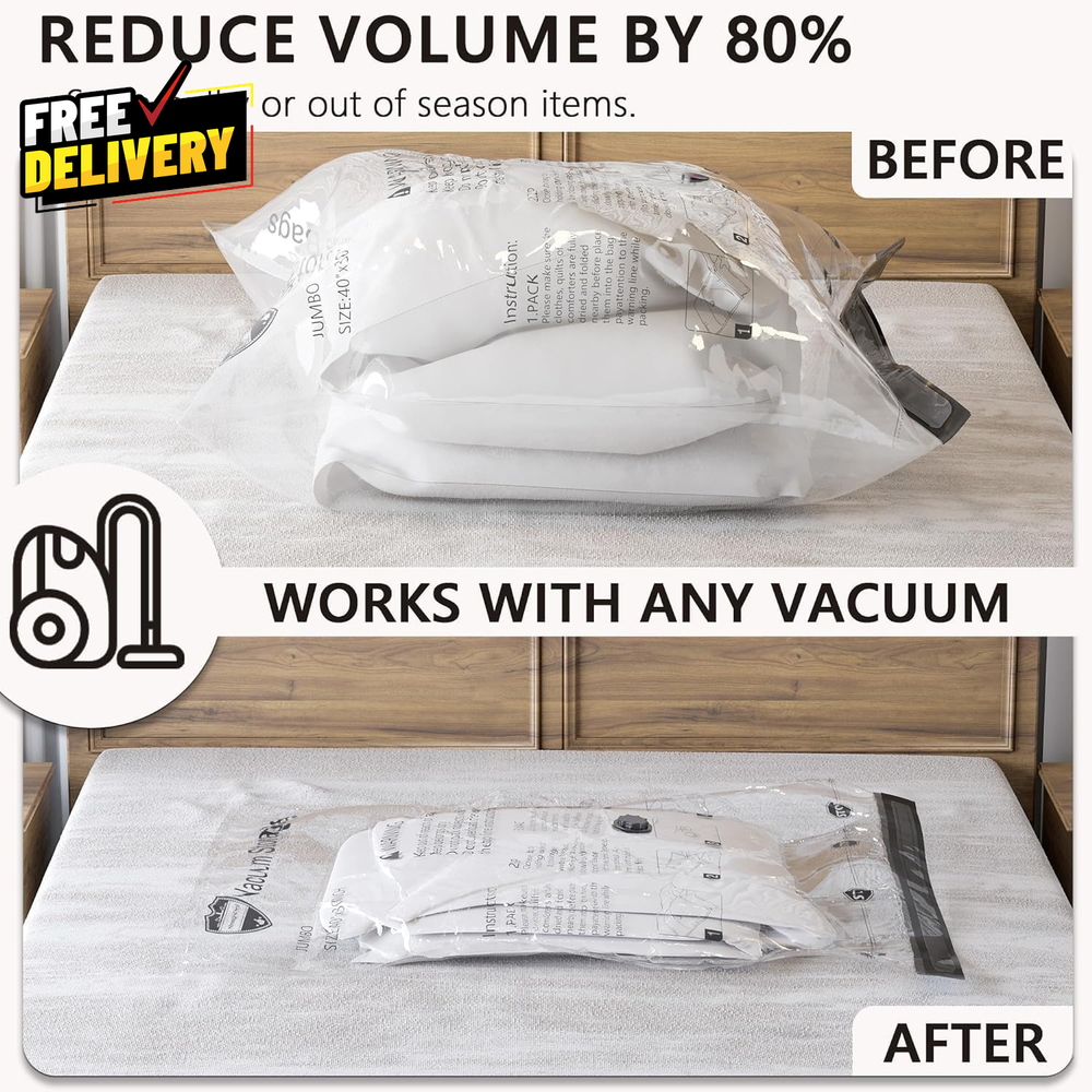 Store New Arrivals Add to Favorite View Feedback Contact 8Jumbo Vacuum Storage Bags Vacuum Seal Bags for Clothing Travel Space Saver Bags Description PE PA Imported Vacuum Storage Bags: Packing your comforters, blankets, duvets, pillows, towels, clothing, linens, bedding, and more. Reduce the original volume by 80%. These vacuum compression bags are essentials for home storing, moving and travel organizing. Durable and Reusable: Our vacuum sealed bags use thick, flexible and durable PA+PE material and are reusable for multiple times. Long Term Protection: The unique double zip seal and the triple seal valve are designed to to get air expulsion and nothing gets back in. The airtight and watertight material protects your item from dust, dirt and other damages. Easy To Use: Works with any standard vacuum cleaner; Put the items in, zip up and suck out the air, then close the cap and finish. Package Details: 8 Jumbo bags (27.5" x 39.5"). Hand pump included. Free up space for your closet, cloakroom, wardrobe, basement, suitcase, dormitory, attic and bedroom. ABOUT US Prior to making any purchase from our store, we’d like to introduce ourselves. My name is Shahzad Yaqub , and I am the proud owner of Epic Emporium Deals , located in the great state of Illinois, USA. I have been an active and trusted eBay seller since Jan 14, 2025 . At Epic Emporium Deals , we are committed to offering competitive prices and top-quality products . Our extensive collection features a wide variety of items, including media such as books, movies, music, and games , as well as electronics, toys, sporting apparel, clothing, tools , and general home and garden essentials —and much more! If you have any questions or require assistance, please don’t hesitate to reach out. Your satisfaction is our priority, and we look forward to providing you with an exceptional shopping experience. SHIPPING We are always working hard to ensure your package arrives as soon as possible. Please understand that some factors like weather, high postal traffic, and the performance of shipping companies are outside of our control. We offer free shipping to the lower 48 states and ship within 2 business days of payment, usually sooner. We do not accept P.O. Boxes. Please provide a physical address. For shipping outside of the continental USA, we only use eBay's Global Shipping Program. The item is shipped to IL and then sent to the rest of the world. International customers are responsible for all duties and taxes. Continue to 'check out' to calculate costs for shipping the item to your country. Messages regarding eBay's Global Shipping Program MUST be directed at eBay EXCLUSIVELY. RETURNS We do not accept returns under normal circumstances. However, we will gladly consider a return if the item is received broken or if the wrong size is sent to you. In all other cases, returns will not be accepted. CUSTOMER SATISFACTION We try our very best to make sure every customer is completely satisfied. If there's a problem, message us! We're happy to help.