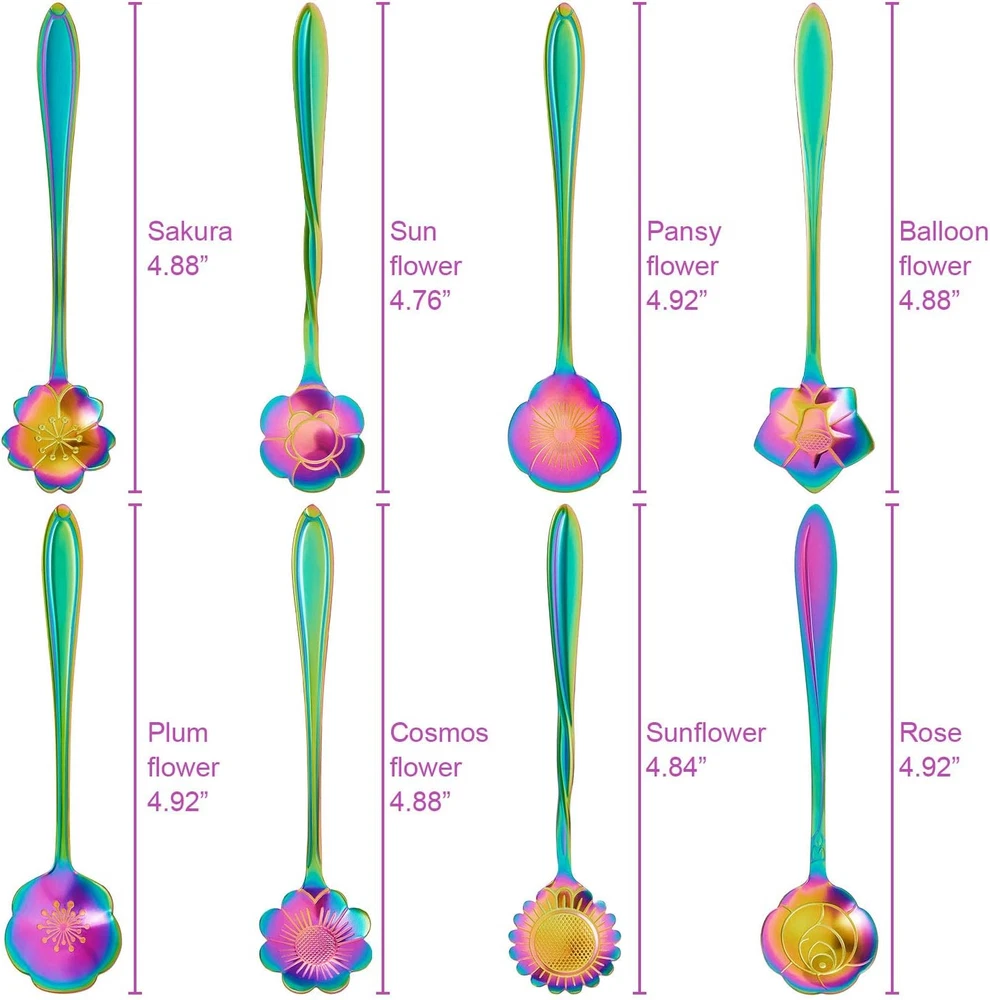 Store New Arrivals Add to Favorite View Feedback Contact 8 Pieces Flower Spoon Coffee Teaspoon Set Stainless Steel Tableware Creative Sugar Spoon Tea Spoon Stir Bar Spoon Stirring Spoon, 8 Different Patterns (Rainbow Color) Description Style Flower Handle Width 0.9 Inches Color Rainbow Color Material Stainless Steel Material Type Stainless Steel Style Name Flower Is the item dishwasher safe? Yes Product Dimensions 4.92"L x 1.1"W Item Dimensions L x W 4.92"L x 1.1"W Material Type Free Plastic Free Wide application: can be applied as coffee spoon, stirring spoon, sugar spoon, stir bar spoon, mixing spoon, tea spoon, ice tea spoon, ice cream spoons, very useful and practical 8 Different patterns: include rose spoons, sakura spoons, sunflower spoons, balloon flower spoons, cosmos flower spoons, plum flower spoons, sun flower spoons, pansy flower spoons, elegance and beautiful Good material: the stainless steel tea spoon is made of stainless steel, durable and safe, no need to worry about rusting and tarnishing, can be applied for a long time Machine washable: the coffee mixer spoon can be washed by machine, easy to clean and store; Small size don't take too much space Package: comes with 8 flower coffee spoons, includes 8 different patterns, 1 piece each pattern, enough for use Product Description Quality stainless steel, durable and safe No need to worry about rusting and tarnishing Small size don't take too much space Please confirm carefully whether the size you need before buying With ergonomic design and smooth edge Machine washable, easy to clean and store ABOUT US We offer the best prices around on high quality products. Our E-store includes media such as books, movies, music and games while offering electronics, toys, sporting apparel, clothing, tools, general home, garden items and more. SHIPPING We are always working hard to ensure your package arrives as soon as possible. Please understand that some factors like weather, high postal traffic, and the performance of shipping companies are outside of our control. We offer free shipping to the lower 48 states and ship within 2 business days of payment, usually sooner. We do not accept P.O. Boxes. Please provide a physical address. For shipping outside of the continental USA, we only use eBay's Global Shipping Program.The item is shipped to KY and then sent to the rest of the world. International customers are responsible for all duties and taxes. Continue to check out in order to calculate costs for shipping the item to your country. Messages regarding eBay's Global Shipping Program MUST be directed at eBay EXCLUSIVELY. RETURNS We offer a 30-Day Return Policy on items which you are not completely satisfied with. You have the option for a full-refund or an exchange of the item. No returns are available on items shipped outside of the USA. PAYMENT We accept PayPal. CONTACT US This page content is yet to come Please ad us to your favorite seller and visit again later Thank You CUSTOMER SATISFACTION We try our very best to make sure every customer is completely satisfied. If there's a problem, message us! We're happy to help. WE ACCEPT Copyright © 2021 AutoDS. | All Rights Reserved