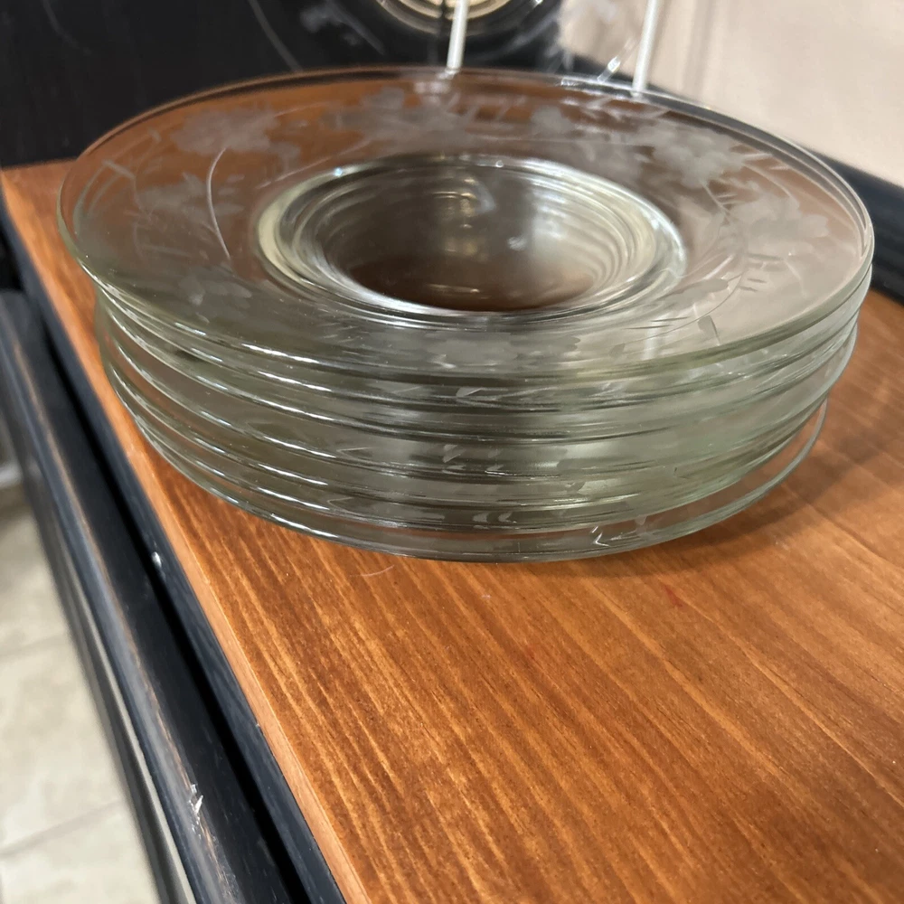8 Princess House Heritage Crystal 8" Luncheon Plates EUC Set of 8 Heritage 8" luncheon plates in excellent pre-owned condition. There are a few light utensil marks on the plates, but overall they look like they were rarely used. See photos for details of condition.