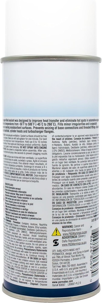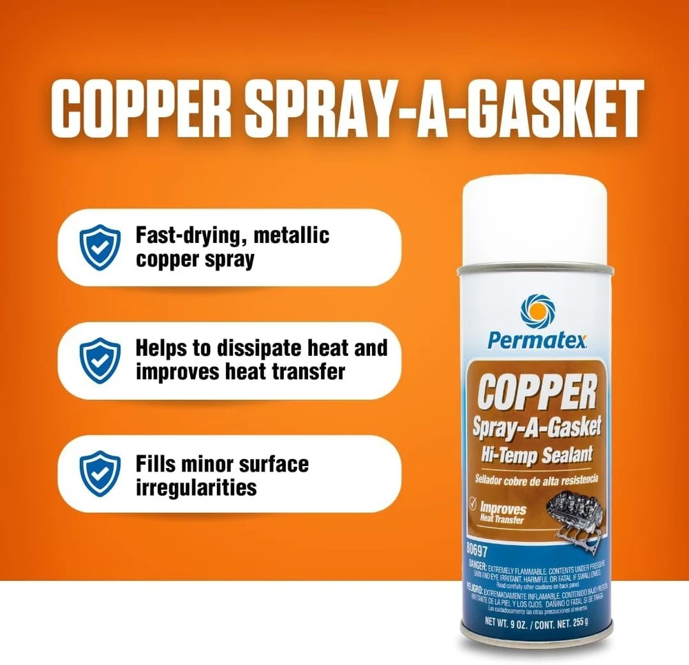 100% Money Back Guarantee if you are not satisfied with your purchase! ____________________ Description: Permatex 80697 Copper Spray-A-Gasket Hi-Temp Adhesive Sealant, 9 oz. net Aerosol Can , Orange ● Fast-drying, metallic copper spray adhesive/sealant helps to dissipate heat, prevents gasket burnout, and improves heat transfer. ● Fills minor surface irregularities, fills hot spots and surface imperfections. ● Resists all types of automotive fluids, especially gasoline. ● Temperature Range: -50°F to 500°F. (-45°C to 260°C) ● Suggested Applications: Cylinder head gaskets, exhaust manifold gaskets, and other high temperature applications. 100% Money Back Guarantee: We offer 30 Day Money Back Guarantee from the day you purchased if you’re not satisfied with your product. If you have any questions about our products, please contact us as soon as possible. Customer satisfaction is our absolute priority. Shipping: We are always working hard to ensure your package arrives as soon as possible. Please understand that some factors like weather, high postal traffic, and the performance of shipping companies are outside of our control. We offer free shipping to the lower 48 states and ship within 3 business days of payment, usually sooner. We do not accept P.O. Boxes. Please provide a physical address. You will be notified via eBay messages as soon as your items ship. Delivery: We will ship out the item in 2-3 working day after receiving the payment. Usually the delivery takes 2-5 business days. If you don't receive the items after 10 days, please feel free to contact us. You will get a replacement or a full refund. Please DO NOT open a return request or leave negative feedback without asking for help. Returns (Get Free Return Label): We offer a 30-Day Return Policy on defective/wrong items or items which you are not completely satisfied with. You have the option for a full-refund or an exchange of the item. No need to buy eBay return label. Contact us via eBay messages and get free return label. Returned items must be in all of the original packaging and include all of the original accessories or items that came with it. The item and package should be in original condition. Contact Us: Any queries or issues incurred, please feel free to contact us via eBay message, we will get back to you within 24 hours. Please DO NOT open a return request or leave negative feedback without asking for help. Feedback: Your feedback is very important to us. After you get your package and you are satisfied with our service, please leave us positive feedback. We are highly appreciated for your POSITIVE feedback and 5 stars. Enjoy shopping.