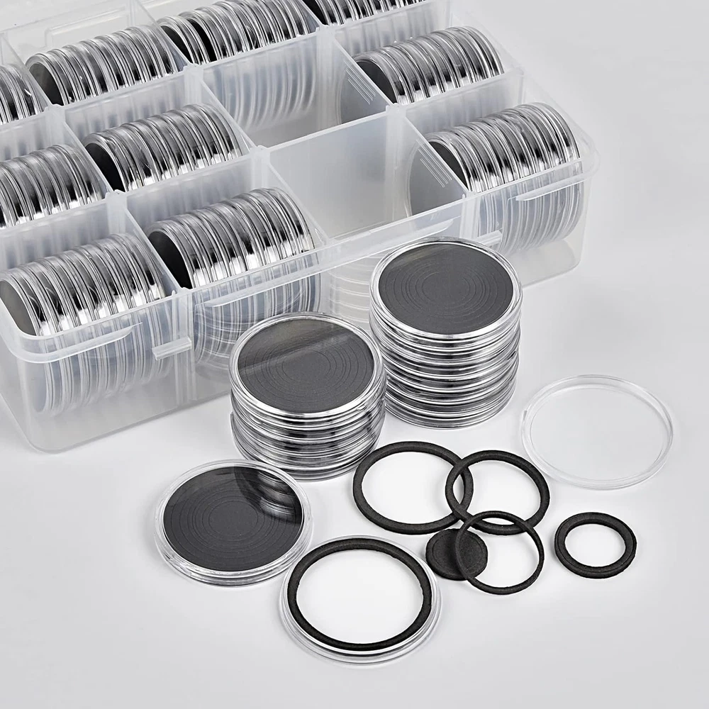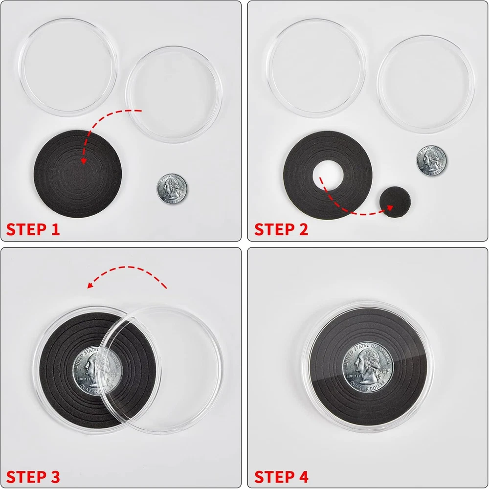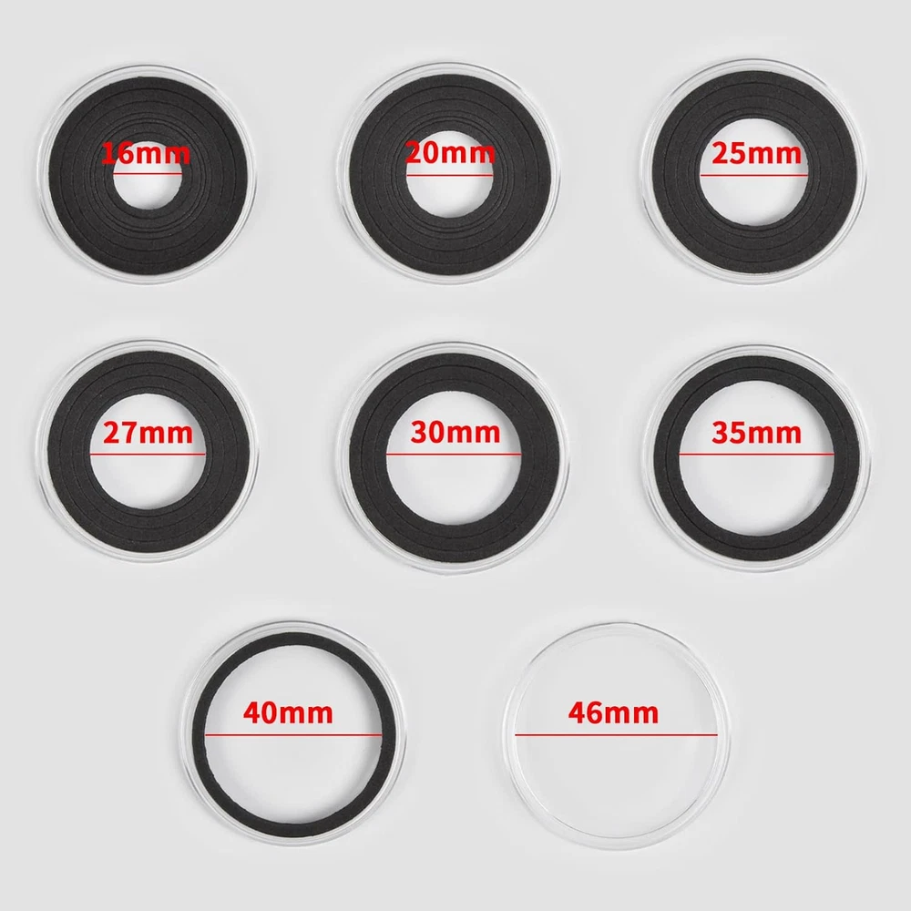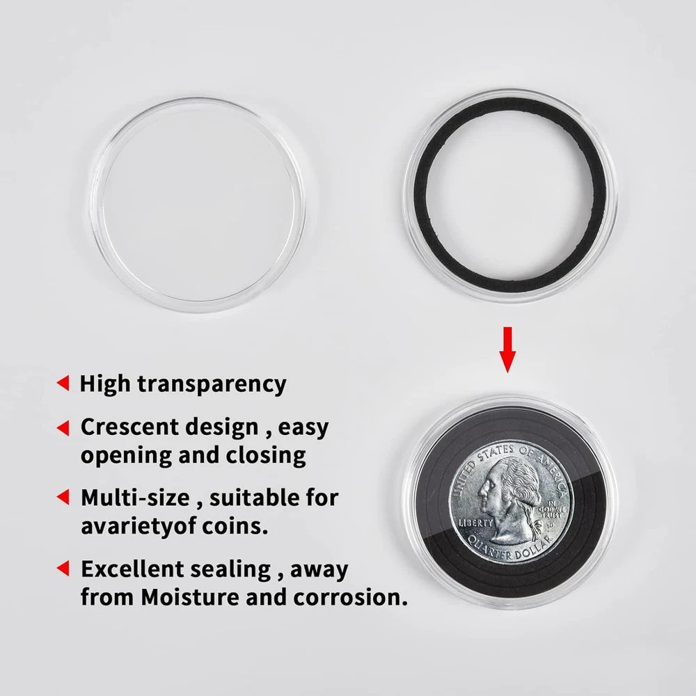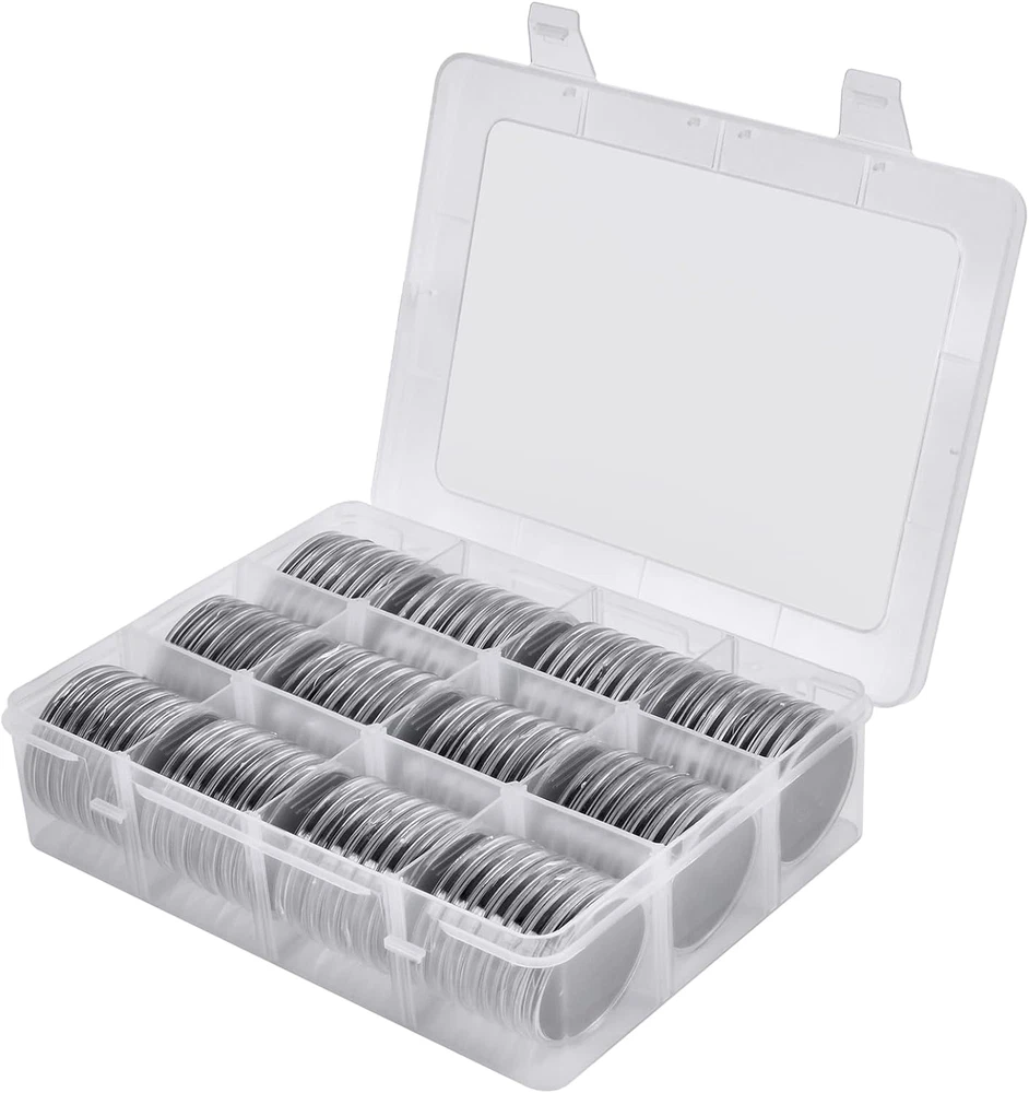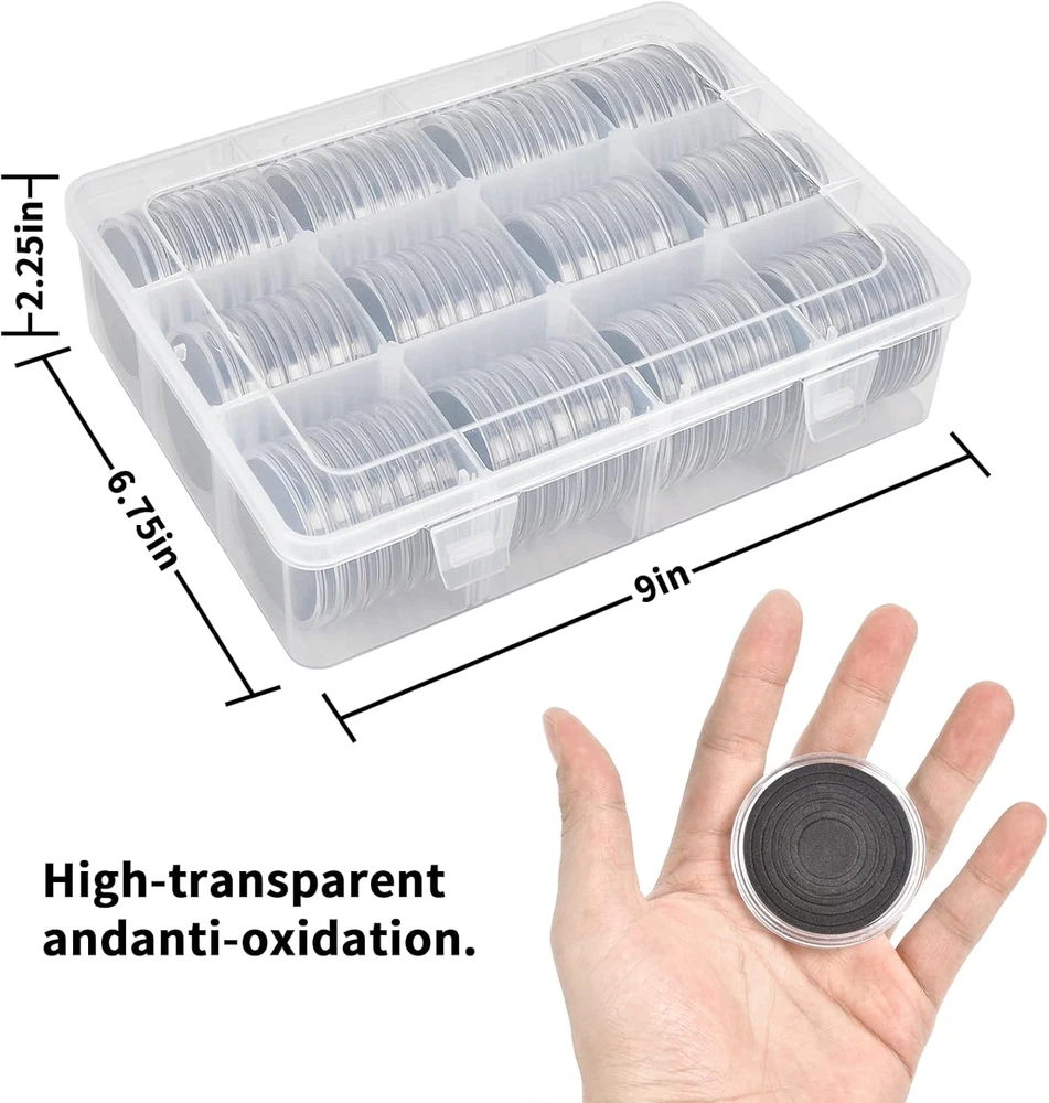 Package include: 84 pieces 46mm coin capsules, 84 pieces EVA foam gasket, one plastic challenge coin display case storage box. The protective Plastic storage with 12 grids, 9 removable dividers, every grid can contain 7 coin capsules. Size: 8.85 x 6.69 x 2.16 in. Universal silver dollar coin holders suitable for: The coin capsule inside size is 46*3mm, sutiable for holding almost all kinds of coins the diameter does not exceed 46mm, like 2020 - American Silver Eagle coins, bullion coins, challenge coins, or dollars, etc. 6 sizes foam gaskets (20/25/27/30/38/46mm), You can DIY the gaskets to fit your coin, prevent it from moving around. Double protection display Coin Trays & Coin Boxes: ntag215 Coin capsules are made of thickened plastic, transparent. The plastic coin holder organizer provide another protection to coin capsules, made of H&Q material, hold 84 capsules, keep them snug in place all the time, it can prevent capsules and coin from damage and falling off. Keep your coin clean and safe all the time. Convenient design coin collection supplies storage box: Crescent opening design make it convenient to open and close, the eva foam gasket easy to remove it to fit your coins. This coin holder protector come with 9 removable divider, you can easily to collect you coin in classification, each grid for different type coins. With 2 secure clip lock easy for closing and opening, keep your coin safety in place. Great as a present: Clear coin containers holder conduce to coin storage, view and exchange, great display coin holder, portable and easy carrying, good present for coin collectors to protect and store their favorite coins, with any quality problem, we will always on your service. Product Description