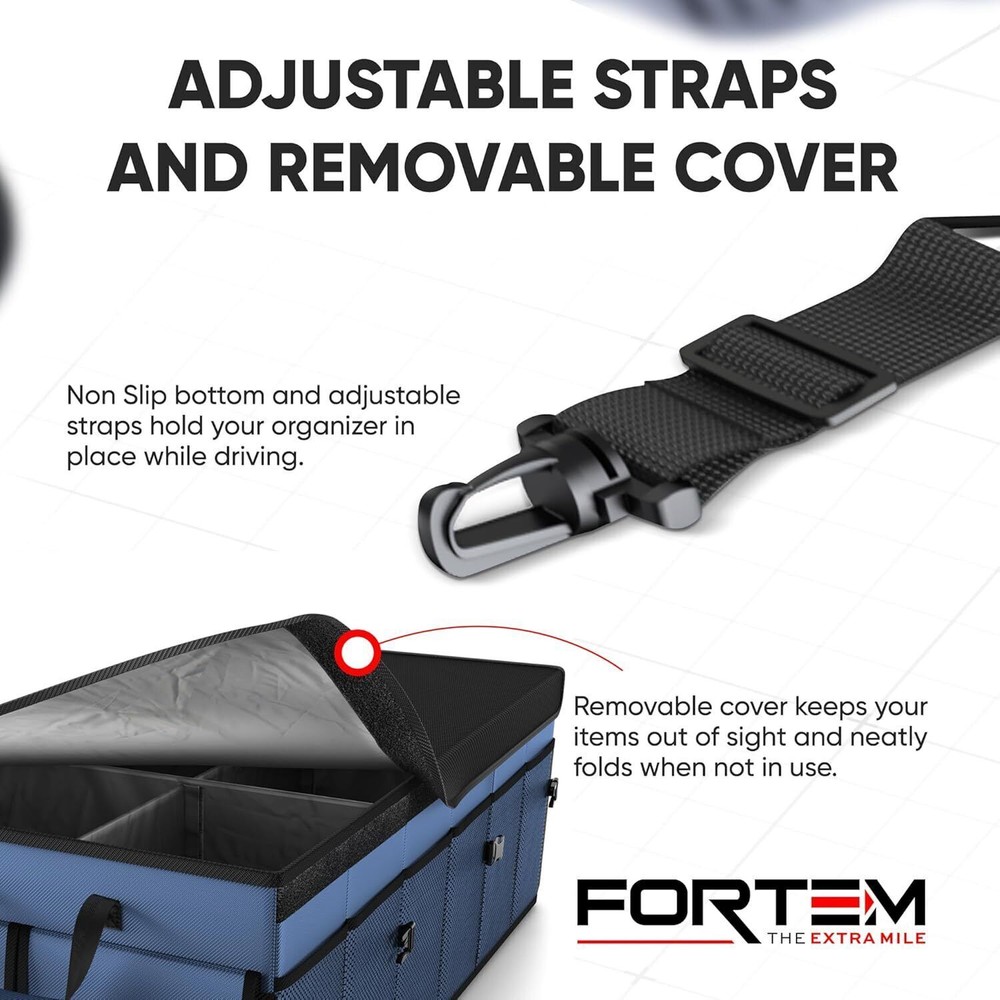 Sturdy Box Design – premium trunk storage organizer for car is reinforced with rigid base plates to support every side panel. Among car organizers and storage, ours will leave less mess to worry about with multiple side pockets and up to 3 compartments. Stays in Place – Our car trunk storage organizer has non-slip strips to prevent sliding and adjustable straps to secure to your trunk. Store small items in the tight mesh siding or pockets with lids. You can even connect 2 or more car organizers with interlocking buckles. Multifunctional – Trunk organizers and storage make car organization easy and simple. Organize a variety of products from groceries to office supplies, accessories (handbags, shoes,) or toys for . Consolidate the mess in your trunk and make room for your cooler or camp gear. Collapsible with Removable Lid – You can move trunk storage to the backseat, front seat, or center of your vehicle since it is collapsible to 1 compartment. The detachable lid keeps your goods out of sight for added security. Product information Technical Details Specific Uses For Product Automobiles Material Nylon Special Feature Expandable Color Blue