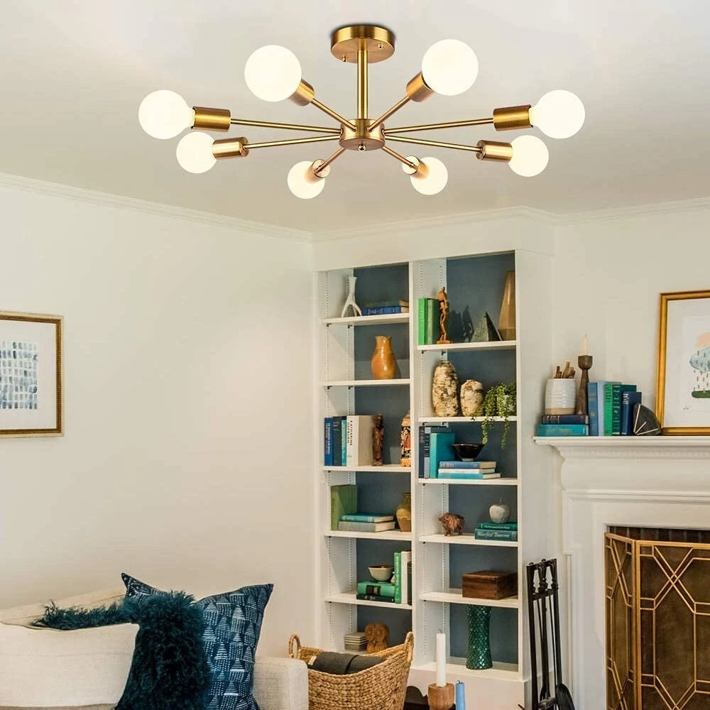 Elevate your home with the stunning 8-Light Brass Sputnik Chandelier. This modern ceiling light fixture features a bold brass finish and a unique Sputnik design, creating a striking focal point in any room. Ideal for contemporary living rooms, dining areas, kitchens, or hallways, this chandelier offers a perfect combination of style and functionality. The 8 lights provide ample illumination, making it ideal for brightening up your space while adding a touch of sophistication and mid-century charm to your decor. Key Features: 8-light brass Sputnik chandelier with modern, mid-century design Elegant brass finish for a sleek, contemporary look Perfect for living rooms, dining rooms, kitchens, or hallways Ample lighting with 8 bulbs (bulbs not included) Durable and high-quality metal construction TERMS OF SALE 100% Customer satisfaction is our principal and prime goal. If you are not satisfied with your purchase then simply return it within 30 days of receipt, we will refund the purchase amount upon receiving the item within 30 days, any defective item not due to misused will entitled to 1 to 1 exchange. Buyers should be responsible for the shipping cost from their locations to India. We will be responsible for the shipping cost from India to buyers' locations FEEDBACK Your feedback is important for us. Please contact us if you have any problem with this product, we will solve that problem because we will always be happy to help you.
