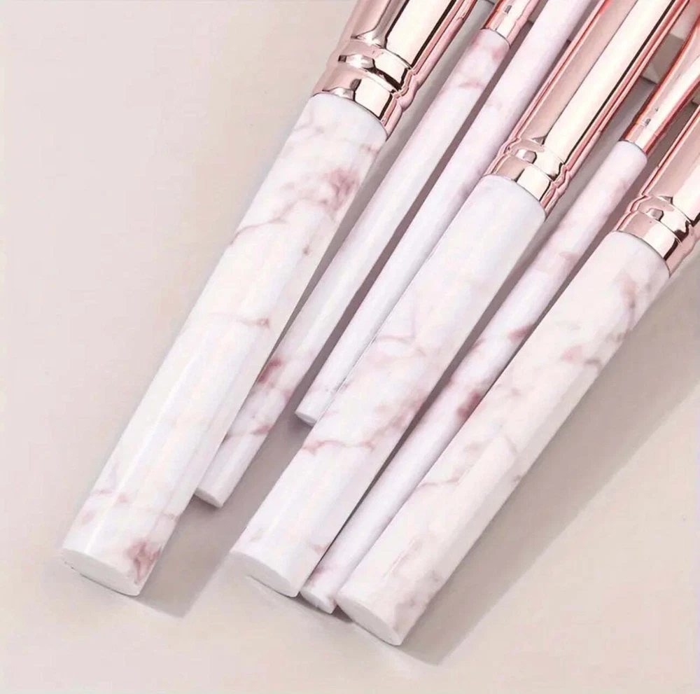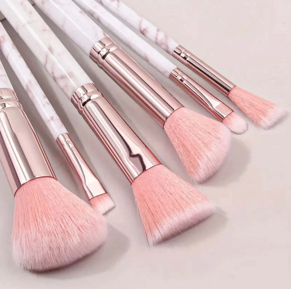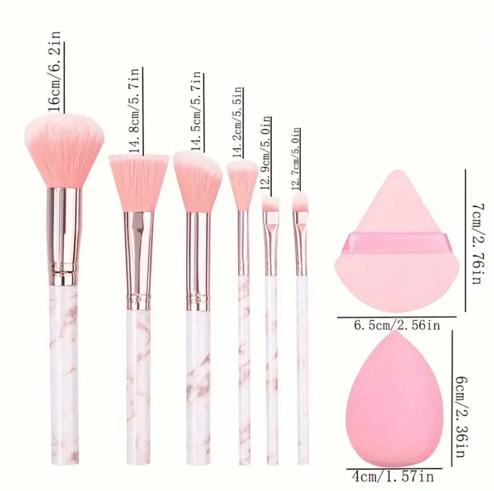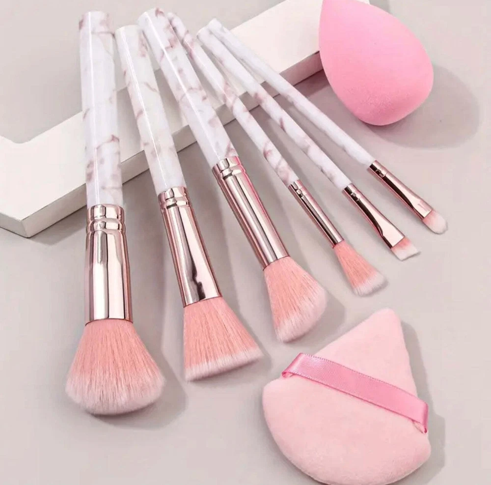 8pcs Pink Marble Makeup Brush Set with Blending Sponges - Includes Face, Eye &