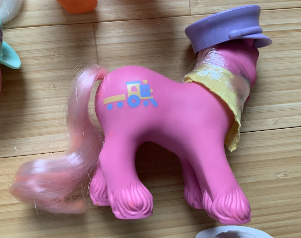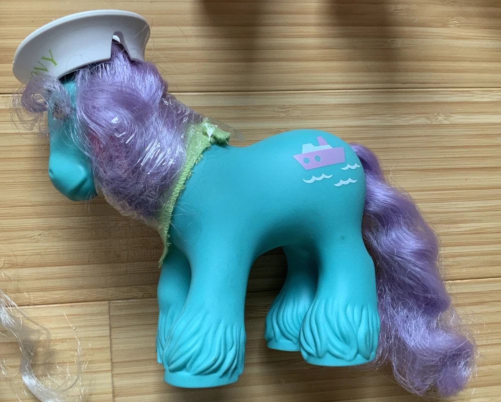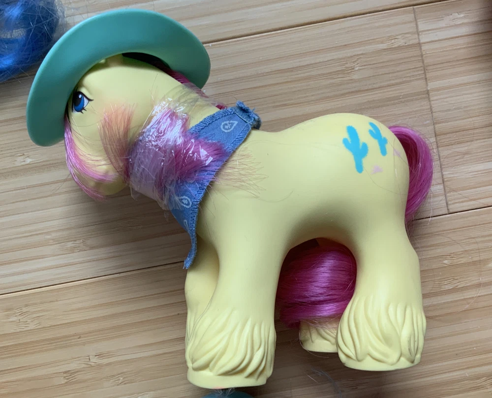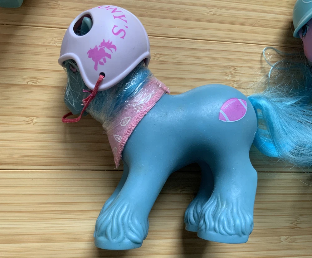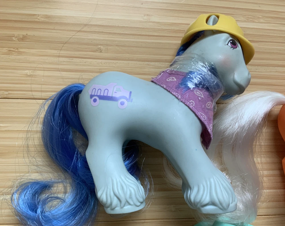 This lot is for ALL 9 My Little Pony Big Brother ponies! All with their hats and bandanas! These have been carefully stored with their manes wrapped for over 20 years. That being said, they still have some dots and/or discoloration due to their age. This is a perfect way to collect all of the US-released Big Brother ponies at once, either for yourself or maybe a holiday gift for someone else! Please check all pictures thoroughly and ask any and all questions before buying! You will receive: Chief - yellow spots on body 4-Speed - body does have marks and discoloration WigWam - looks good Quarterback - some marks and discolorations Steamer - some pink dots, light pen mark (?) on muzzle Pirate - marks on body, face - you can see some under right eye and left nostril Tex - couple of very light marks, clean Slugger - couple of pink dots Salty - couple of light marks From a non-smoking home! FAST shipping from US seller!