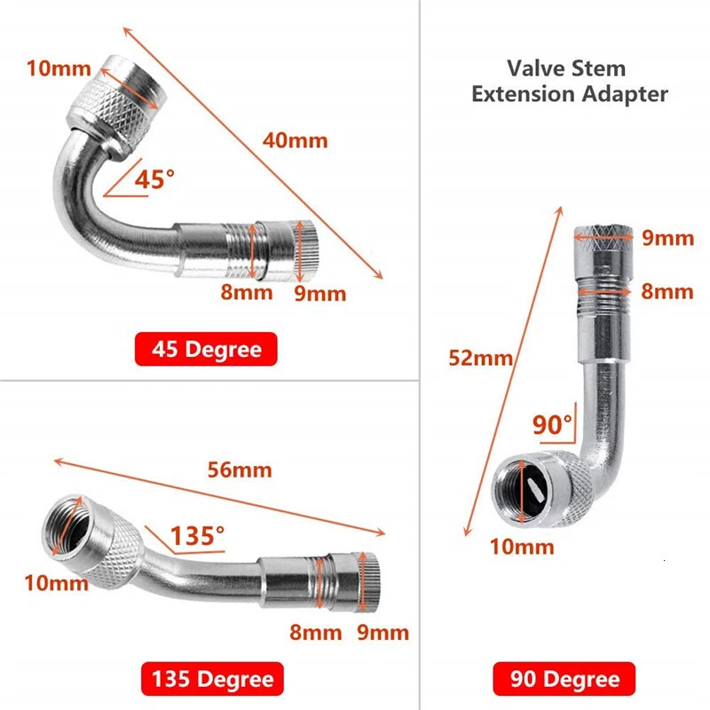 1. Used on cars, motorcycles, electric bicycles, etc. 2. Normally inflate the tire by extending the mouth. 3. The product is made of 59 copper. After pickling, the surface of the product is beautiful and free of stains. 4. The interface is equipped with a rubber sealing ring to ensure no air leakage during inflation. The nozzle is equipped with F cap (copper cap). Specifications: Body material: copper Color: Silver Model: 45°/90°/135° Size: 35x30x11mm/1.37*1.18*0.43'' 45x25x11mm/1.77*0.98*0.43'' 58x20x11mm/2.28*0.78*0.43'' Net weight: 15g Packages: 1set x Extension Tyre Valve On Dec 30, 2023 at 22:11:55 PST, seller added the following information: