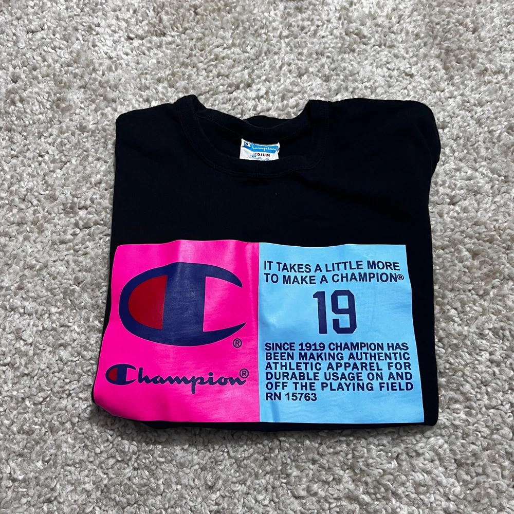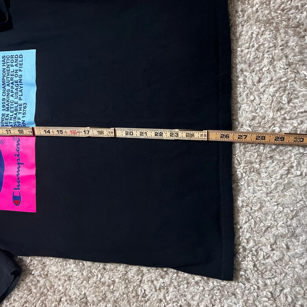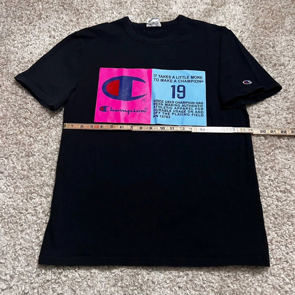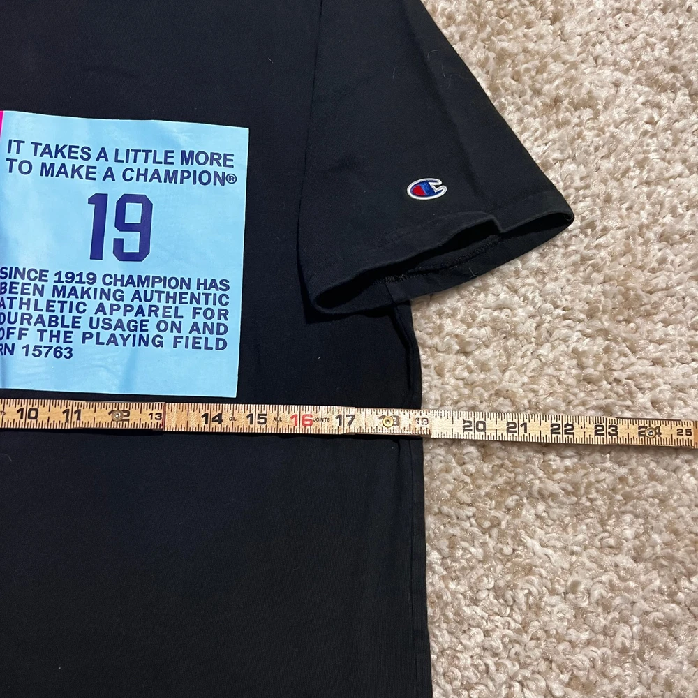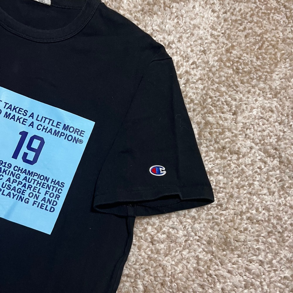 FOR SALE - VINTAGE Champion Shirt Men Medium Black 90s Blue Label Big Logo Casual Graph Tee Product Size : Mens - Medium Product Condition: Shirt is in very good used condition Measurements: All sizing and measurements provided in photos above. Please review before ordering. Shipping: I Ship Items Same Day or Guaranteed Next day After Payment Confirmation. Monday - Sunday. All Items Under 13 OZ are shipped Via USPS First Class. Global Shipping Available . Questions or Concerns: Please Don't Hesitate to ask any questions you may have I'm t raditionally always available to answer. FEEDBACK: Feedback is Important to us. If your satisfied with your purchase please leave a p ositive review. I appreciate your business!