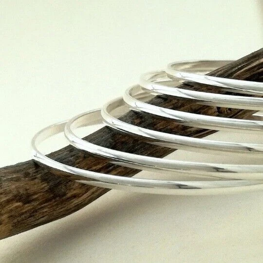 925 Silver Chunky Bangle, Set of 7 Bangles, Stacking Bracelets, 7 Day Bangles