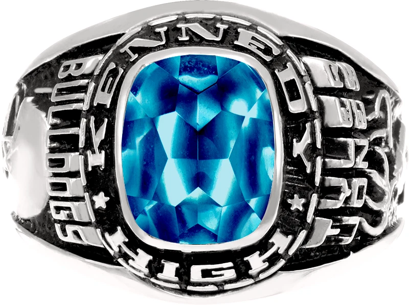925 Silver Customized Rectangle Men's Birthstone High School College Class Ring