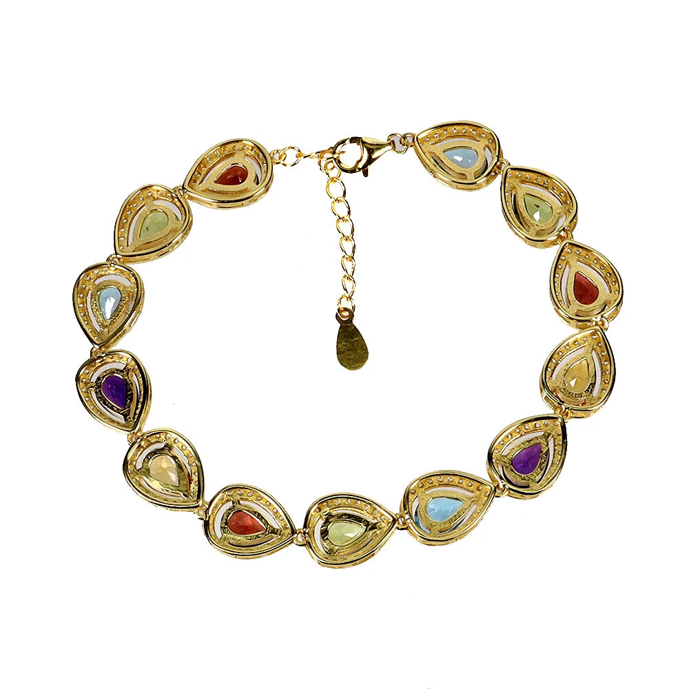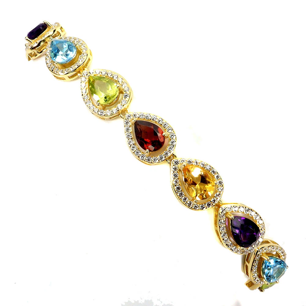 925 Sterling Silver Bracelet Pear Citrine Amethyst Topaz Gemstone Jewelry 7 Inch PRODUCT ID BA2412070042 PRODUCT TYPE Bracelet TYPE OF METAL 925 Sterling Silver PLATE 14k Yellow Gold Ring size/Length (inches) 7 MAIN STONE Citrine OTHER GEMS Amethyst, Simulated Cz, Mozambique Garnet, Peridot, Sky Blue Topaz TOTAL weight 10.81 gram (total weight of silver + stone) DIMENSION * STONE 7.0 X 5.0 MM. * CZ 1.0 MM. * TOTAL LENGTH 7.0 INCHES. * FACE BRACELET 165.0 X 9.0 MM. MAIN STONE SHAPE Pear Cut MAIN STONE COLOR Top Rich Yellow CLARITY/GRADE If To Vvs LUSTER Precious TREATMENT Unheated ORIGIN Brazil HARDNESS 7 IF very high quality & Free from inclushions. VVS high quality with very slight inclushions. SI1 Good Quality with slight inclusions visible to the naked eye. SI2 include becoming prominent to the eye. I included. "Delivering excellent with eBay" we accept: PayPal payment which we prefer. FOR US BUYER >>>> PLEASE READ We are genuine seller from THAILAND. All products are originally 100% manufactured in THAILAND. Every items are 100% exported directly from THAILAND. However, we use shipping provider 'Webgistix' who is a US distributor. The items will be allocated from Webgistix's distribution office in Las Vegas, NV by USPS. Please understand that the tracking status will show starting from Las Vegas when you track the items. Feel free to ask for more details. We ship item(s) from Thailand to Worldwide in 24 hr. ( in working day ) after the payment was cleared. $10 - flat rate for a registered airmail, takes 20 - 40 days delivery. Thailand Post stops the service to Latvia, Lithuania, Malta, Moldova, Estonia, Georgia and Israel. Fedex cost up on destination with insure and online tracking. Destinations Asia NORTH AMERICA, CANADA EUROPE (WEST) EUROPE (EAST), SCANDINAVIA, MIDDLE EAST SOUTH AMERICA, AFRICA FEDEX EXPRESS (minimum) $70 $70 $70 $80 $80 Fedex rate will be charged by weight and destination area. A combine package is limited at 10 items within 10 days. Do not send your payment directly, just contact us to request total when you finish bidding (ebay cannot automatic combine items). Any single item weigh over 300ct is not eligible to combine. Buy over US $999 in one payment (10 items within 10days), Get Free FedEx shipment. TAX/CUSTOM: Custom fee is out of seller control. Buyer is responsible for the cost at arrived. Please give us an opportunity when you have questions with item received. Buyer can make agreement on discount or return the shipping in case of damage item. Seller is located in Thailand. So please contact seller for the instruction before return any item. Your communication is most important to solve the problem. International buyers note: Import duties, taxes, and charges are not included in the item price. These charges are the buyer's responsibility. Please check with your country's customs office to determine what these additional costs will be prior to bidding/buying.