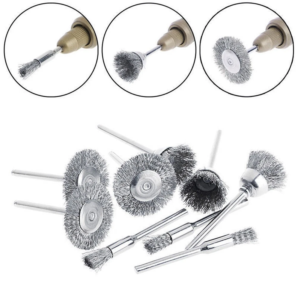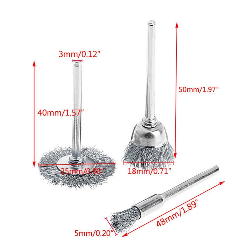 9 Pcs*/Rotary Steel Wire Brush Drill Attachment Cup Wheel Set-Tool Rust-Removal DESCRIPTION Features: * and practical. *Widely used in the - electronic devices, and other industries. *Fit for your polishing need, can use for metal and nonmetal materials. *Suitable for metal for cleaning, derusting, grinding, dusting, deburring, polishing, stripping . Specifications: Product name: Wire Brush Material: Stainless steel Color: Silver Wheel diameter: 25mm Large Cup diameter: 15mm Brush diameter: 5mm Shank Diameter: 3mm Suitable for: metal for cleaning, derusting, grinding, dusting, deburring, polishing, stripping Quantity: 9Pcs Set Package Included: 3 * 5mm Wire Brush 3 * 15mm Wire Brush 3 * 25mm Wire Brush Note: 1.Transition: 1cm=10mm=0.39inch. 2. The real color of the item may be slightly different from the pictures shown on website caused by many factors such as brightness of your monitor and light brightness. 3. Please allow slight manual measurement deviation for the data. POLICES Shipping Payment WARRANTY We only ship to confirmed ebay Order addresses. Please comfirm that your Order address is in line with your shipping address. Please kindly note that the c ombined shipping is not provided because the shipping fee is calculated by weight. Also, the each additional item means exactly the the same color and size. It takes about 7 -15 working days to US; about 10-30 working days to other countries. Transit time may be a little delayed because of the bad weather and customs inspection . If you do not receive your item within 30 working days since payment finished, please contact us immediately for further assistance. Payment must be completed within 5 days. If you have any problems about payment, please contact us via ebay message. We strive for 100% customer satisfaction! Positive Feedback is very important to us. If you have any questions, p lease feel free to contact us via "Ask seller a question" . We will reply your email within 24 working hours.
