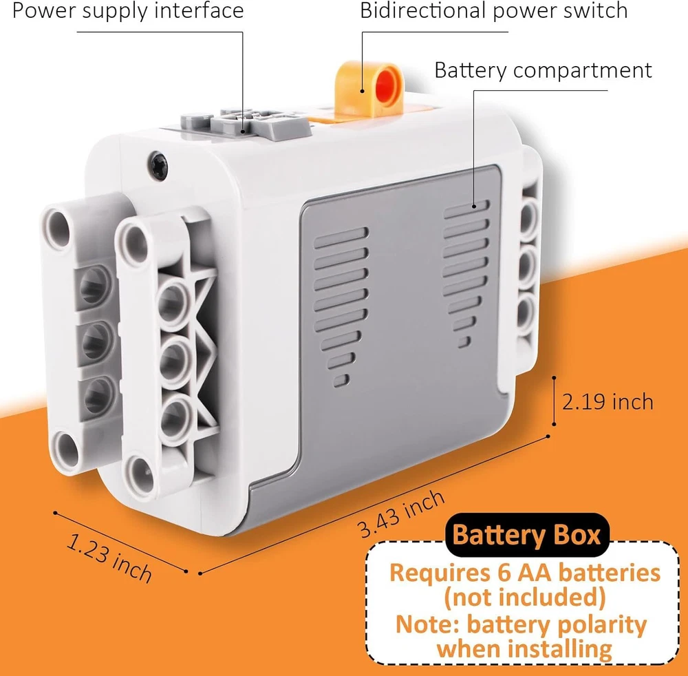 Versatile Power Function: Our techn -ic motor set offers a combination of M and L motors, providing powerful performance for various building block toys. The battery box is capable of running multiple motors simultaneously, allowing for more complex and dynamic creations. Remote Control for Ultimate Flexibility: Take control of your motorized creations with the speed-adjustable tec-hnic remote control, providing you with the freedom to operate your motors anytime, anywhere. The 2.4G receiver ensures a stable connection, giving you the ability to control your projects from a distance. Unleash your imagination and explore endless possibilities with this comprehensive motor kit. Comprehensive Tec-hnic Motor Kit: Elevate your building experience with this all-in-one motor kit, which includes 2 * M motors, 1 * L motors, 1 * battery box (batteries not included), 1 * speed-adjustable tech-nic remote control, 1 * 2.4G receiver, 1 * 9.84-inch extension cable, 1 * LED light cable, and 1 * direction change switch. Made from durable, high-quality ABS plastic, this kit is designed for long-lasting enjoyment. Wide Compatibility & Customization: This motor kit is compatible with most building blocks, such as LEGO, allowing you to mix and match components to fit your specific needs. Transform static building blocks into dynamic, moving creations, adding an extra layer of fun and excitement to your projects. Fun, Engaging & Educational: The process of integrating motors into your building block creations presents a fun and challenging experience. Children can develop their creativity, problem-solving skills, and hands-on abilities through assembly, while parents can enjoy quality time with their kids. This tec-hnic motor set makes a perfect gift for family and friends. Product Description Boost Creativity with Our Motor Set Ignite your child's imagination by transforming building block toys into motorized creations with our easy-to-use Tech-nic Motor Kit. This set promotes hands-on learning, fostering creativity and problem-solving skills. Transform Your Building Block Creations with Our Motor Power Kit Elevate your building experience and bring your projects to life with our nine-in-one motor power kit. Designed to seamlessly integrate with your creations, this comprehensive set provides everything you need to enhance your playtime. Power Combo Basic Power Combo: Connect motors to battery box with ease. Enhanced Power Combo: Multi-motor parallel battery box for enhanced power. Remote Drive Combo With receiver & adjustable-speed remote control, remote control possible. Other Combo Customizable Switch Combo: Flexible motor-to-battery connection via switch. LED light Combo: lights and battery for brighter builds.