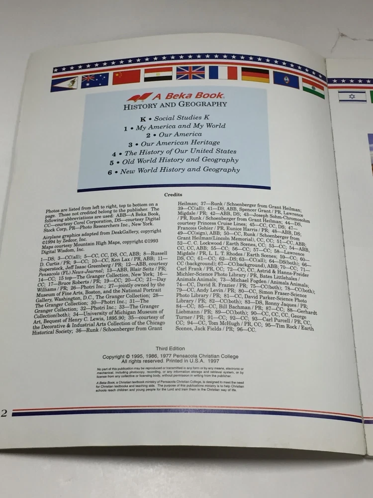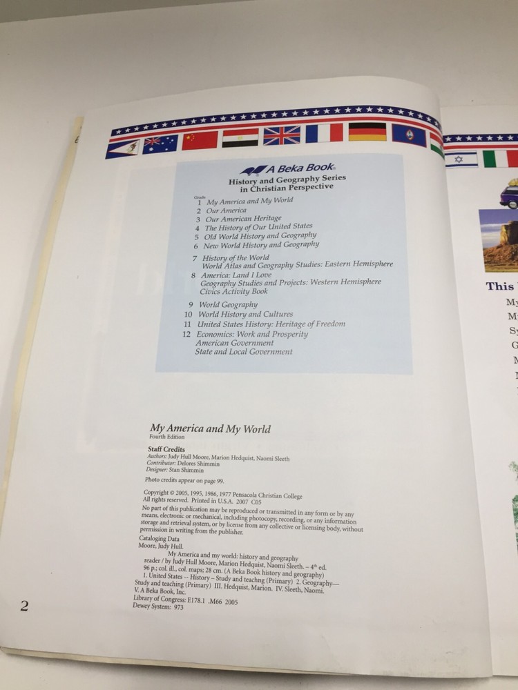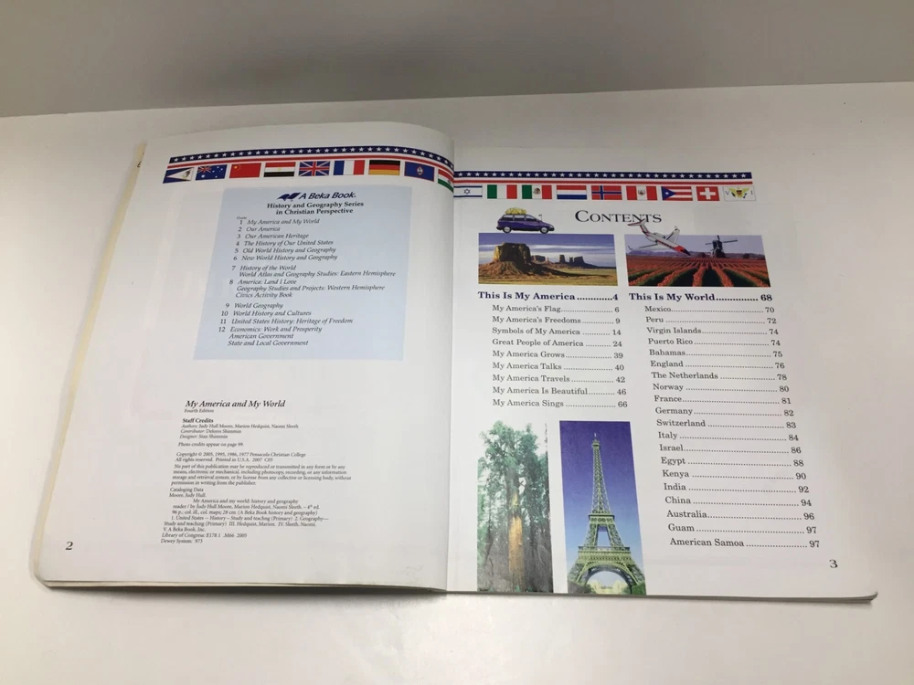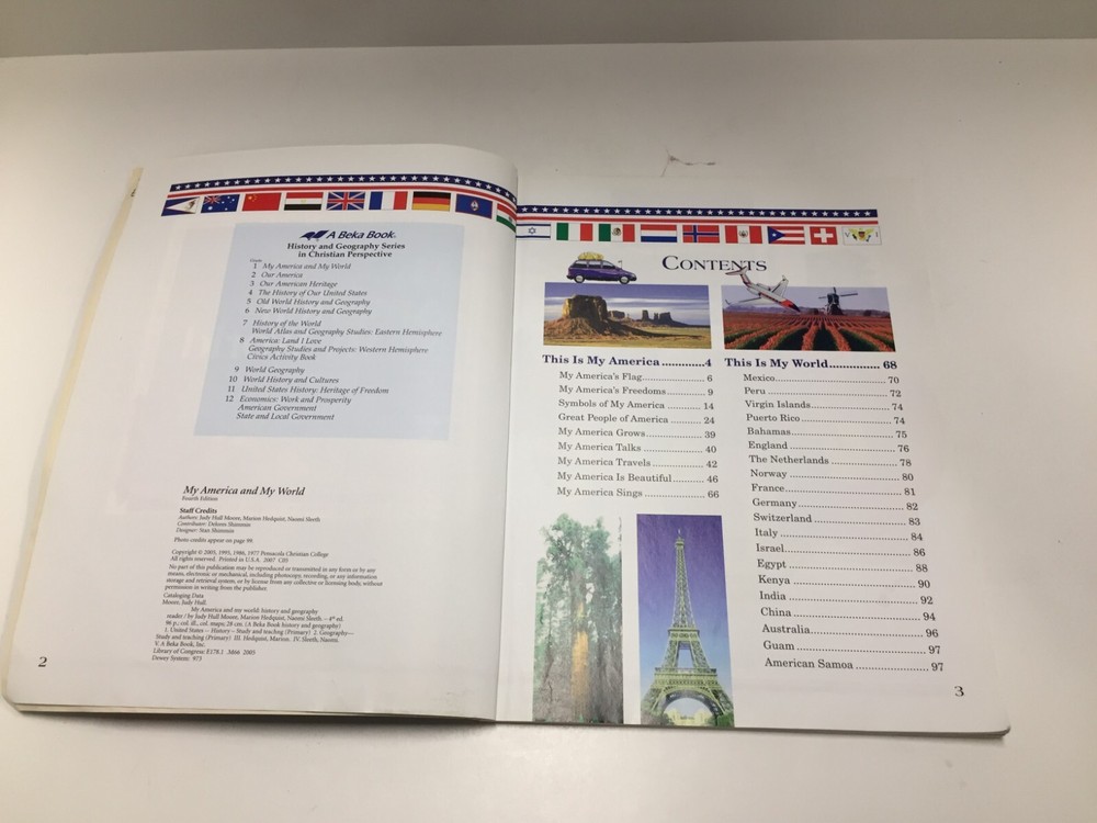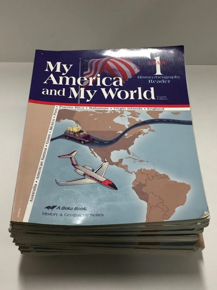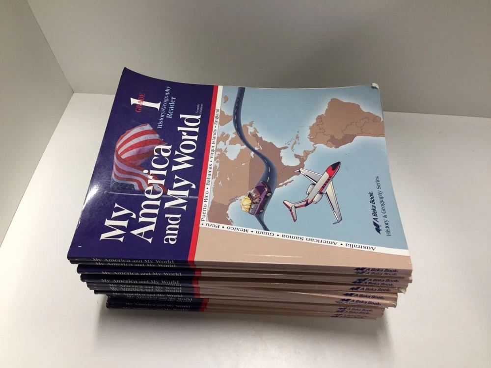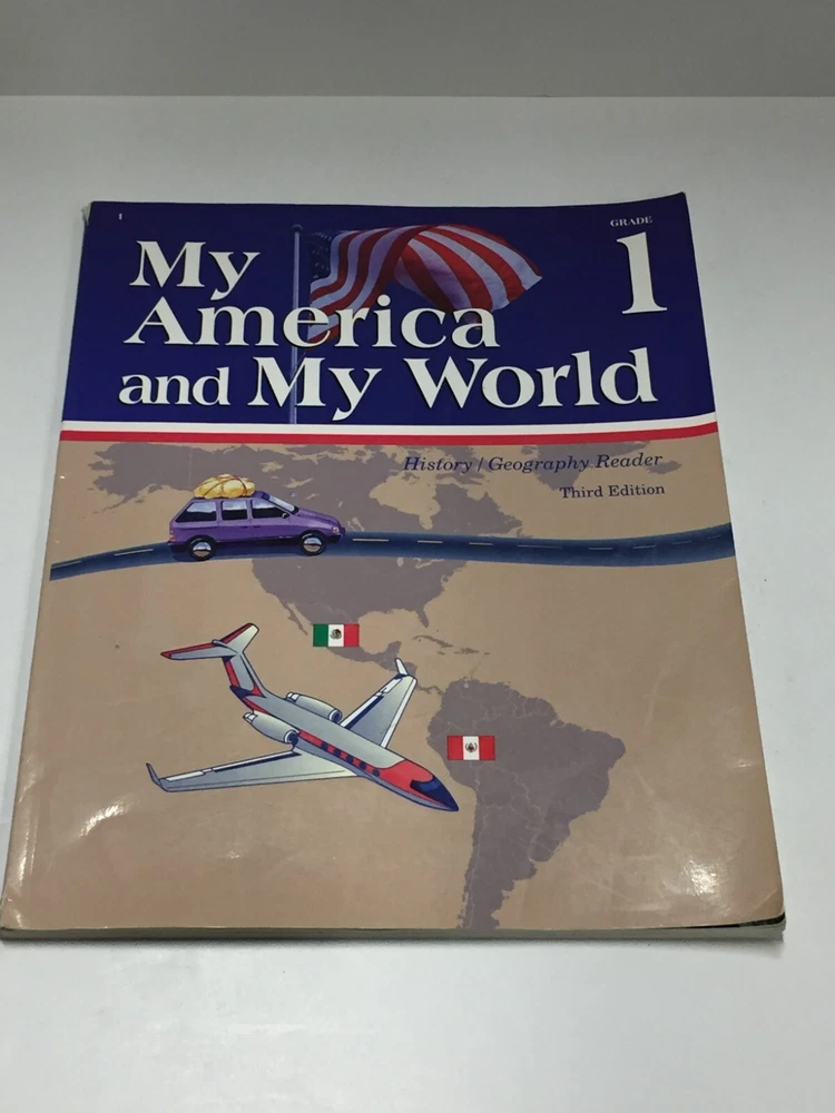 A Beka Book History & Geography Series My America and My World Student Book Grade 1 History/Geography Reader 4th Edition--Student and Teacher Books Hello, welcome to my store: Clutter Kingdom Up for sale: A Beka Book History & Geography Series My America and My World Student Book Grade 1 History/Geography Reader 4th Edition--Student and Teacher Books You are buying 1 book you will receive one book. I have 22 of these available you can x your order up to 22 while supplies last. If you look at last 3 pictures the cover to one of the books is different it is a 3rd edition but it is the same on inside. Previously owned ex-schoolbooks. I did not look at every single page in them but did flip through more than once. Covers and edges show slight wear. You may find some taped they like to tape covers along the edges for added protection . Some books have student names on inside front cover or on first page and you may find school stamps on inside covers front or back. Some have the whole cover covered in clear contact paper. Otherwise, insides are nice and clean and still in good shape. Please see listing and pictures, pictures are part of the description and should be viewed carefully prior to purchasing for item condition, Thank-you! General Information: All items are previously owned unless otherwise mentioned. All Sales are final! Please read description carefully and fully, ask questions before bidding, please see all photos/pictures as they are there to help show description of items, study pictures, ask for more pictures, if necessary, prior to placing bid to avoid any disappointment, be specific. I do not except returns. Shipping: I ship on Monday, Wednesday & Friday~~ONLY! I do not ship on weekends. I do package with recycled materials whenever possible. Please, take time to... browse through my other items, Thanks for looking!!~~Have a Great Day!!