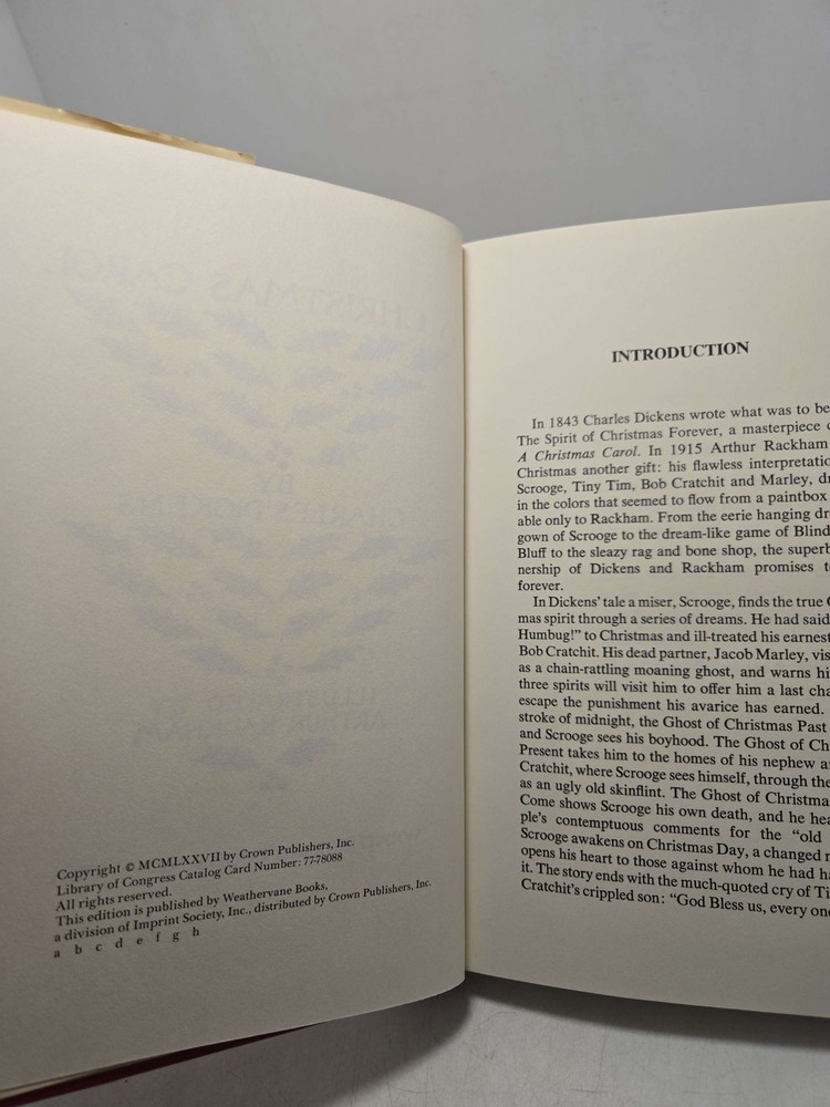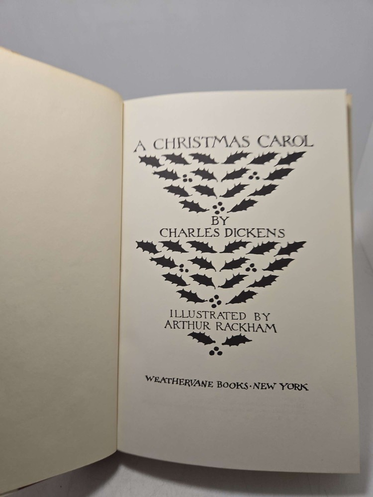 A Christmas Carol Illustrated by Arthur Rackham by Dickens, Charles Published by Weathervane Books, One Park Avenue, New York, 1977 A Christmas Carol by Charles Dickens, illustrated by Arthur Rackham, is a timeless classic that captures the true spirit of Christmas. This beautifully illustrated edition brings the heartwarming story to life with Rackham's intricate and detailed illustrations. Follow the journey of Ebenezer Scrooge as he is visited by the ghosts of Christmas past, present, and future, and learns the true meaning of generosity and compassion. This stunning edition of A Christmas Carol is perfect for readers of all ages who want to experience the magic of the holiday season. Add this enchanting tale to your collection or give it as a thoughtful gift to spread the joy of Christmas. 7.18 Most books in our shop are vintage, unread items that may have signs of shelf wear, etc. Please view products photos prior to purchasing as every item has photos of item exactly as they are. We will not accept returns based on condition because the photos show the items as they are. If you have questions or would like more product photos, please message us prior to purchase, we are happy to assist. Thanks for checking us out!