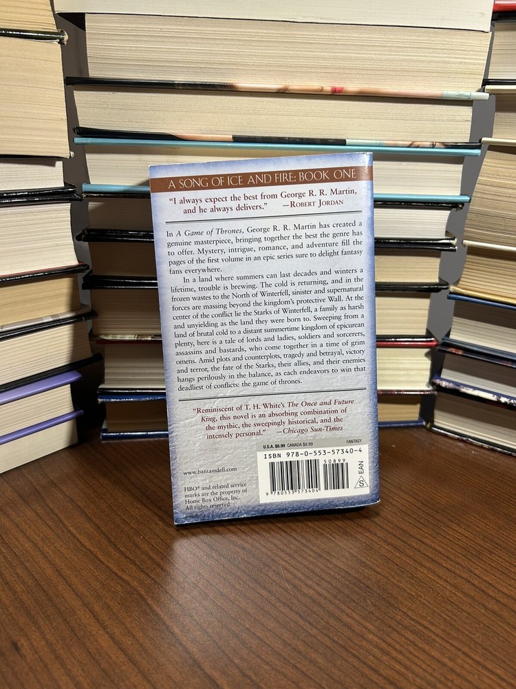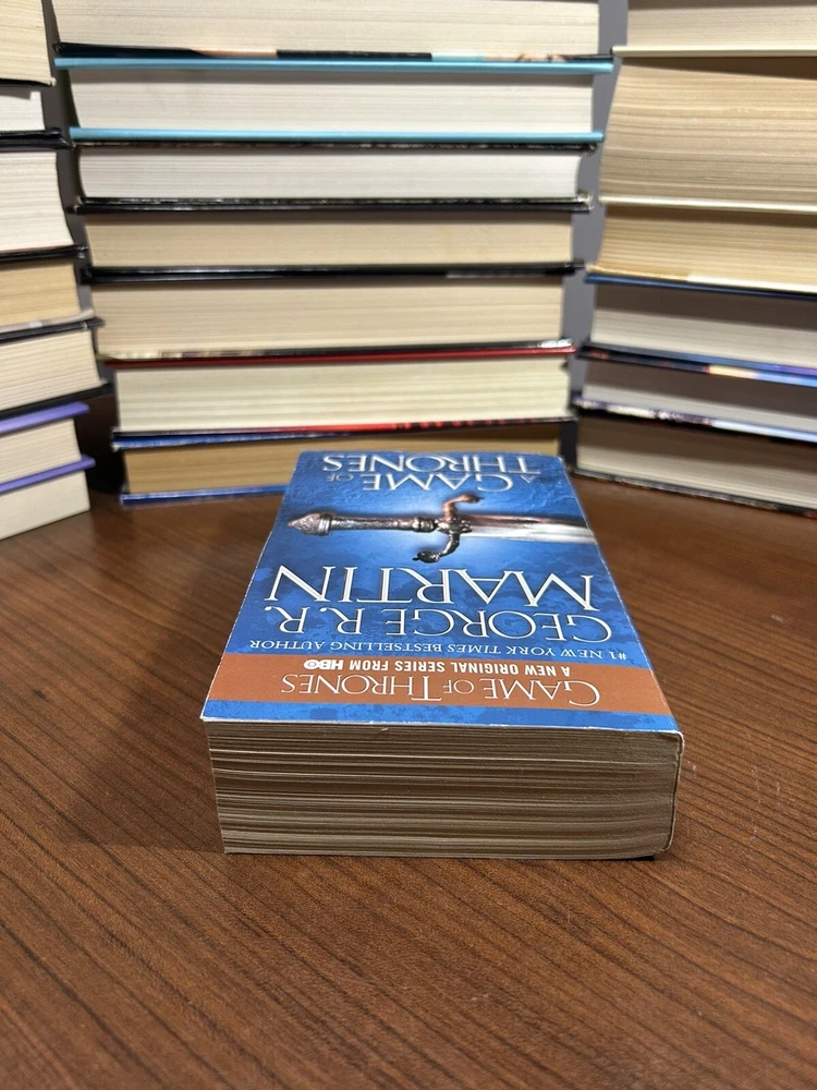 ***BUY MORE & SAVE*** ***Combined Shipping Offered on all sales, just send a request for your total order. All books are shipped using standard USPS Media Mail Rates*** **Photos are actual photos of the book you will receive. Please review the photos for the condition of the book. Please ask any questions prior to purchasing.** Smoke free home! Conditions: Brand new: The book is new, unread, and unused in perfect condition with no missing or damaged pages. Like new: The book looks new but has been read. The cover has no visible wear, and the dust jacket (if applicable) is included for hard covers. It has no missing or damaged pages, no creases or tears, and no underlining/highlighting of text or writing in the margins. It may have very minimal identifying marks on the inside cover as well as very minimal wear and tear. Very good: The book does not look new and has been read but is in excellent condition. There is no obvious damage to the cover the dust jacket (if applicable) is included for hard covers. There are no missing or damaged pages, no creases or tears, and no underlining/highlighting of text or writing in the margins. It may have very minimal identifying marks on the inside cover as well as very minimal wear and tear. Good: The book has been read but is in good condition. It has very minimal damage to the cover, including scuff marks, but no holes or tears. The dust jacket for hard covers may not be included. The binding has minimal wear. The majority of pages are undamaged with minimal creasing or tearing, minimal pencil underlining of text, no highlighting of text, and no writing in the margins. There are no missing pages. Acceptable: The book has obvious wear. It may have some damage to the cover, but its integrity is intact. The binding may be slightly damaged, but its integrity is still intact. There may be possible writing in the margins and underlining and highlighting of text, but there are no missing pages or anything that would compromise the legibility or understanding of the text. Immerse yourself in the captivating world of Game of Thrones with this first book in the A Song of Ice and Fire series by George R.R. Martin. Follow the epic tale of power struggles and battles for the Iron Throne, set in a fantasy world of magic and dragons. This mass market paperback edition with 864 pages is a perfect addition to any book lover's collection, featuring a 6.8in length, 4.1in width, and 1.3in height. Published by Random House Publishing Group in 1997, the book is written in English and classified under the genres of Fiction, Science Fiction/Action & Adventure, and Fantasy/Epic. Get lost in the pages of this timeless tale, perfect for fans of gripping storytelling.