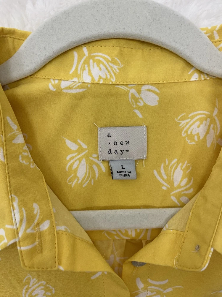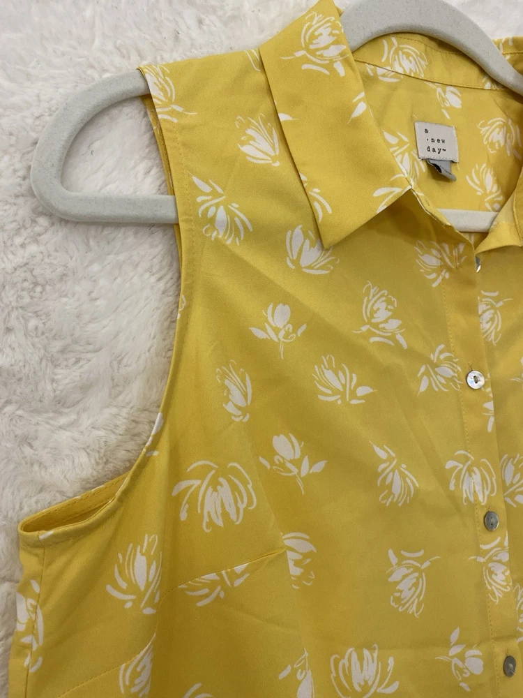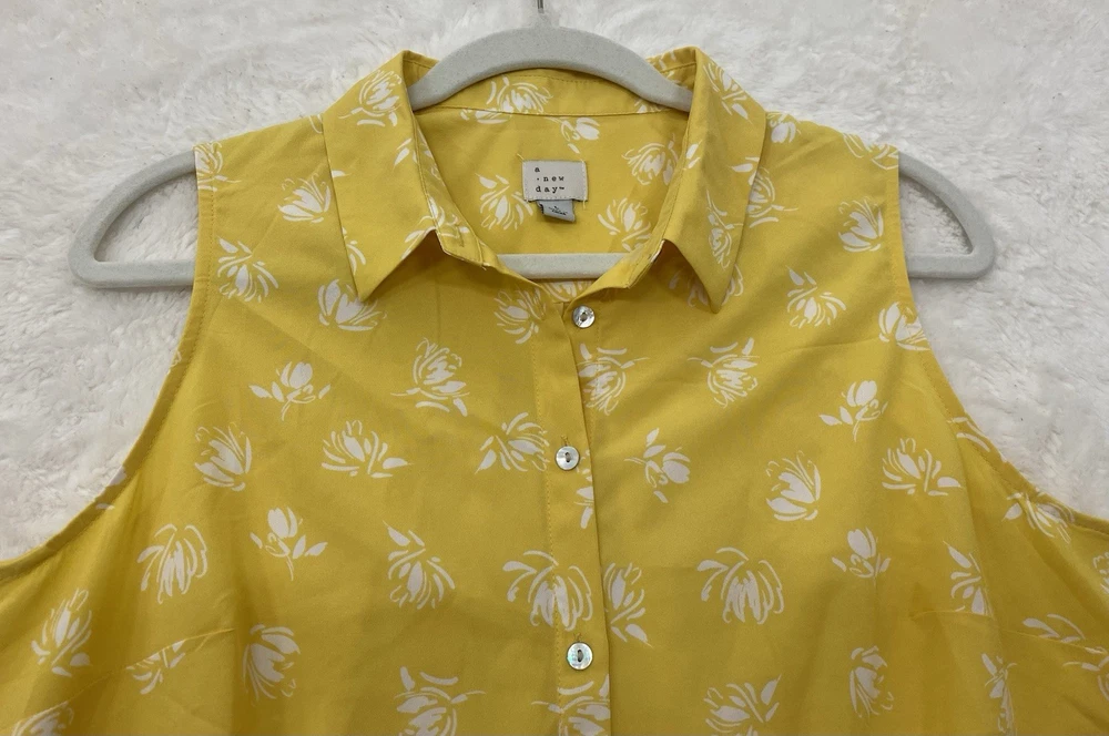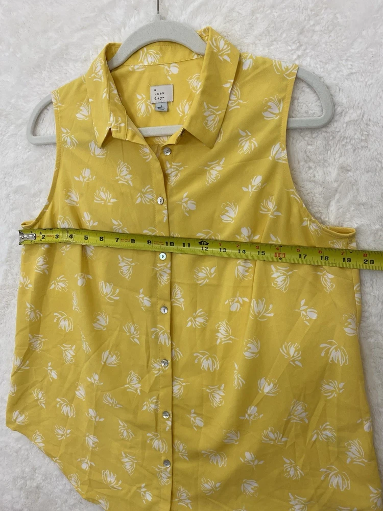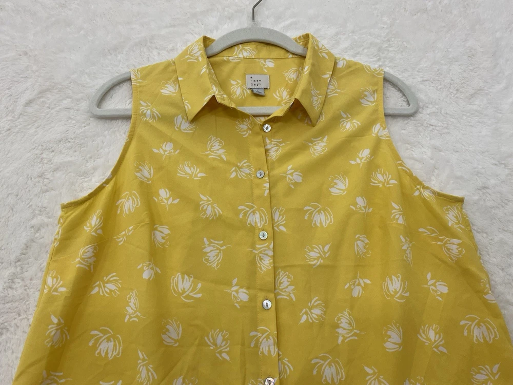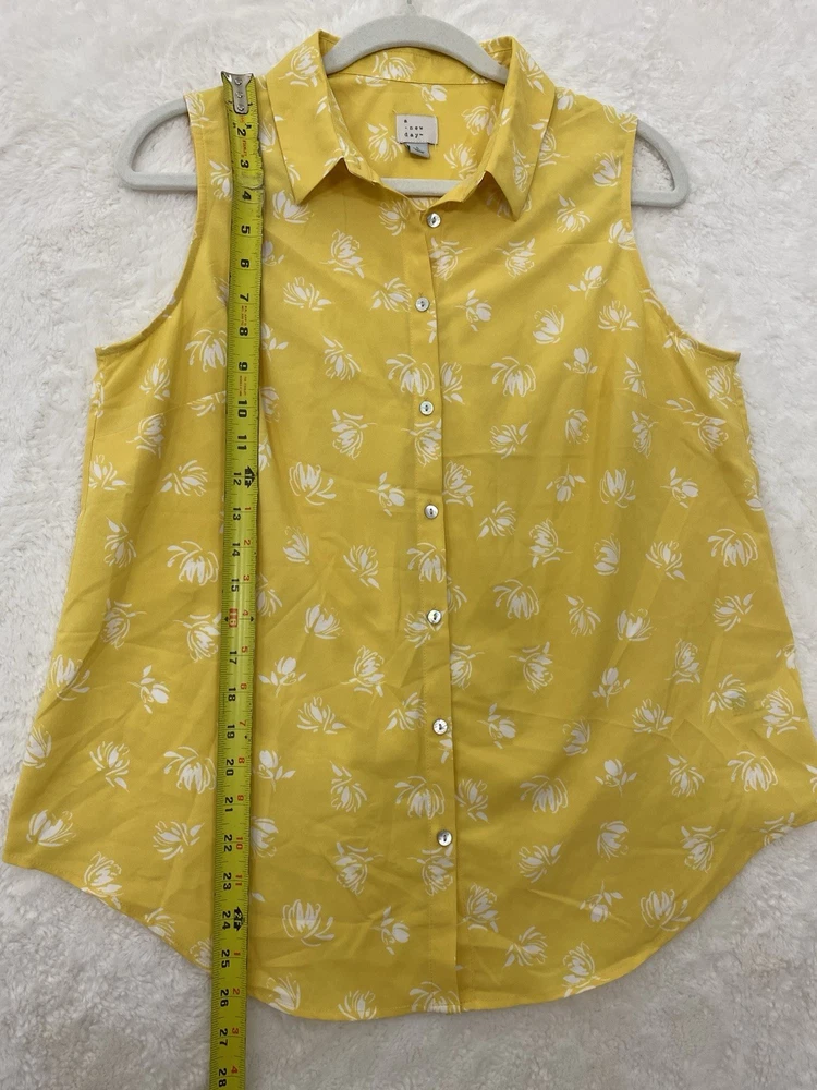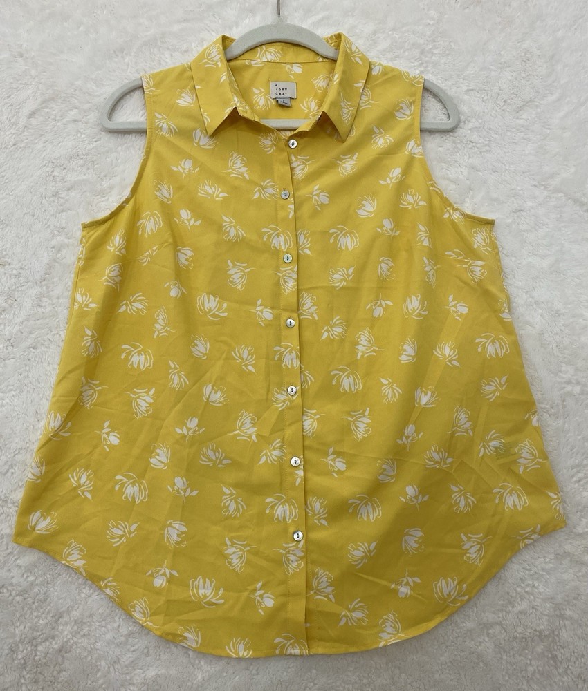 $ 7.84Apt 9 Stretch Womens XL Brown Dotted Button Collared Pleated Vneck Blouse! A6461