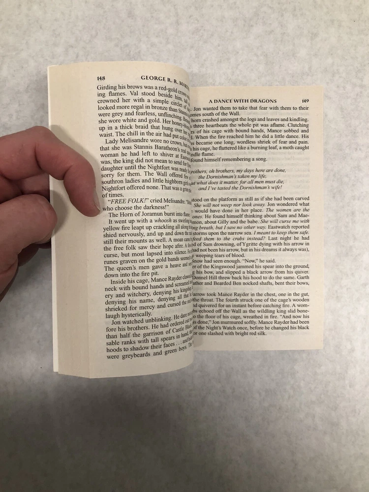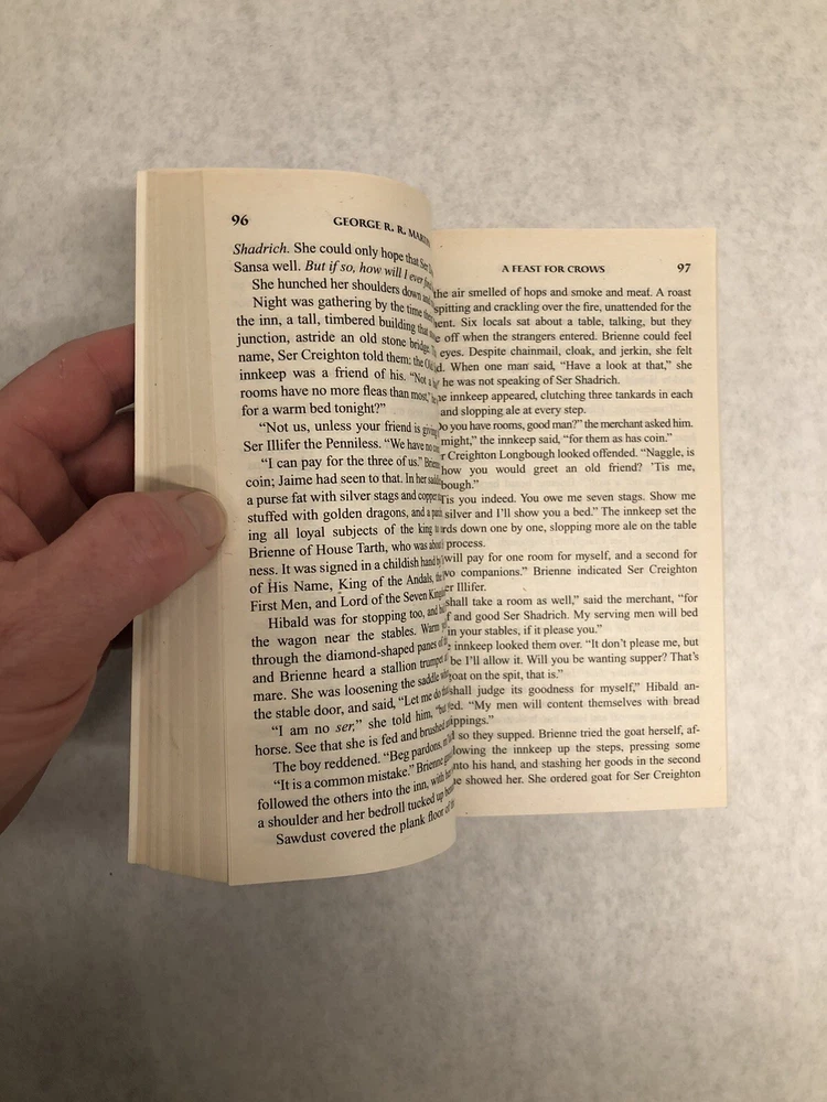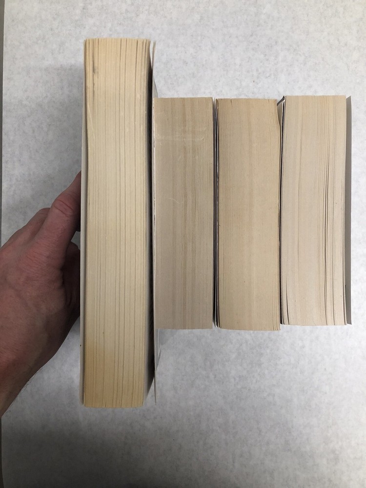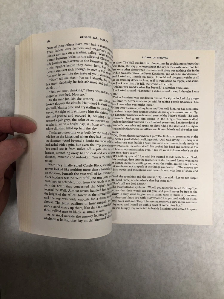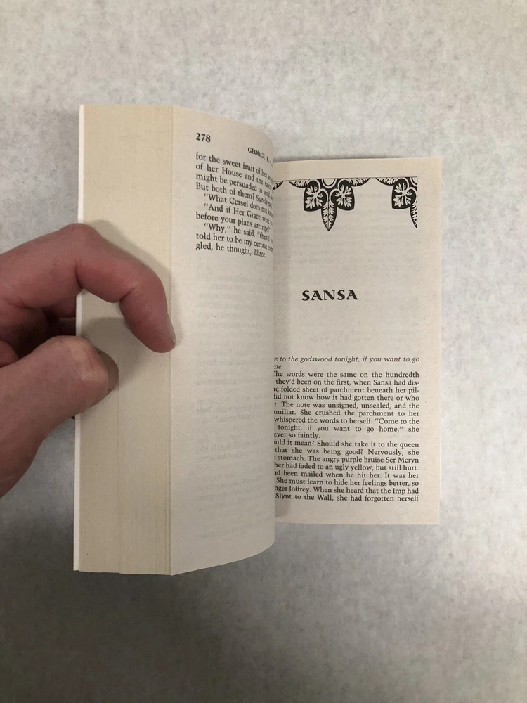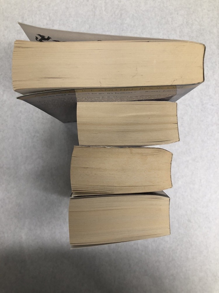 Hello and welcome! Immerse yourself in the world of Westeros with this four book lot of "A Song of Ice and Fire" series, including "Game Of Thrones," "A Clash Of Kings," "A Feast For Crows," and "A Dance With Dragons". Written by George R.R. Martin, this action-packed adventure fantasy series will take you on a journey through the seven kingdoms. The books come in a paperback format and are written in English. They are perfect for adults and make a great addition to any fantasy or action book collection. Whether you're a fan of the books or the TV series, this is a must-have for any "Game of Thrones" enthusiast. The books are in pretty nice shape overall. They are all in good condition and most have never been read at all. That being said, they have sat on the shelf for several years and have acquired a small amount of shelf wear in places such as the corners and the edges. They have also discolored on the edges of the books somewhat. The actual inside pages are in nice bright condition. There may be other light wear or marks as well. From a pet free, smoke free home. Please examine the pictures and feel free to ask me any questions. Penny is shown for scale and is not included. Thanks for looking!
