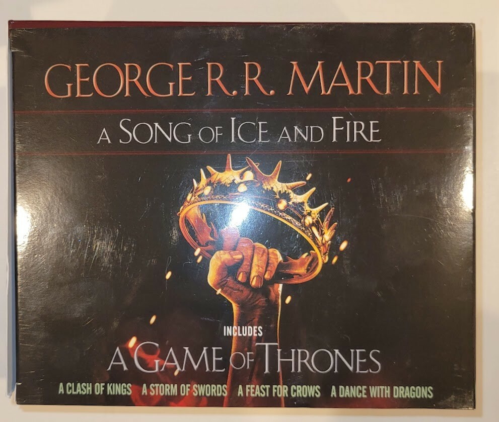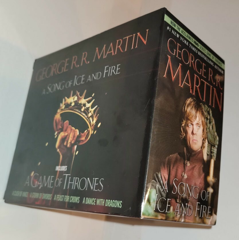 A Song of Ice and Fire Series George R. R. Martin's a Game of Thrones 5-Book Box books have never been read - box cover has rip on seam that has been repaired and barely noticeable You are purchasing the item shown in the photos so pleasetake a look and make sure it fits all of your needs. I will always combineshipping. When all listings are paid for I will pack and mail and refund yoursavings via original payment method. Some larger and/or breakable items can'tbe shipped with other items because of fragility or that it can actually makeshipping higher because of the size of the box. All electronic items are testedprior to listing and will be checked again prior to packing to ship once a salehas been made. Batteries are removed prior to shipping. We love taking fairoffers so don’t hesitate to make us an offer. Thanks for taking a look at mylistings. If you have any questions please let me know.