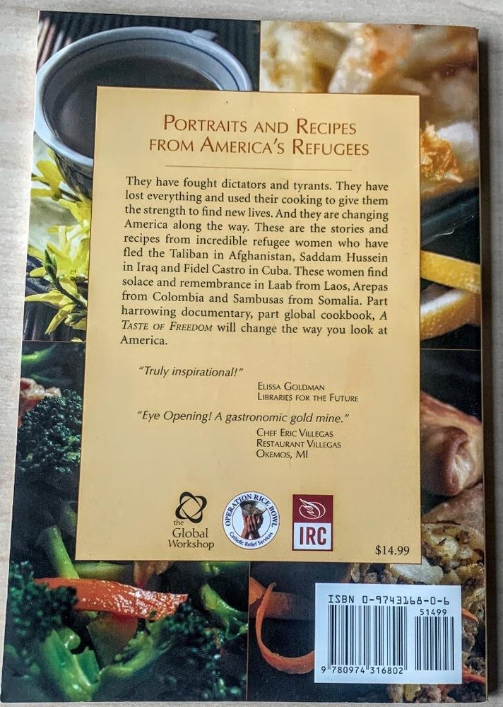 A Taste of Freedom: A Culinary Journey with America's Refugees By: Vincent Delgado, Jeremy Herliczek, Becky Shink Global Workshop / 2003 Paperback / 93 pages Stories and recipes from those who fled their countries for a better life in America. Includes food and cuisine from Kosovo, Somalia, Sudan, Cuba, Afghanistan, Colombia, Kurdistan, and Laos. Very good used condition Please see all photos 30-Day Refund, Buyer Pays Return Postage Pictures sell! Auctiva offers Free Image Hosting and Editing. The complete eBay Selling Solution. Track Page Views With Auctiva's Counter