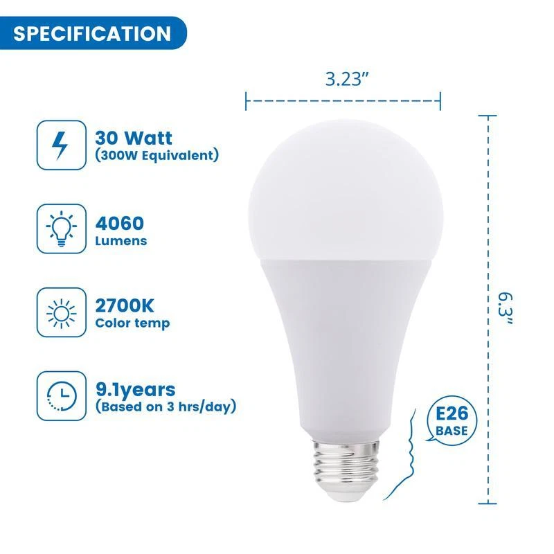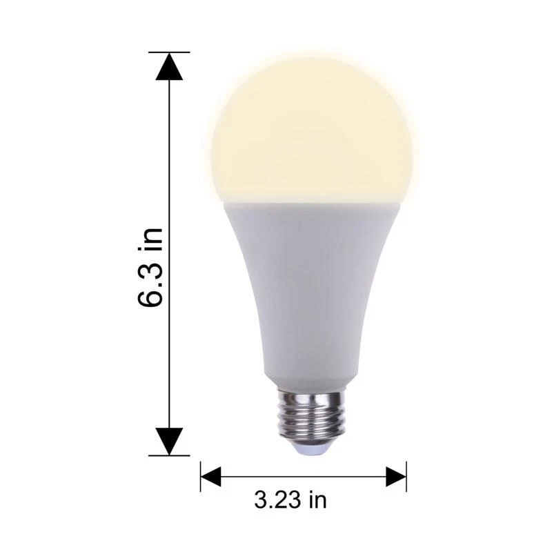Foldable Weight Bench Press Home Gym Incline Decline Sit-up Bench Assemble-Free 84.27 USD 89.65 USD Free shipping 6% off 28" Firewood Split Wood Load Heavy Pick Tool Rounds Sturdy Lift Drag Lightweight 43.02 USD 45.77 USD Free shipping 6% off Gel Fuel Cans 24-Pack Gelled Isopropyl Alcohol for Indoor or Outdoor Fireplaces 126.68 USD 134.77 USD Free shipping 6% off Penny Candy Glass Jar with Lid Cookie Jar 1 Gallon Food Storage Jar for Snacks 11.09 USD 12.17 USD Free shipping 9% off Wooden Gun Rack Display with Holder Floor Standing Indoor Rack Storage Garage 79.2 USD 84.26 USD Free shipping 6% off 8 Ounce Ball Peen Hammer Wood Handle Automotive Tool Drop Forged Steel New 8.33 USD 9.15 USD Free shipping 9% off 35"Octagonal Fire Pit Outdoor Fire Pit Wood Burning Firepit Bonfire Backyard US 112.45 USD 119.63 USD Free shipping 6% off Sunflower Coarse Kernels Hearts No Waste No Mess Bird Seed 50 Pounds 163.23 USD 173.65 USD Free shipping 6% off 5-Panel Baby Gate Metal Safety Playpen Fireplace Fence for Toddler Pet Dog 30" H 129.31 USD 143.97 USD Free shipping 10% off 12 in Aluminum Nonstick Fry Pan Soft-Touch Handle Perfect Sauteing Cooking New 25.37 USD 26.99 USD Free shipping 6% off Ergonomic Gaming Chair Office Computer Executive Chair Leather Desk Chair Blue 130.8 USD 145.62 USD Free shipping 10% off Makeup Vanity Desk W/ Mirror Lights Storage Shelves 4 Drawer Charging Station US 202.21 USD 224.97 USD Free shipping 10% off A23 bulbs are a type of LED light bulb that belongs to the A-line/pear/tube category. They are the largest of the A-shaped bulbs with a diameter of 2. 875 inches. A23 bulbs are typically used in larger fixtures and commercial applications that require a higher light output. The Great Value A23 LED Light Bulb delivers exceptional brightness and quality, with a super bright output of 4060 lumens and a warm white color temperature of 2700K. It uses only 30 Watts of energy, but is equivalent to a 300 Watt regular incandescent bulb, saving you up to 90% on your electricity bill. With an annual energy cost of $3. 61, it lasts 10 times longer than traditional bulbs. The A23 bulb with E26 standard medium base makes it compatible with most standard sockets and fixtures, so you can easily install it in any place of your house that needs bright lights, such as the front door, garage, workshops, hallway, dining room, living room, bedroom, or some restaurants and bars. The Great Value LED Light Bulb is a cost-efficient and eco-friendly choice for your lighting needs. Great Value A23 LED light bulb 1 Pack 4,060 lumens, super bright E26 standard medium base 30 Watts power consumption Equivalent to a 300W incandesent bulb 2700K warm white light 10,000 hours lifespan Non-dimmable, do not user with dimmer switches Most frequently used in larger fixtures, big rooms, large areas and commercial applications that require a higher light output You may also like 16W Starlight Headliner Kit 500 Piece Twinkle 0.03in*9.8ft/0.75mm*3m for Car 90.35 USD 96.12 USD Free shipping 6% off