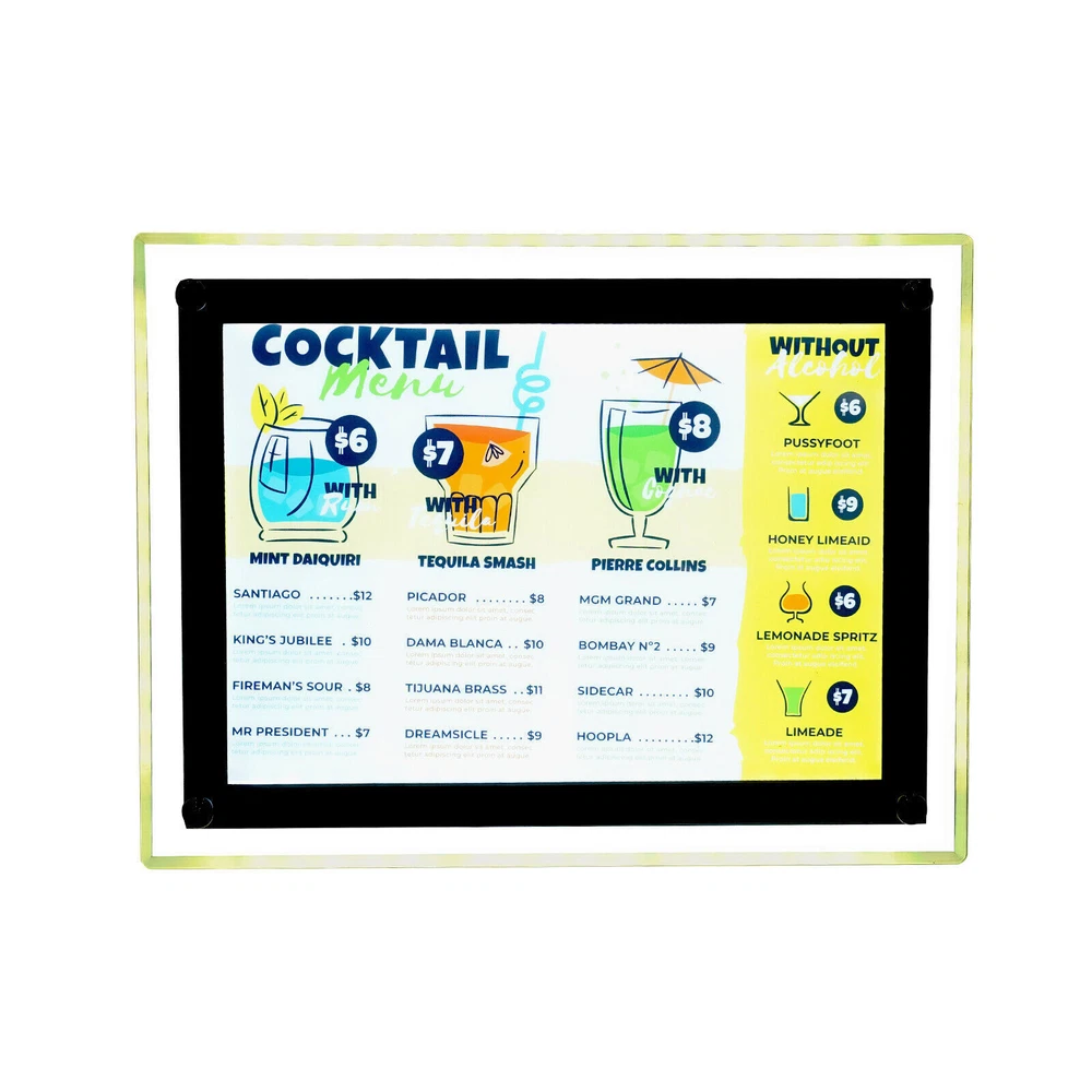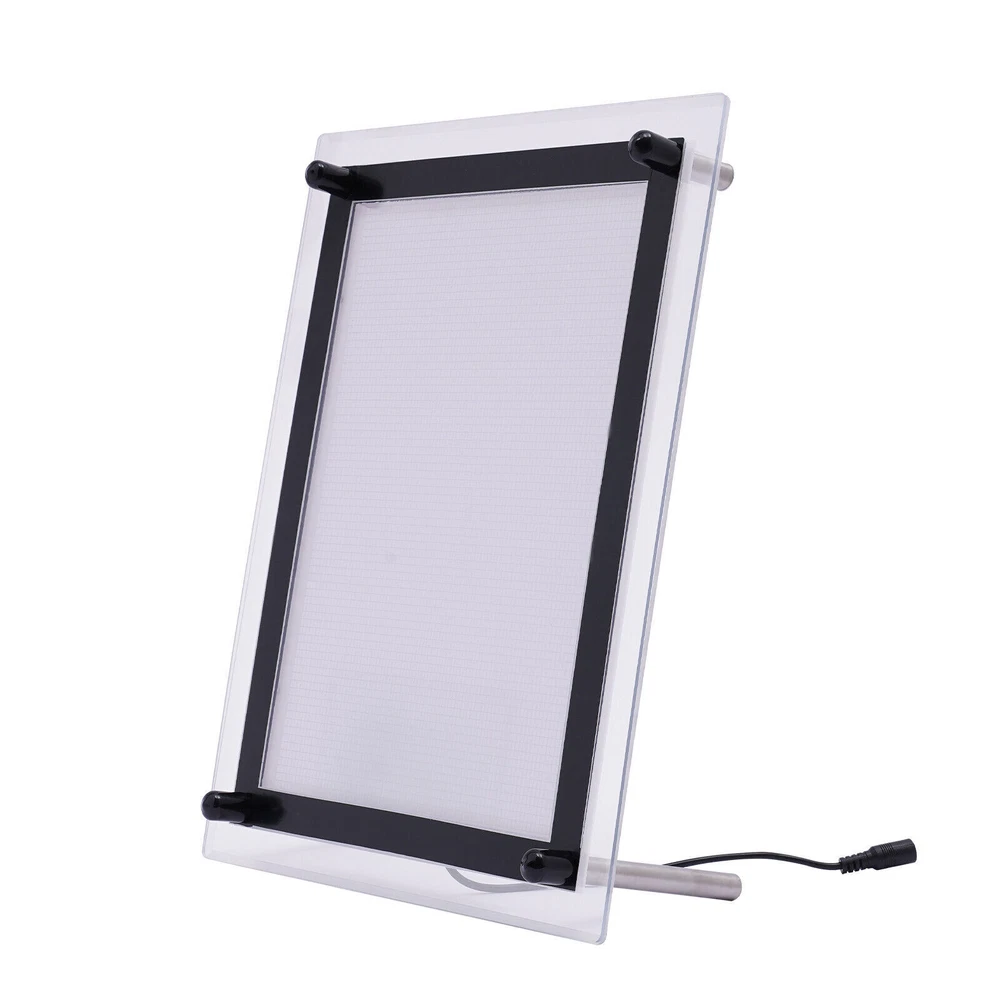 ??Package Included?? 1 * LED Backlit Poster 1 * Adapter 1 * Connection Cable 1 * Remote Control(Battery Included) 1 * English Manual All Accessories for Installation A4 LED Light Box Poster Frame Indoor Advertising Illuminated Projecting Sign Description A4 LED Light Box Poster Frame Indoor Advertising Illuminated Projecting Sign Description Our LED backlit poster is ideal for commercial promotions and attracting attention. Its magnificent artwork helps you deliver compelling promotional messages that will drive more traffic to your shopping center or event. The simple poster change makes it easy to use and quick to master even for novices. This would be the ideal display board to replace a conventional chalkboard! Key Features ①Sturdy and Durable ✔️ : This product is mainly made of iron and acrylic, with high hardness, high wear resistance performance, and long service life. The chrome-plated hardware screws have anti-corrosion and anti-rust properties, thus enabling the product to be assembled more tightly and firmly. ②Powerful Tool ✔️ : With this eye-catching poster, which lights up your message like a neon sign and attracts the attention of customers/viewers day and night, your shop will have more traffic. It is ideal for commercial promotion and attracting attention. You can also let your favorite movie posters shine in the new light at all times with this amazing backlit frame. It will help you add a unique touch to your bedroom and show everyone your elegant attitude toward life. ③ Excellent Vision ✔️ : The large size of the display panel (11.3*7.87 inches) can give you an ultra-wide visual experience. The design of the scribing light guide plate makes it have a high color rendering and uniform brightness. At the same time, the use of RGB color LED lights can also bring you a richer color viewing experience. ④ Versatility ✔️ : You can adjust the mo de(Flash, Strobe, Fade, Smooth), speed, and light(16 colors) y ou want by using the remote control according to the usage environment and thus making your billboard more unique. ⑤ Stylish Appearance ✔️ : The clear edges outside the black frame present a crystal-like and modern texture a nd the colorful lights make it more technological. It is not only a practical billboard but also an ideal decoration. ⑥ High Stability ✔️ : The two thickened extension bars at the bottom make the produc t stand stably on the bar counter, thus providing you with a more stable display. ⑦Easy to Store ✔️ : The compact size (11.69*8.27 inches), ultra-thin thickness, and removable stand design make it easy to store in a small drawer. ⑧User-friendly Design ✔️ : You only need to unscrew the four fixing screws to change the poster at will, so even a novice can quickly master how to use it. In addition, the simple product structure, complete installation parts, and English manual can help you to quickly and accurately install it. It also has two display methods, standing display and wall display, providing a variety of ways to display your posters. ⑨Energy Saving ✔️ : High-quality energy-saving LED lights are up to 85% more energy efficient than halogen lights. The low energy consumption(18W) makes it consume less electricity but has a high brightness output that can save you money on your electricity bill. Details Wire Protection Cover: The wire protection cover with an opening at the bottom effectively prevents rainwater from entering, so you can use it outdoors with confidence. Rounded Corners: Compared with square corners, rounded corners design can effectively protect your skin from accidental bruises, thus providing you with a higher level of safety. Application This product is very suitable for movie theaters, promotions, retail stores, restaurants, art displays, trade shows, banks, hospitals, libraries, counters, offices, companies, menu boards, jewelry stores, hotels, studios, etc. for exhibition/advertising/decoration. Specification Material: Iron, Acrylic, Hardware Color: Black, Clear Process: Chrome Plated Assembly Required: Yes Shape: Rectangular Style: Modern Mounting Type: Wall Mount Frame Type: Poster Frame Charging Method: Power Cord Plug Standard: US Standard Light Source: RGB LED(Included) Power Consumption: 18W Working Temperature: -20~60℃/-4~140℉ Output: Three CMOS Drain+Open Output Max. Load Current: 2A Each Color Supply Voltage: DC 12V Connecting Mode: Common Anode Charger Voltage: 110-240V 50/60Hz 1.0A Charger Output: 12V 2.0A Connection Cable Voltage: 12-24V Applicable Paper Size: A4 Product Size: 37.7*29cm /14.8*11.4 in Display Size: 28.7*20cm /11.3*7.87in Gross Weight: 2kg/ 4.41 lbs Net Weight: 1.8kg/ 3.97 lbs Package Size: 45*25*6 cm/ 17.72*9.84*2.36 in Package Included 1 * LED Backlit Poster 1 * Adapter 1 * Connection Cable 1 * Remote Control( Battery I ncluded) 1 * English Manual All Accessories for Installation Notes This package does not include the advertisement poster. Products with electrical plugs are designed for use in the US. Please check compatibility before purchasing. Please read the operating manual completely before use. And pay particular attention to the safety instructions included. Please allow the slight color difference caused by the shooting light and the 1-3 cm error due to manual measurement, and make sure you do not mind before ordering. Welcome to highcredit1188 ~ ?? If you have any question , please contact us , and we will reply you as soon as possible. Welcome to highcredit1188 ~ ?? If you have any question , please contact us , and we will reply you as soon as possible. Payment Delivery details Terms of sales About us Contact us Payment We accept ebay payment 。 Fees such as import duties, taxes are not included in the item price or shipping costs. These charges are the buyer's responsibility. Delivery details Shipping: 2-9 working days to: USA Terms of sales We maintain high standards of excellence and strive for hundred percent customer satisfac