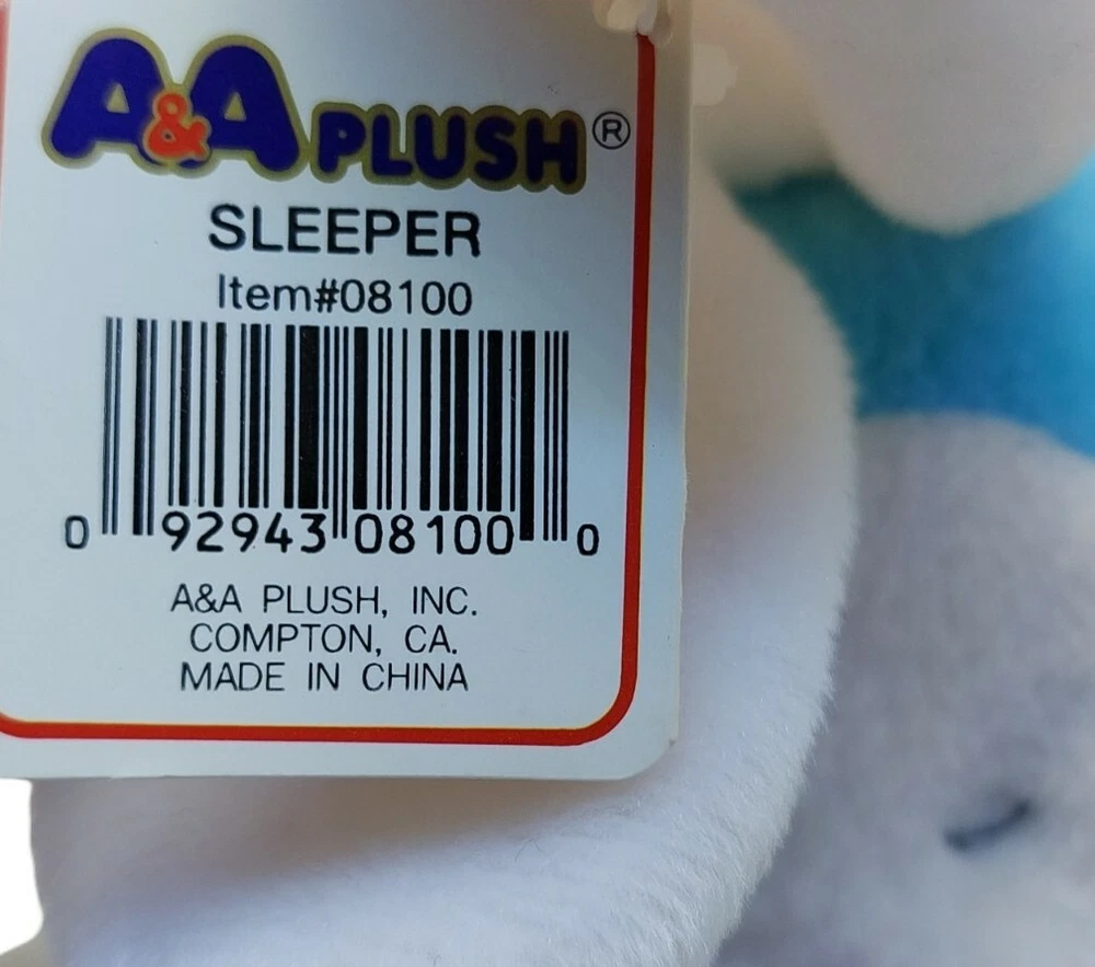 A&A Plush Bunny Rabbit "Sleeper" white bunny in blue outfit sleepy 6".