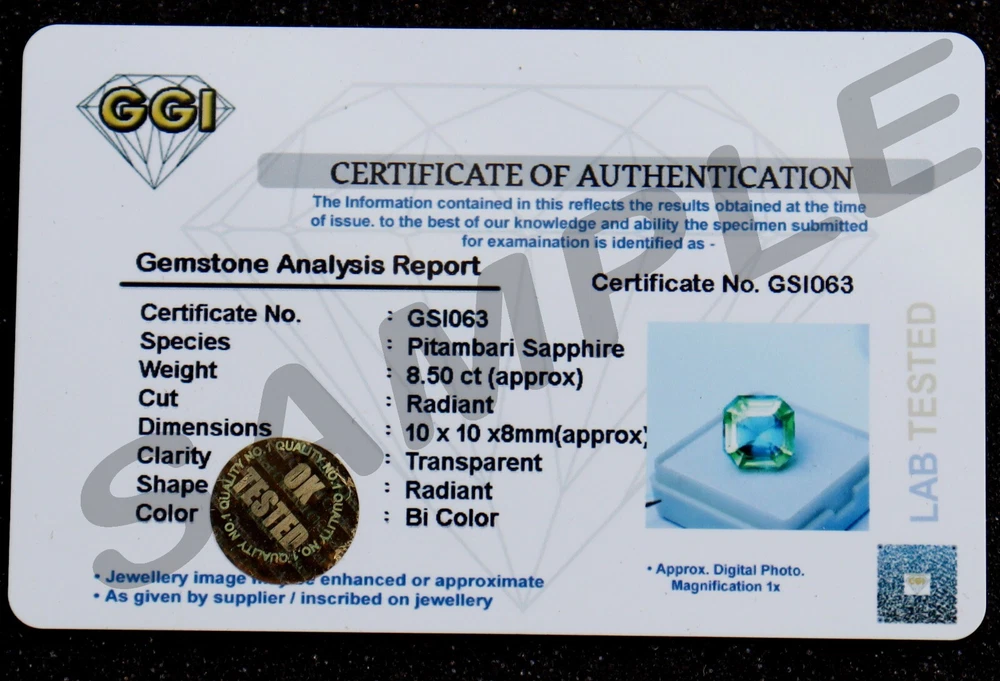 Came with an ID card, surprise! They refunded me some when shipping was duplicated for every stone. This is a legitimate seller who will help. All of my stones arrived undisturbed. Stone heat tested as saphire.
