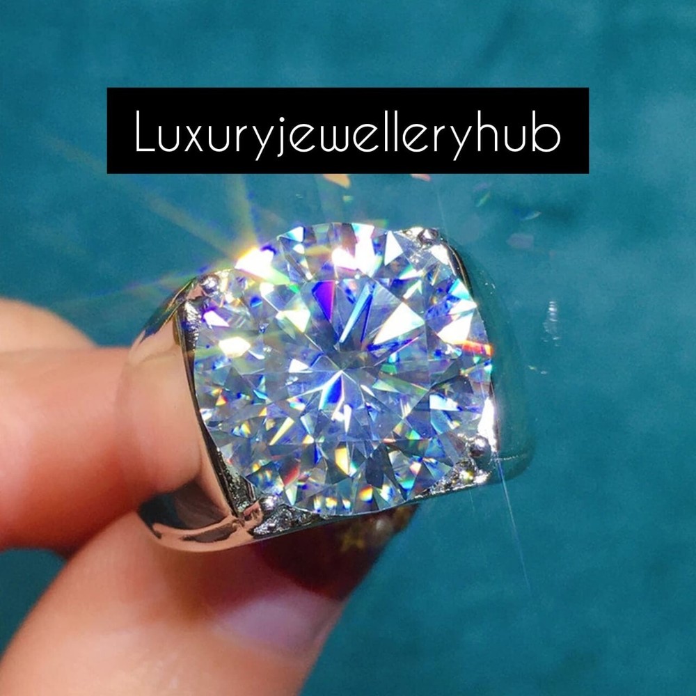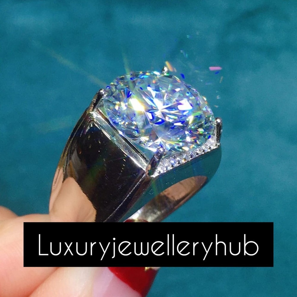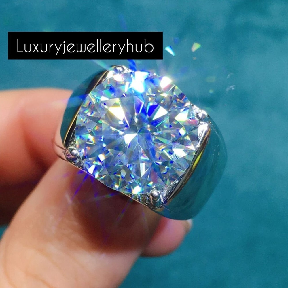 This ring features a 10*10mm Round Cut Moissanite and sterling silver finished with rhodium. Customization is available, I also can make it with (white or yellow or rose) and diamond accent stone, just feel free to contact me. TEM INFORM ATION Main Stone : M oissanite Stone Color White Stone Size 10x10 MM Stone Shape Round Metal : 925 Sterling Silver Side Stone : N/A Occasion : Wedding ,Party, Anniversary, Valentine’s Day, Daily Style : Classic Rings Type : Engagement ring, Wedding ring Item Type : Ring Plating :silver/gold/rose gold If You Have Any Questions, Please Feel Free Contact Us through eBay Message Service >>>>> If you want to make jewelry of some other design or other types please contact us <<<<< => Payment Policy We accept payment through Payoneer. All payments must be made within 4 days of purchase. For shipping charges and combine shipping charges please see Shipping & Payments tab above. Please make sure to include the correct address during checkout. We are not responsible for any wrong or undelivered addresses => Buyer Note :- The Buyer is Fully Responsible For Any Charges , Import, Custom Duties and Taxes in Buyer Country . Thank you have a nice day and good shopping. >>>>>>>>>>>>>>>>Reviews<<<<<<<<<<<<<<<<<<< Your Reviews Is Very Important And Five Star Review Is Highly Appreciated. If You Are Unhappy For Any Reason, Please Contact Us First Before Leaving Review And Allow Us T o Resolve.
