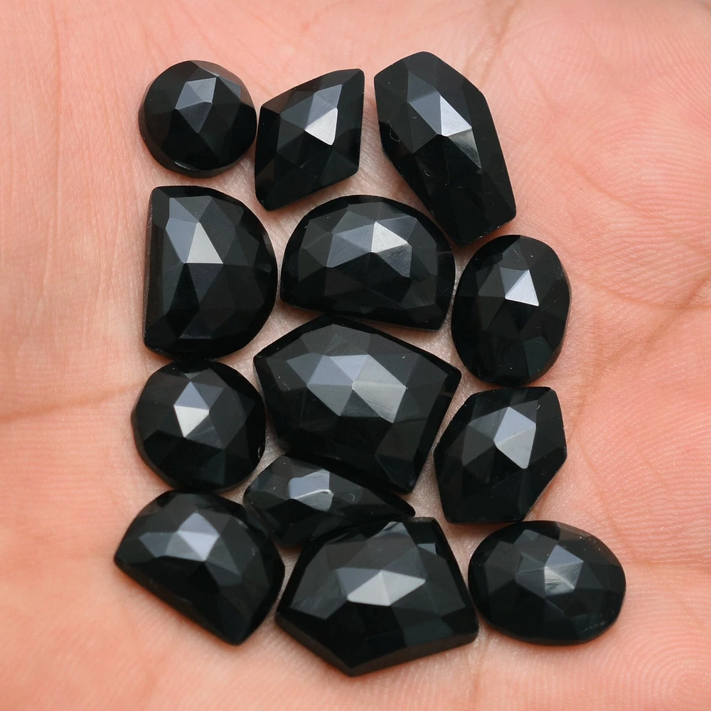 $ 19.54Natural Black Onyx Top Quality Untreated Rose Cut Gemstones Lot 8x12mm-14x23mm