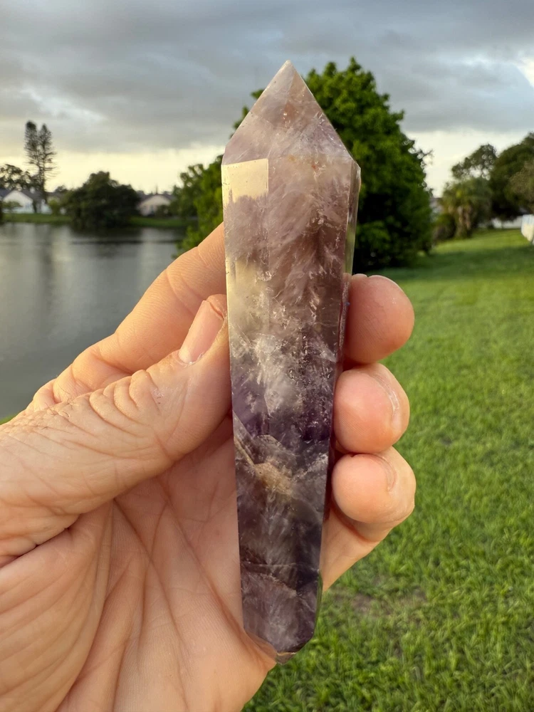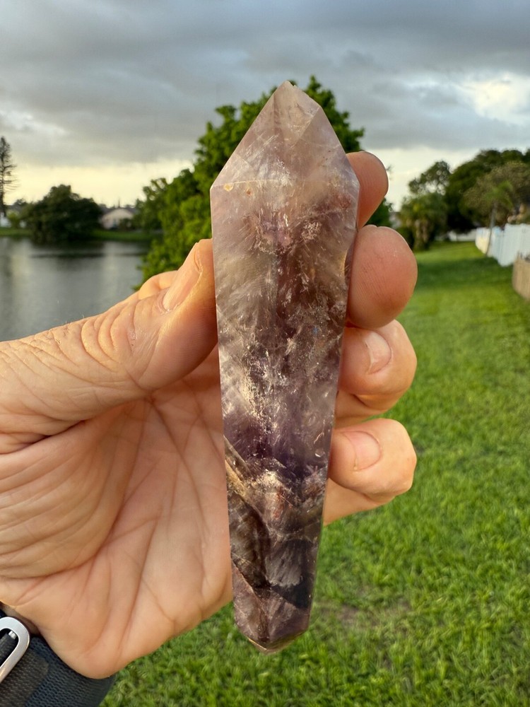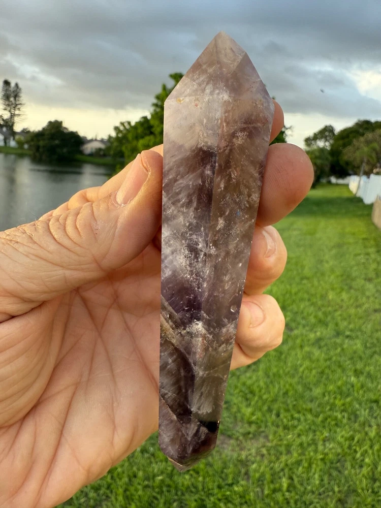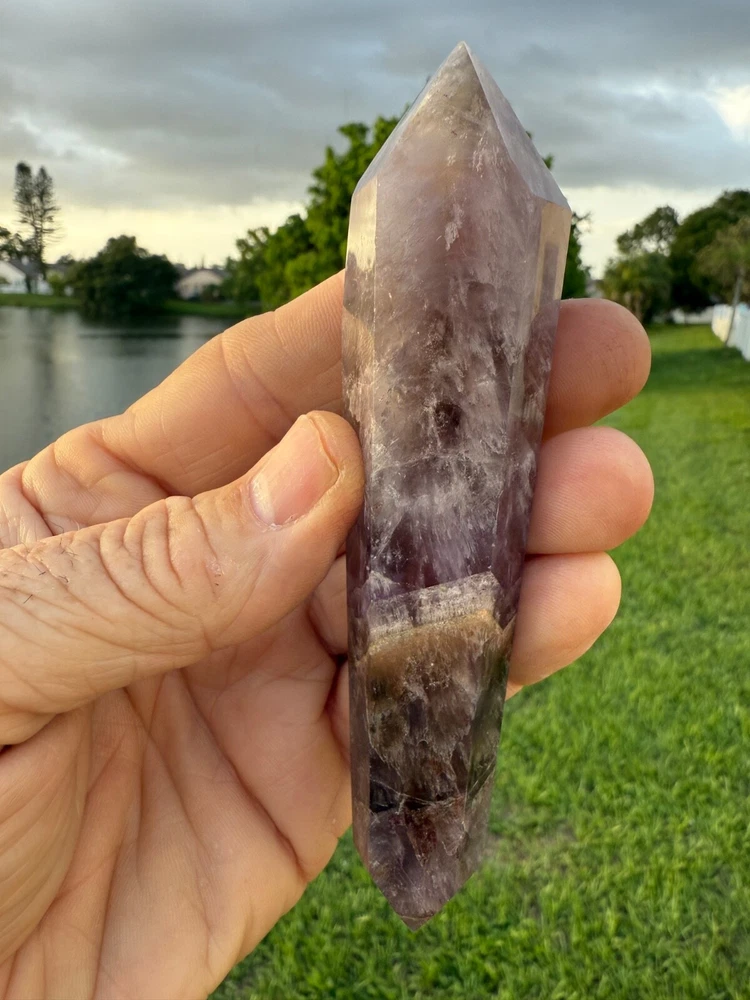 AAA Long Super Seven Melody Stone Double Terminated Point Wand 5" 114 grams Polished! Money Back Guarantee! Great for meditation. Super Seven, also known as Melody’s Stone or Sacred Seven, is primarily a crystal composed of seven minerals, including Amethyst, Clear Quartz, and Smoky Quartz. It is widely used in metaphysical and spiritual practices for its purported healing properties. Super Seven is said to balance and activate all seven chakras, from the Root to the Crown, promoting overall harmony. This makes it a popular choice for holistic healing practices.