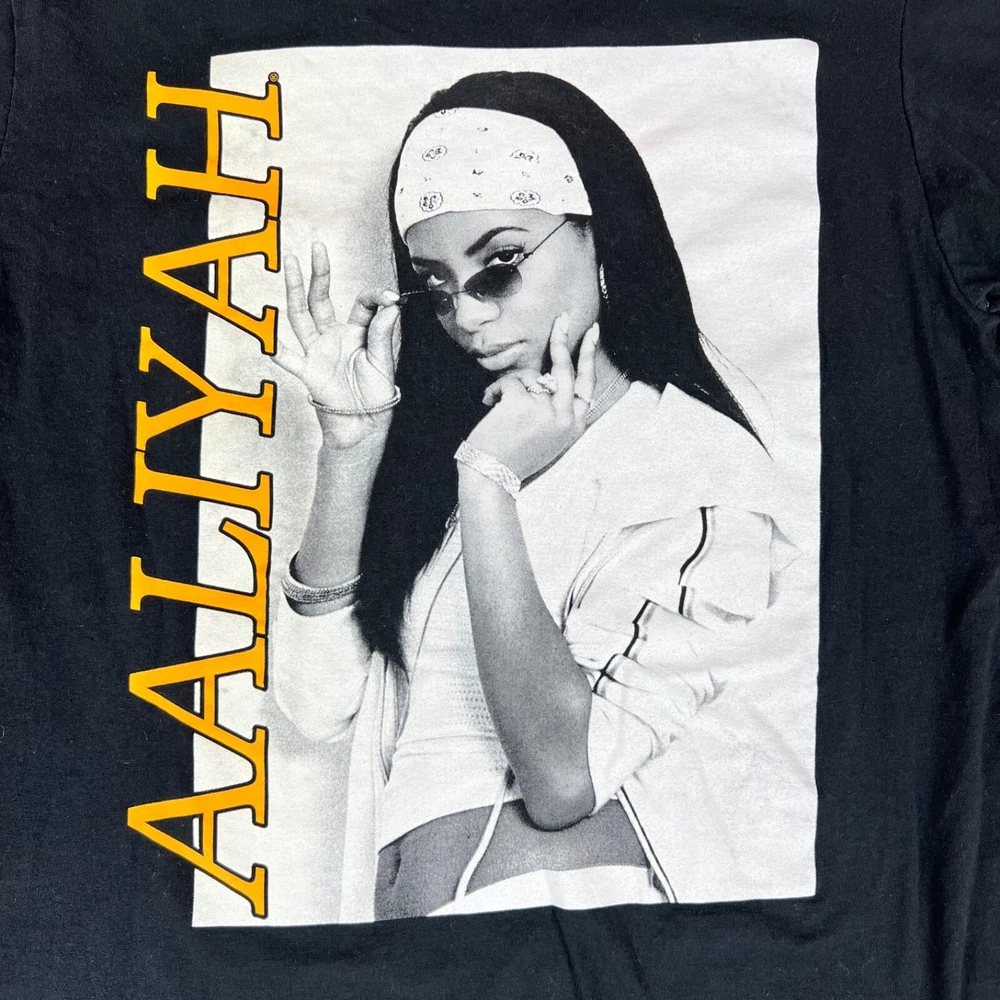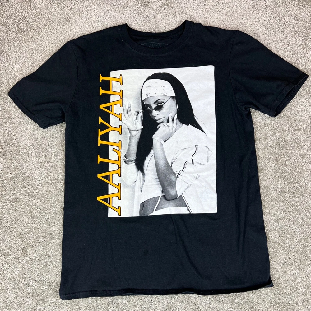 AALIYAH Black & White Portrait Graphic T-Shirt Tee Women’s Sz Med 100% Cotton Size: Medium (Approximate Measurements from seam to seam W 18.5 in x L 27 in) Measurements: Check photos above for measurements. Good preowned quality. No holes. *Please note, there is a stain on the bottom of the shirt on the front. PLEASE SEE ALL PHOTOS* Please note, item measurements are approximate. Previous washings may change the sizing. It is important to note that before purchashing, please compare the measurements provided with those of one of your existing garments for the right fit. We store our items in a pet and smoke free environment We ship daily Your satisfaction is very important to us. If you are not completely satisfied with your purchase, please give us a chance to make things right. Please note original shipping will not be refunded on refunds. Thank you.