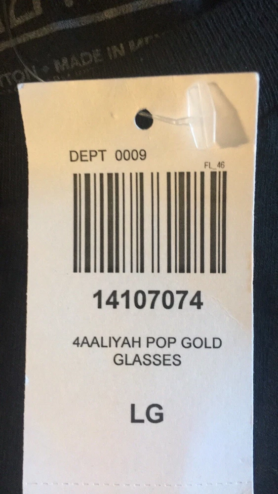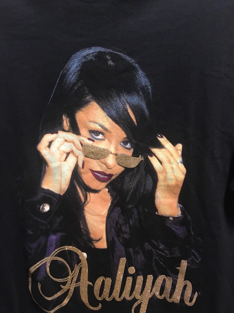 AALIYAH POP GOLD GLASSES SHIRT. Brand new & never used. Bought and put away. Size large, 199% Cotton. Hot Topic shirt. No rips, stains or tears. My loss is your gain. Very talented artist. Pick up a memory of one of the last people who really knew who R. Kelly was, when she was supposedly married to him at the tender age of 15. Please see pictures. What you see is what you get. Will come in wrap for protection. Sold as is. No returns. Thank you.