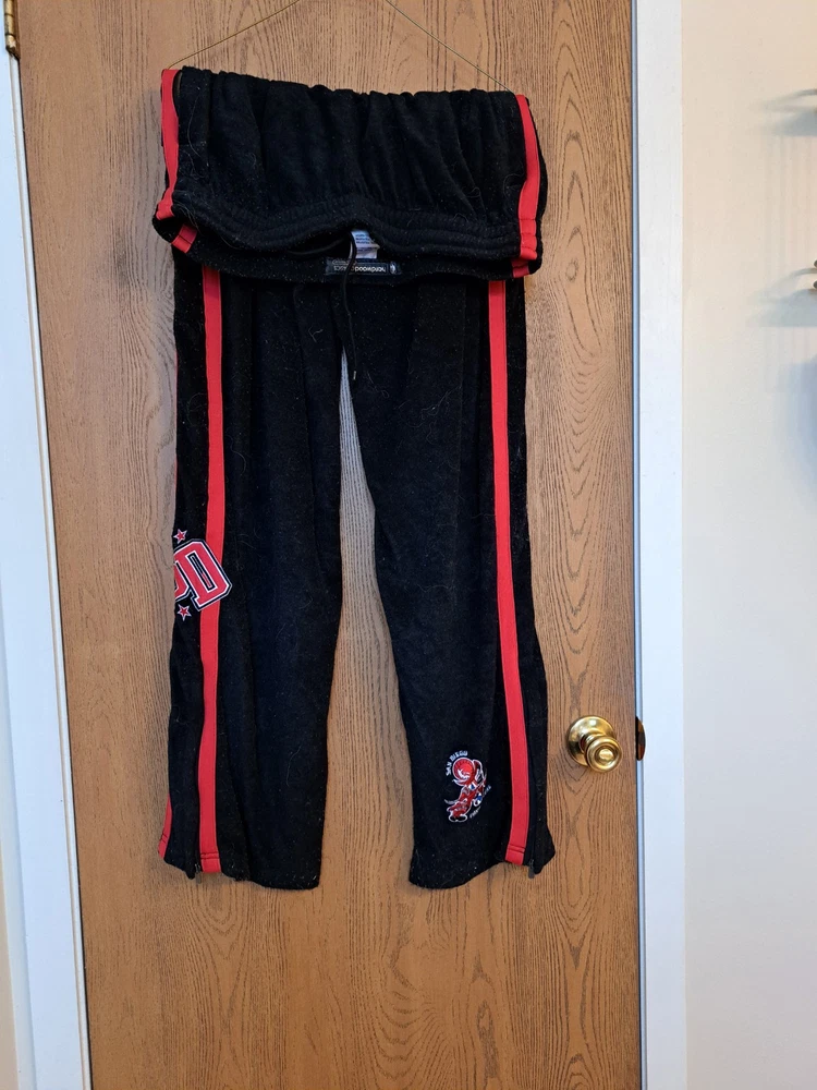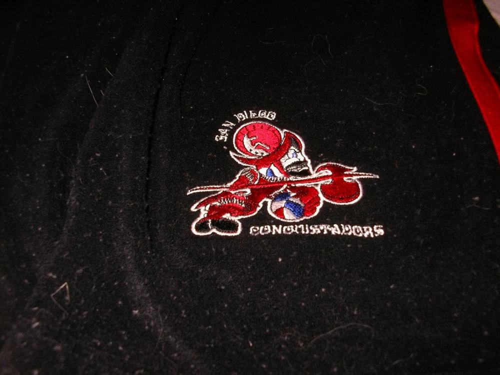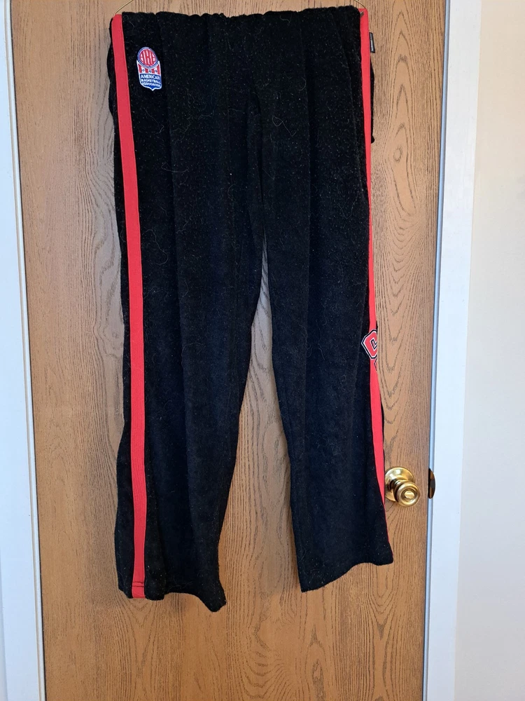 ABA SAN DIEGO CONQUISTADORS WARM-UP PANTS MADE BY REEBOK- SIZE XL. Condition is Used. PANTS ARE HEAVY POLYESTER/TERRY MATERIAL. TWO SIDE ZIP POCKETS AND ZIPPERS AT THE BOTTOM OF EACH LEG. GREAT EYE-CATCHING LOGOS.CONDITION IS GOOD TO VERY GOOD. NO RIPS,TEARS OR HOLES. THERE IS ONE MAJOR FLAW. THE PANTS HAVE BEEN WASHED SEVERAL TIMES AND THERE IS EXCESSIVE PILLING TOP TO BOTTOM ! (SEE PICS ) IF YOU ARE NOT OK WITH THAT,THEN PLEASE DO NOT BID AS RETURNS ARE NOT ACCEPTED. HARD TO FIND ITEM. ABSOLUTELY STUNNING GRAPHICS AND A VERY WARM AND STURDY WARMUP PANT.