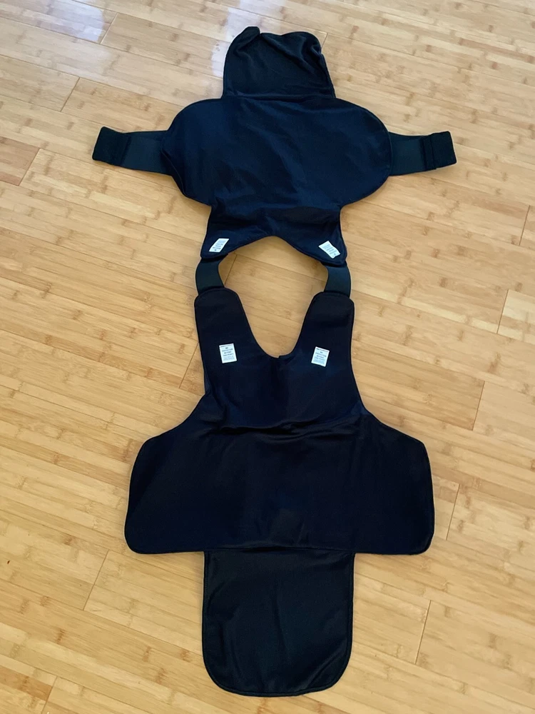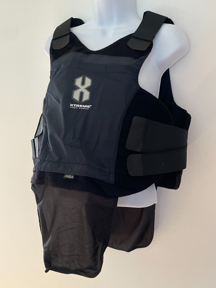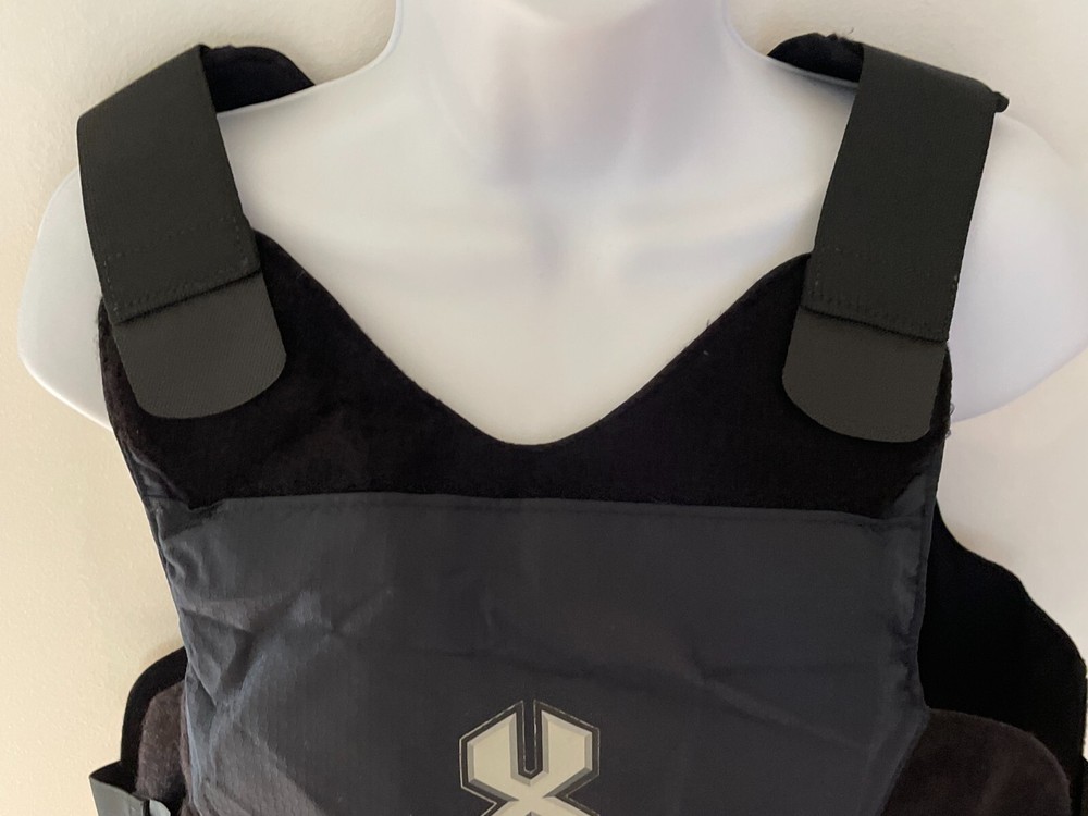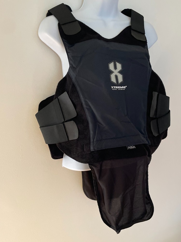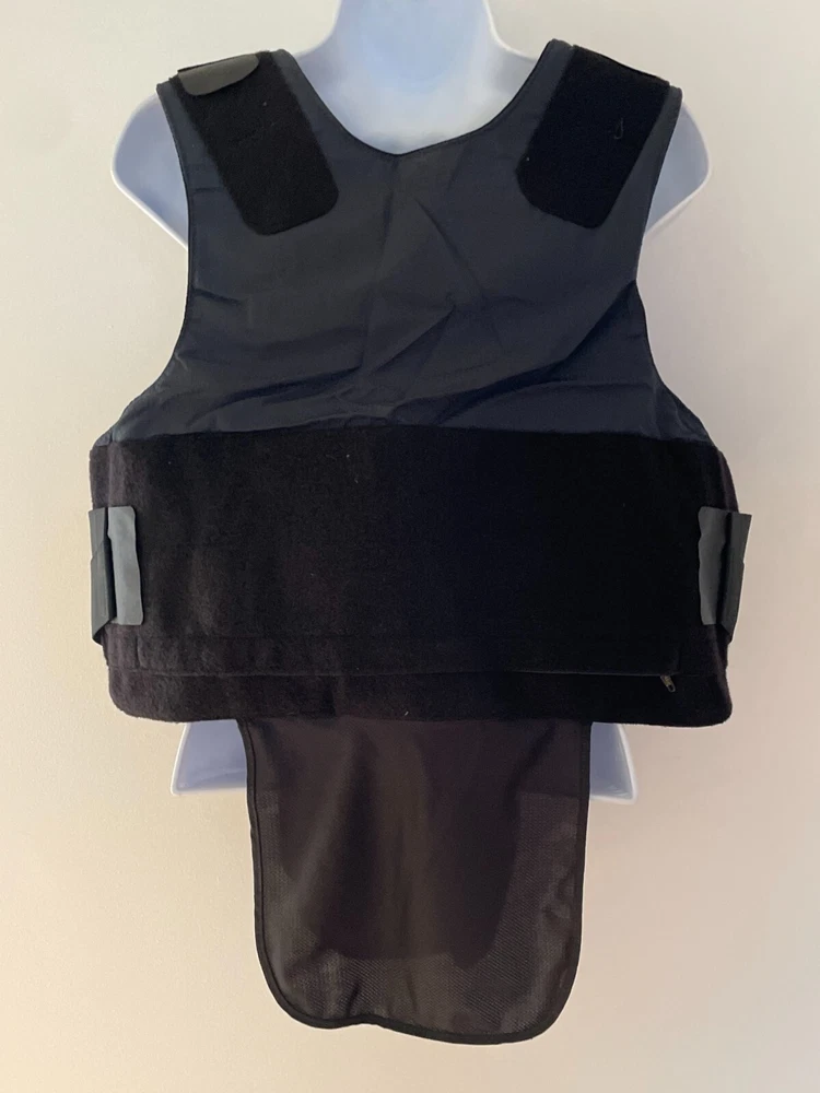 ABA Women Xtreme Concealable Tactical Armor Carrier X-Small 1712-1913 Navy Logo Bottom loading hidden zippered compartment for panels. Front panel has top loading hook and loop opening for trauma plates. 9X6 and 5X7 Back panel has internal hook and loop opening compartment for 9X6 plate. Front Panel Measurements: Sternum to hem: 12 inches Side to side at widest points: 17 inches Back panel measurements: Back pf neck to hem: 13 inches Side to side at widest points: 19 inches Girth range: 28 to 34 inches Conceal594 Armor plates not included.