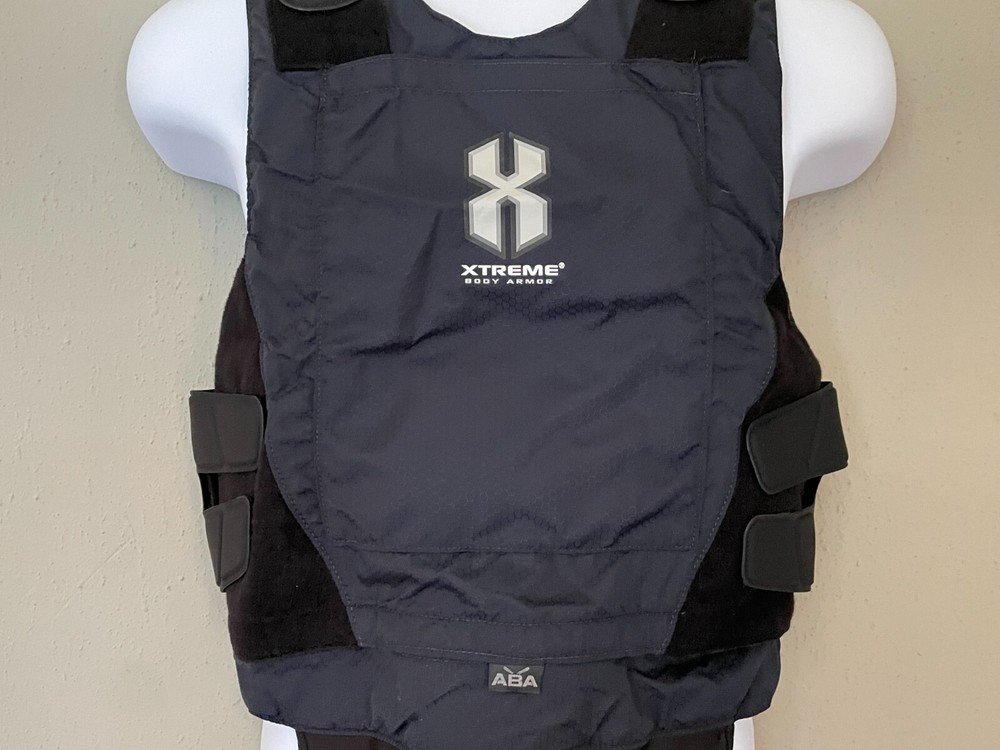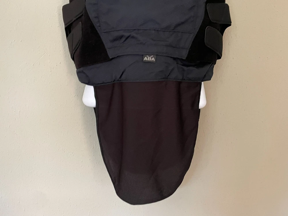ABA Xtreme Male Concealable Armor Carrier W/Logo Navy XS/Small 2014-1515 Front and back internal bottom loading hidden zippered compartment for panels. Front panel has top loading hook and loop opening for trauma plates. 9X6 and 5X7 Back panel has internal hook and loop opening compartment for 9X6 plate. Front Panel Measurements: Sternum to hem: 14 inches Side to side at widest points: 20 inches Back panel measurements: Back pf neck to hem: 15 inches Side to side at widest points: 15 inches Girth range: 26 to 32 inches PLEASE NOTE THE WIDTH ON FRONT PANEL IS DIFFERENT FROM WIDTH ON BACK PANEL. Conceal380 Armor plates not included.