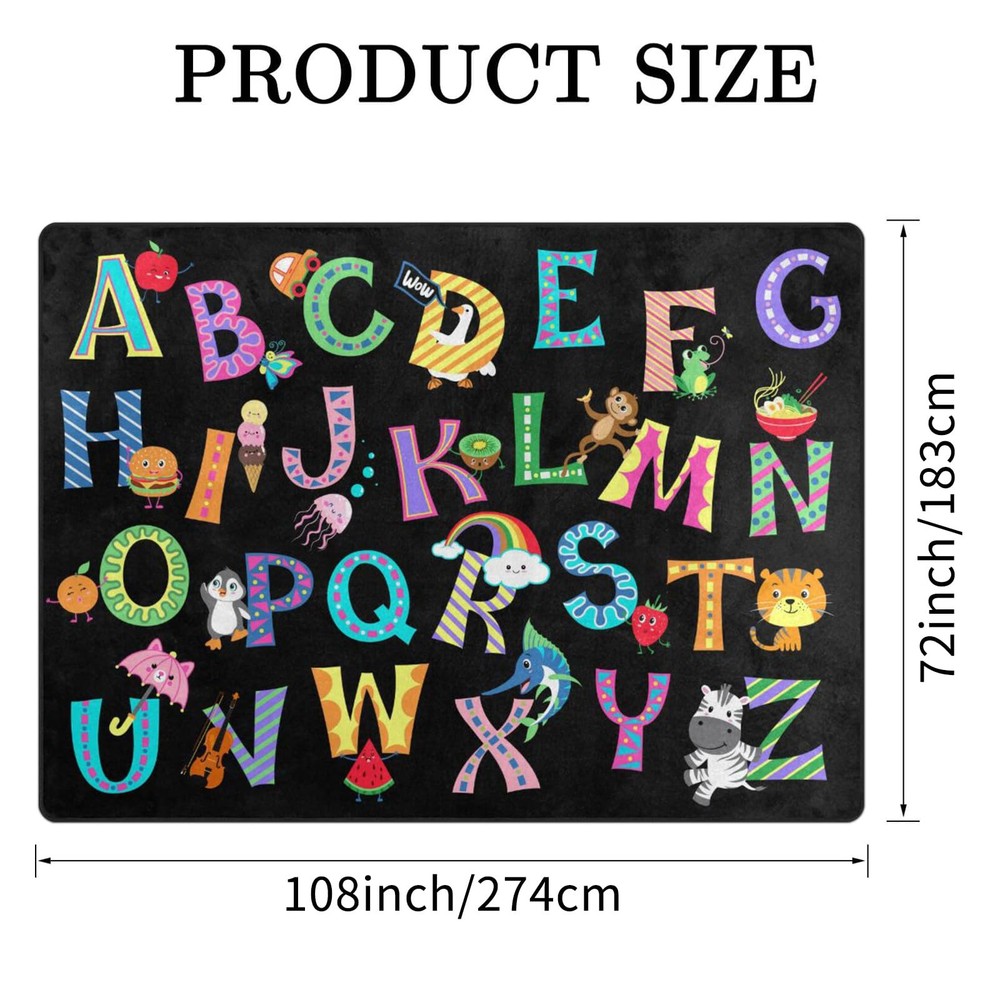 ●Size: 6'x9'/ 72x108 inches ●Material: Made of 100% microfiber polyester and anti-slip backing. ●Soft sponge inter-layer and durable high density elastic cotton. Fun and educational felt fabric. Perfect with toy cars. Ideal for rooms, nurseries, daycare & school ●This area rugs are soft and dense, with exquisite patterns, which maximize comfort and provide good softness to your feet. ●From the front door to the bedroom, area rugs can bring color, warmth and clarity to any part of your home. Whether you are looking for quality floor mat for the next few years, or just making impromptu design changes in your home decor, our rugs are the ideal choice. ●The scope of using: nurseries, daycare, school, living room, restaurant, bedroom, study, corridor and all spaces in your home. ●Hand washable and Machine washable, wear resistant, easy to clean. Warm Tips: ---For the convenience of logistics and transportation, the floor mats will be folded and shipped, so it may crease. After 3-5 hours, the creases will disappear. Please rest assured to buy! ---Due to different computer/smart phone monitors/screens, actual colors may vary slightly from product images. ---Please allow slight deviation due to manual measurement. 💕💕💕【ABOUT THICKNESS & CREASES】Because this floor mat is delivered in vacuum packaging, you may feel that the floor mat is very thin when you receive it, but please don't worry, after opening it and letting it sit for 3-7days, it will spring back, You can steam iron the creases due to the folds for shipping. 🚗【ABC ALPHABET DESIGN】- Our playmat is soft, non-slip and thick. Printed graphics with the theme of alphabet will make your child have a better experience indoors. 👪🏻【MULTI-PURPOSE MAT】 - ABC alphabet area rug can be used in different scenarios. Multiple uses of mats, not only can use as children’s playmate,but also can use as the normal rug for your home, Yoga mat, area rug etc. 👶🏻【NON SLIP PLAYMAT RUG】-This play mat made of premium polyester with dot bottom, soft non-slip and durable. The material of the whole floor mat is soft and can also be machine washed directly. Very soft and durable. 💕【THICKER& LARGE PLAYMAT】- This mat size is 6 x 9 feet/108*72inches. Thickness is around 0.4in.This big size play mat allows kids or babies have enough ZONE to play around. ✨【AFTER SERVICE】- Customer satisfaction is our constant driving force, providing 100% satisfaction experience for customers is our primary task. If you have any issue please leave us a message, we will make every effort to resolve it.