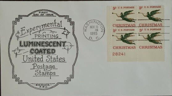 ABC Boerger 1276A Experimental Luminescent Match Plate Blocks Set 4 Retail $220 A single cover with a single stamp retail for $55.00. 4 Plate Blocks should catalogue for more. First Day Cover Collecting Postage Stamp and Covers is a fun way to learn History and about Great People. My Stamp Collecting has enabled me to answer correctly a lot of trivia questions! If you buy multiple items please use the shipping cart when possible. BUY with confidence Feedback Selling on eBay for over 25 Years Many repeat buyers. 99.9% Positive Feedback (I am not perfect) Note: In some cases I use stock photos, therefore the item may vary very slightly from the scanned image . I leave positive feedback for all my buyers immediately (or shortly after) payment is received. I never wait for a buyer to leave me feedback first. I have had almost 100,000 transactions on eBay. Member American First Day Cover Society (Life Member) American Philatelic Society Ebony Society of Philatelic Events and Reflections (ESPER) International Buyers - Please Note: Import duties, taxes, and charges are not included in the item price or shipping cost. These charges are the buyer's responsibility. Please check with your country's customs office to determine what these additional costs will be prior to bidding or buying. Powered by SixBit's eCommerce Solution