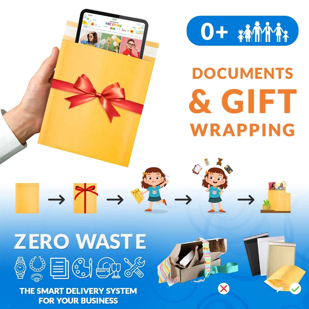Pack of 25 Kraft Paper Mailers, 6.5 x 9 Inches. Bubble shipping envelopes combine the strength of kraft paper with the protective soft bubble lining, all wrapped up in a sleek and minimalist gold kraft design. Superior Material, Ultimate Protection. Bubble envelopes are crafted from sturdy kraft paper and feature a durable soft polyethylene bubble lining, guaranteeing top-notch protection for shipments. The tear-resistant design of CD mailers ensures items stay intact during transit. Effortless Sealing. Bubble mailer envelopes feature reliable self-adhesive tape for quick and simple closure. Bubble padded envelope makes sealing a breeze, so you can ship items securely without the need for extra tape or adhesive. Stylish and Professional Shipping Envelopes Padded. Minimalist gold kraft color of bubble mailers kraft not only exudes professionalism but also provides a canvas for your creative touch – easily accept inks, stickers, and labels to customize packaging. Versatile Shipping Solution. Mail padded envelopes will be ultimate choice whether you're sending small items, DVDs, jewelry, or more. Mailing envelope padded offers reliable protection, extra room, and a touch of elegance, making them perfect for various shipping needs.