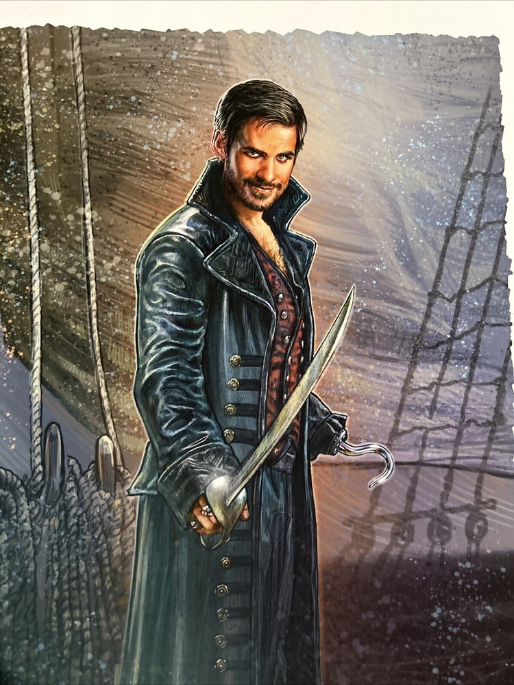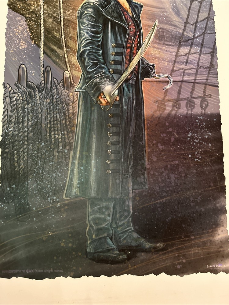 This ABC Once Upon a Time Licensed Art Print features Captain Hook, portrayed by Colin O'Donoghue. The print is a licensed reprint and is not signed. The print is unframed and would make a great addition to any collection. It has previously been displayed and has some minor wear. Measures 19”x13” Any questions please ask