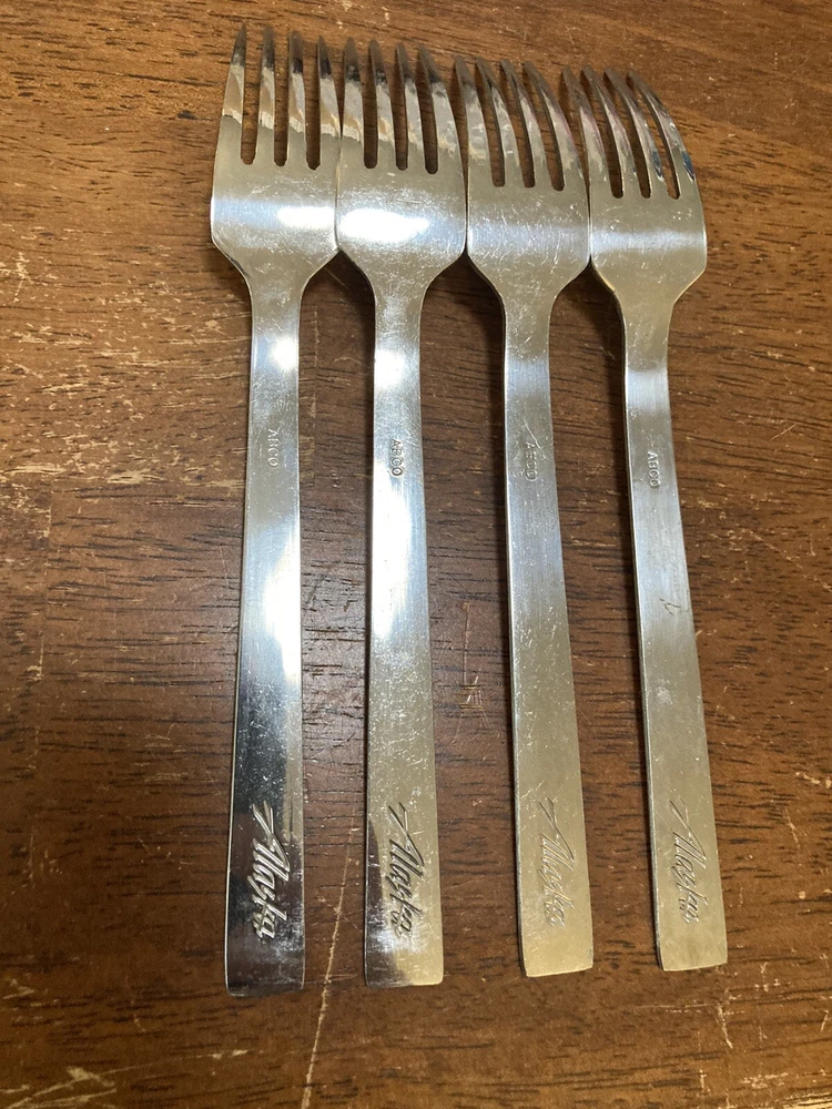 FREE SHIPPING ABCO Alaska Airlines, diamond, outline, flat tip, triangles 4 forks are 6 3/4". All are in used condition. Please email with any questions!
