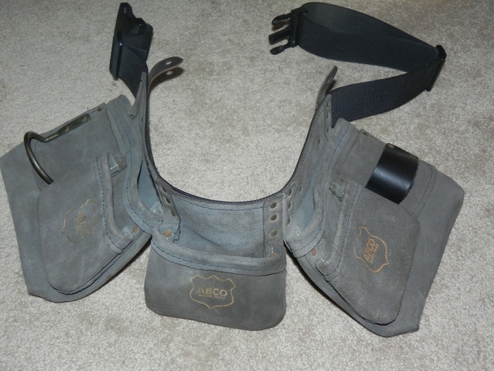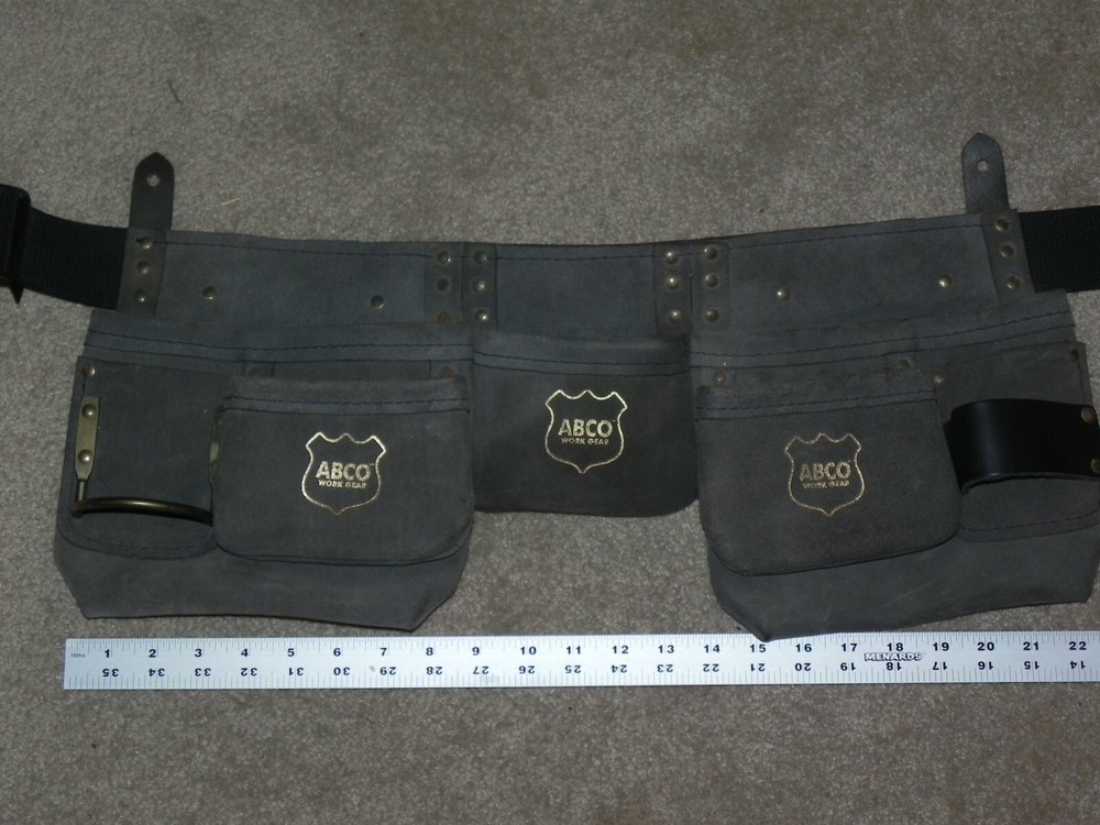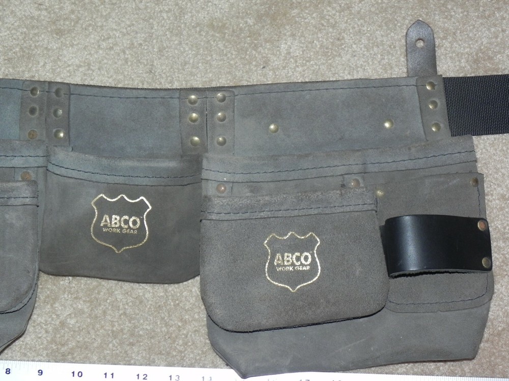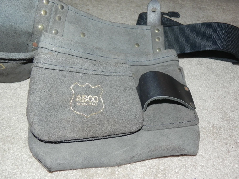 VERY NICE ABCO Work Gear LEATHER TOOL BELT Pocket area measures approximately 20" across 7 Pockets plus hammer holder (right side) and a leather loop on the left side Heavy leather construction with 'web' belt The belt is in NEW CONDITION - NEVER USED ! - Please check out the photos FAST & FREE SHIPPING! Even though I list Economy Shipping, most items ship USPS Priority or FedEx; it all depends on the ship to location and cost. 100% Positive Feedback - Buy with Confidence! My goal is continued 100% positive feedback. If you have a problem of any kind, please contact me before leaving feedback. Please email me with any questions - thanks for looking!