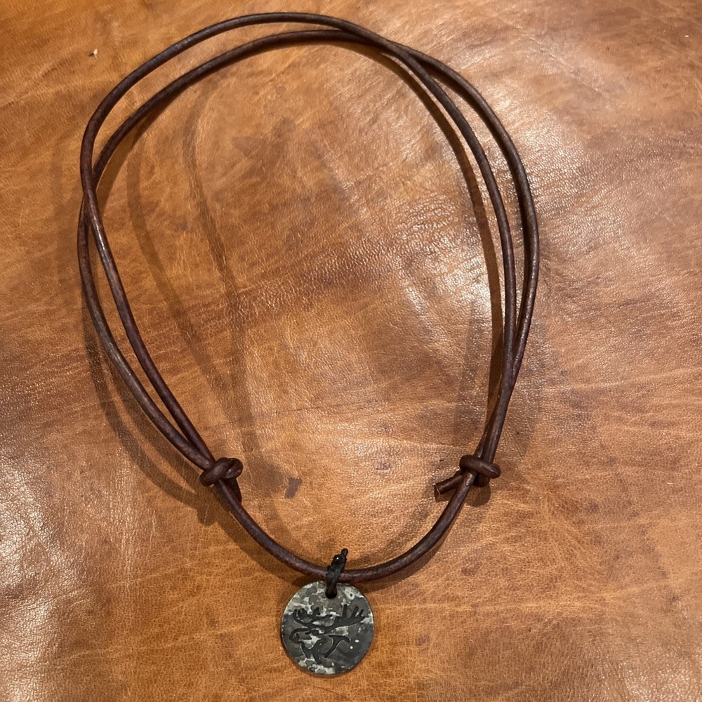 Abercrombie and Fitch Vintage Leather Necklace BOHO RARE LUCKY Metal Moose. Shipped with USPS First Class. Necklace is adjustable.
