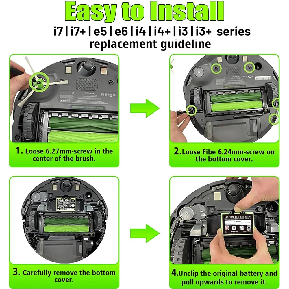 eBay dsaker_powerbest - Online Since 2019 GREAT SELECTION,MULTIPACK DISCOUNTS. - Online Since 2019 ABL-D1 4.5Ah i7 Lithium Battery For Genuine iRobot Roomba e5 e6 i3 i4 i6 i7+ New Features ✅【Great Replacement for Roomba e & i Series】 100% Brand New | 14.4V | 4.5Ah | lithium-ion battery. The 14.4V replacement battery for Roomba has high capacity can extend service life 30% than most ordinary battery in the market. Repeated tested to match over 8 Roomba e & i Series Vacuum Cleaners. ✅【Higher Capacity】 The replacement I7 4.5 Ah higher capacity battery for roomba i7 Vacuum Cleaners. Made with Top-A grade battery cell and repeated tested to match original for roomba i7 Vacuum Cleaners, the replacement battery has no memory effect, is more powerful, longer-lasting. ✅【100% COMPATIBILITY WITH Roomba】 The replacement I7 compatible with Roomba i7/i7+,7150,7550,i7158,i7550,i755020,i7558,i4,4150,i4+,i3,3150,i3+,3550,e5,5150,e5150,e515020,e5152,e5154,e5158,e515840,e6,e6198,e619820. Replacement Battery NO: 4624864, ABL-D1, ABL-IT81ba. (Not Compatible with i8, i8+). The performance is 40% better than the original and the same size as the original and fits for Roomba OEM original charger. Specifications Brand: DSANKE Battery Voltage: 14.4 V Battery Type: Lithium-ion (Li-Ion) Capacity: 4500mAh / 4.5Ah Color: Greeen Shell: Premium ABS+PC Shell Condition: Replacement Battery, Brand New Compatible Brand: For Irobot Roomba Warranty: 5 Years Warranty + 60 Days Money Back Shipping: Free shipping,24H Dispatch,1-6 days delivery Certificate: CE PSE ROHS FCC Replacement batetry for iRobot Roomba 14.4V Lithium Ion Vacuum Cleaner: For iRobot Roomba i7: i7/i7+/7150/7550/i7158/i7550/i755020/i7558/7159/i715920 For iRobot Roomba i4:i4/i4+/4150 For iRobot Roomba i3:i3/i3+/3150/3550 For iRobot Roomba J7:J7/J7+/7550/J7550/J755020/7150/J7150/j715020 For iRobot Roomba E5:e5/5150/e5150/e515020/e5152/e5154/e5158/e515840 For iRobot Roomba E6:e6/e6198/e619820/4552 Compatible with iRobot Roomba Battery Part Number(NOT fit i8, i8+): For iRobot Roomba Battery:4624864 For iRobot Roomba Battery:ABL-D1 Package Included 1x 14.4V 4.5Ah Lithium-ion Battery For Robot Roomba 1x User Manual Maintenance of Battery: 1.If you don't plan on using the Power Tool Battery for a month or more, store it in a clean, dry, cool place away from heat and metal objects, usually Ni-CD, Ni-MH and Li-ion batteries will self-discharge during storage. Remember to recharge the batteries before use. 2.Do not leave the battery dormant for long periods of time. We recommend using the battery at least once every two to three weeks. 3.Always remove battery pack form your tool when you are assembling parts, making adjustments, cleaning, or when not being used for an extended time. Delivery Warranty Returns About us ✔ DSANKE adheres to the terms and conditions of the United States Postal Service. ✔ All products will be checked carefully and packed in good condition before shipping. ✔ We offer FREE Standard shipping on all orders in the United States! Method: USPS First-Class Mail / UPS Ground Weight: Less than 21kg Handling time is usually around 1-2 business days. (May be longer) Tracking is available for domestic shipments Most orders Shipping usually takes 2-6 business days (except Saturday and Sunday). Some items may have an extended handling time due to pre-orders, back orders, etc. Please check the shipping/delivery date on the listing before purchase. ** The recipient of the order will be responsible for any import duties or taxes charged by the recipient's country and any carrier-related fees. Subscribe to our mailing list Subscribe Our 60-Days Money Back Guarantee Warranty* (Exchange or Refund) provides coverage for manufacturing defects and shipping damage only. Photo or Video confirmation is required.(a bird's eye photo, and a close-up of the problem) What is not covered by Warranty? --Normal wear and tear --Misuse, lack of care, mishandling, accidental abuse --Abnormal use of product --Damage caused by improper or unauthorized repair or maintenance --Product that has been modified or altered Most defective orders are replaced free of charge or issue refund only after evidence confirmation is provided. (This policy will not cover items that had been purchased from a different seller. Please contact the seller directly.) Please leave your ebayID or order transaction number in the email, otherwise we cannot find your order information. 5 YEARS LIMITED WARRANTY* LIMITED WARRANTY STATEMENT FOR DSANKE If your order becomes defective due to faulty materials or workmanship within a period of 5 years from the date of purchase, we guarantee to do one of the following, though you may be required to pay shipping costs for return of the product to us and for shipment of the repaired/replaced product to you: --Replace or repair all defective parts, or, --Repair a defective unit, or, --Replace the unit with a new or reconditioned unit. This Limited Warranty is subject to the following conditions: The item has not been misused, abused, neglected, altered, modified or repaired by anyone other. Defect or damage to the battery has not resulted from use of accessories or tools that are inappropriate for normal operation of the battery , or that are not designed for use with your tool. The item has been subjected to fair wear and tear. The item has not been used for trade or professional purposes. The item has not been used for rental purposes. The item has not sustained damage through foreign objects, substances or accidents. Your limited warranty does not cover: Natural wear and tear caused by use in accordance with operating instructions. Unauthorized/improper maintenance/handling or overload is excluded from this warranty as are accessories such as adapter, etc. This limited warranty does not replace but is in addition to your statutory rights. This warranty does not apply to accessories supplied with the tool. This limited warranty applies only to 