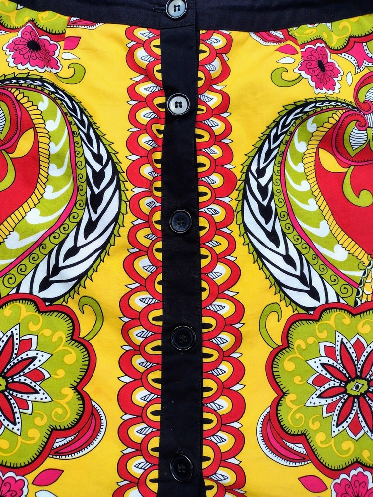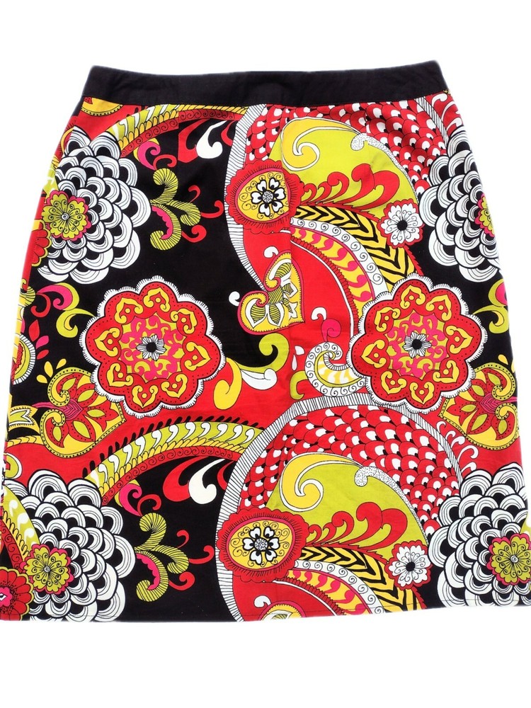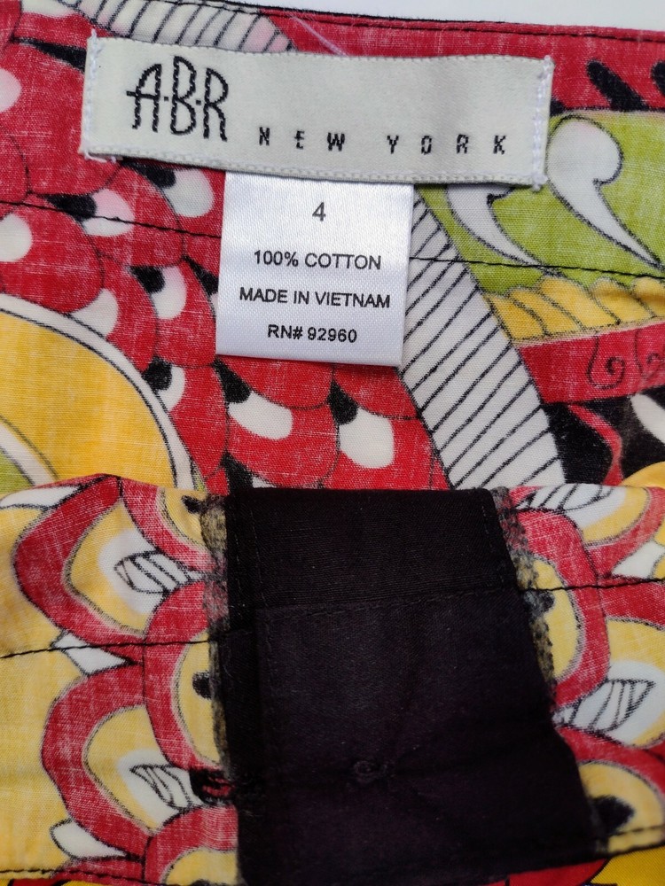 ABR New York Womens Pencil Skirt Multicolor Knee Length Geometric Button Up Size 4. Item is pre-owned and in very good condition with no tears, holes, stains or unraveling threads. Smoke free environment. This is a very pretty, colorful skirt I'm black, red, green, white & yellow. There is a black band around the top & the same black going down the front where it buttons down. This is an all Cotton skirt & is dry clean only. These kinds of skirts are great because you can wear it with so many colors & styles. This is a women's size 4. Waist across measures 15" x 22.5" waist to hem.
