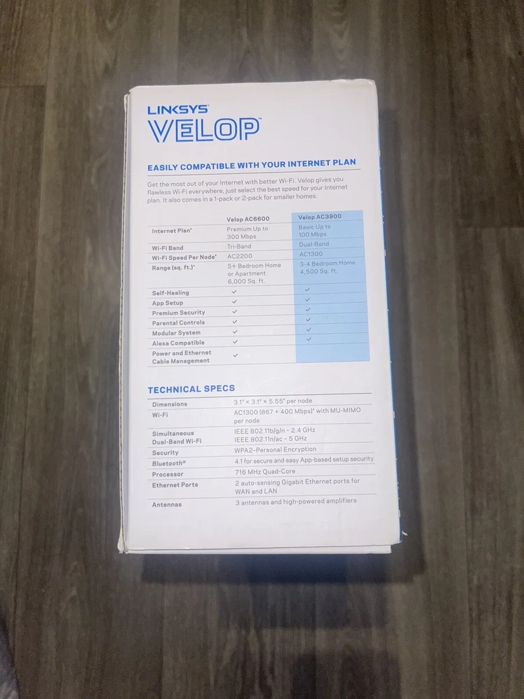 This Linksys Velop AC3900 Wireless System comes with three pieces to provide a seamless wireless internet experience. With a maximum LAN data rate of 100 Mbps and a maximum wireless data rate of 300 Mbps, this system offers fast internet speeds. The system includes wireless-Wi-Fi 802.11a, 802.11b, 802.11ad, wired-Ethernet (RJ-45), wireless-Wi-Fi 802.11ac, and wireless-Wi-Fi 802.11g connectivity options. It also has three LAN ports and is ideal for home networking and connectivity.